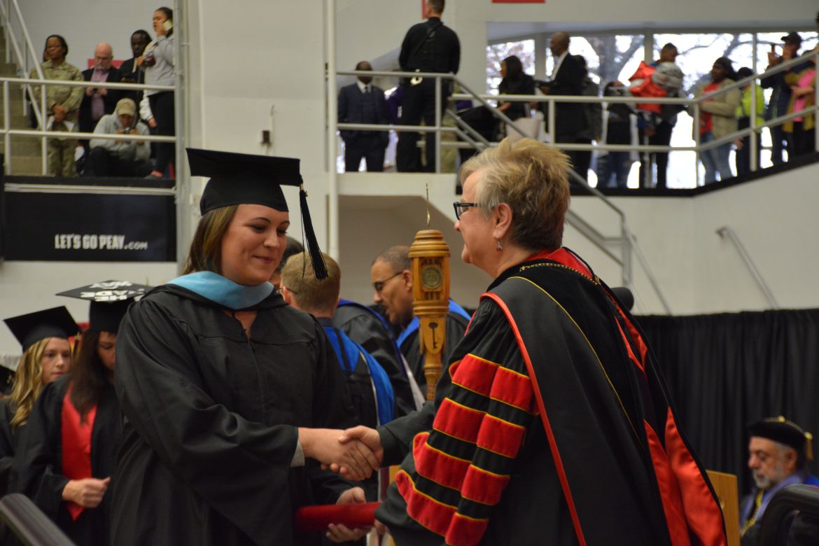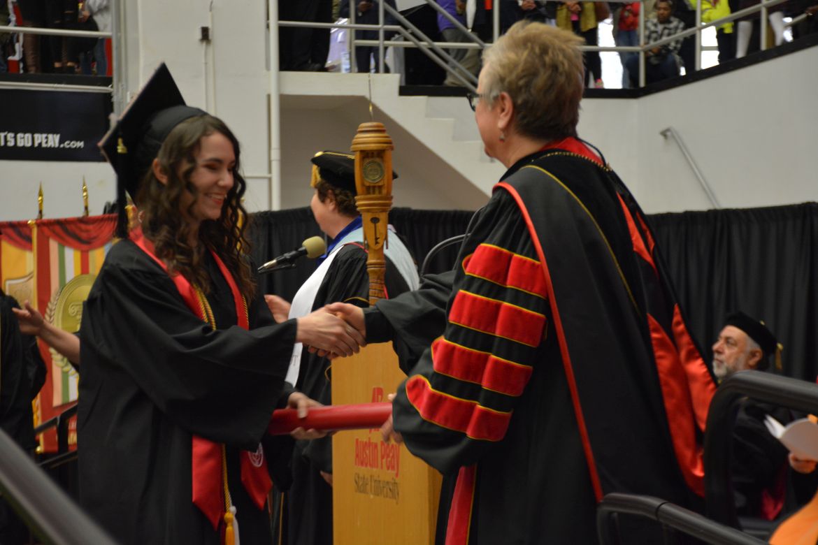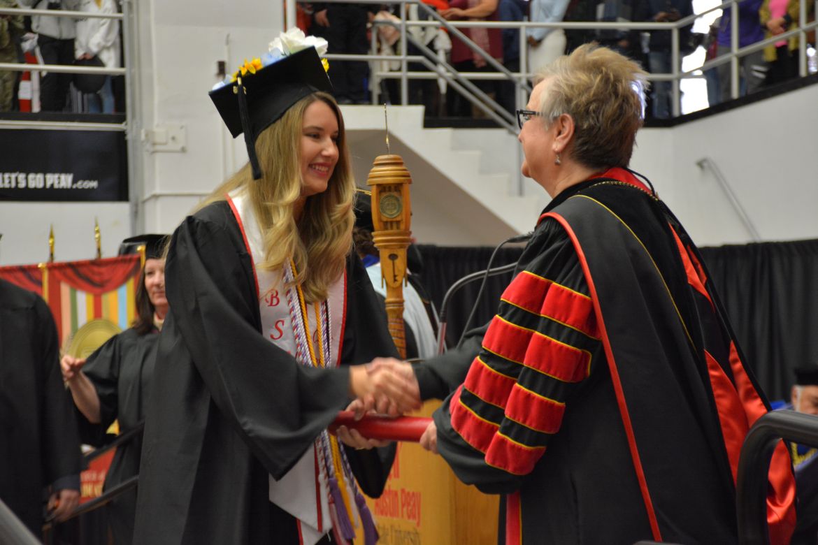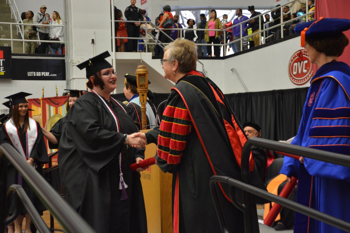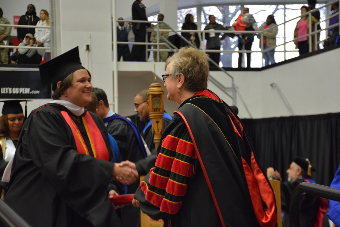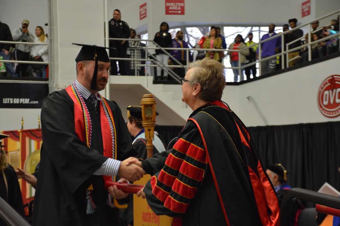 CLARKSVILLE, Tenn. (CLARKSVILLENOW) – Dr. Doris Davenport, Austin Peay State University professor of nursing and recipient of the 2018 National Alumni Association Distinguished Professor Award, delivered the keynote address during the Universityās winter commencement on Friday, Dec. 14.