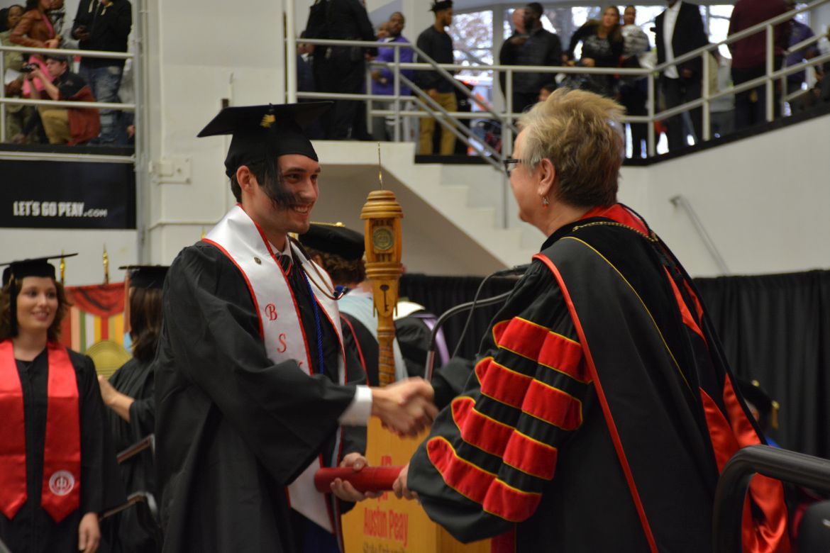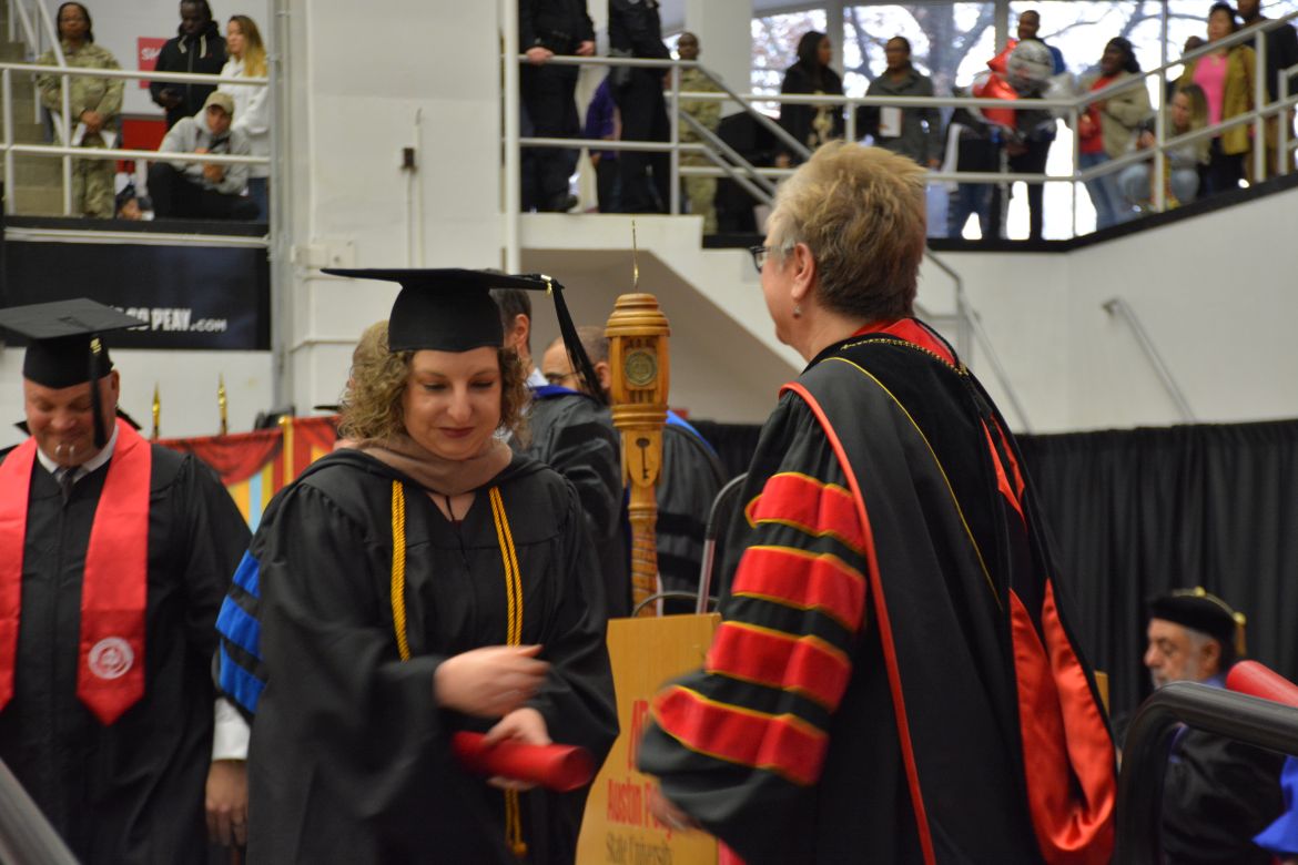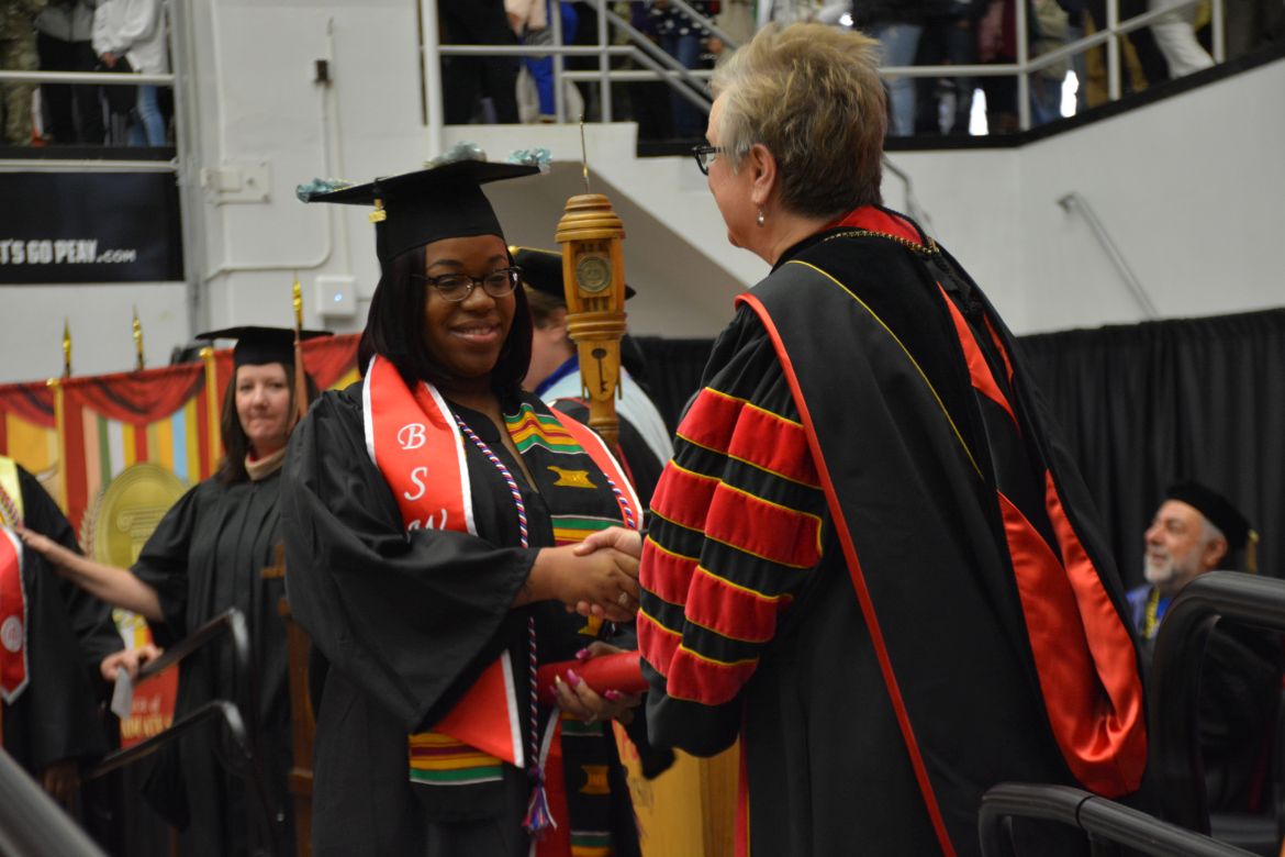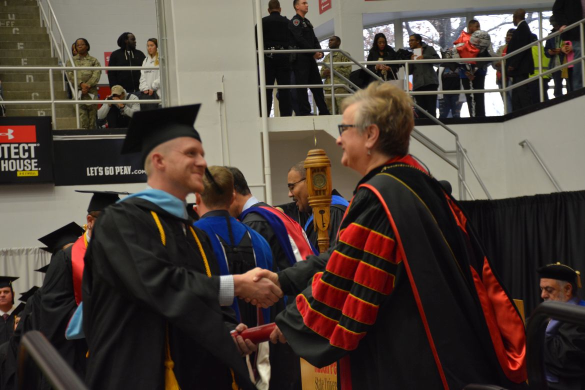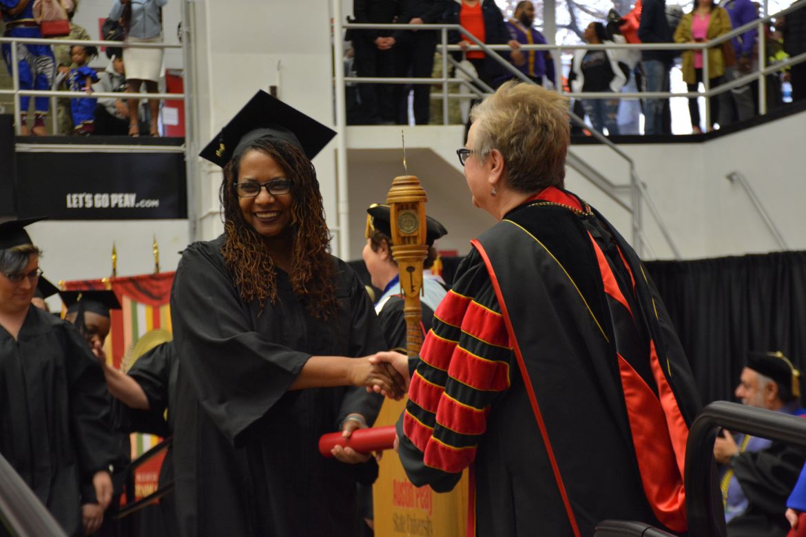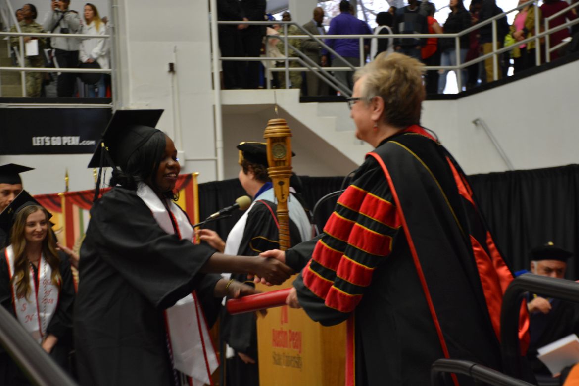 CLARKSVILLE, Tenn. (CLARKSVILLENOW) – Dr. Doris Davenport, Austin Peay State University professor of nursing and recipient of the 2018 National Alumni Association Distinguished Professor Award, delivered the keynote address during the Universityās winter commencement on Friday, Dec. 14.