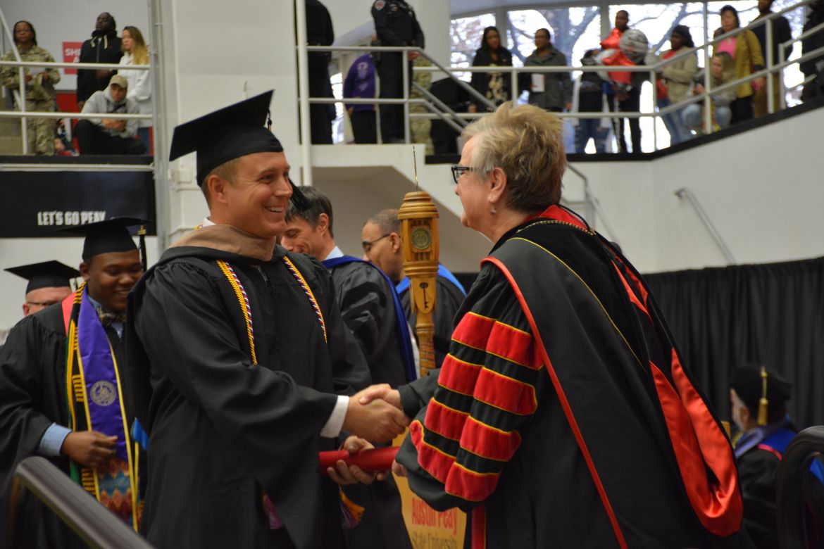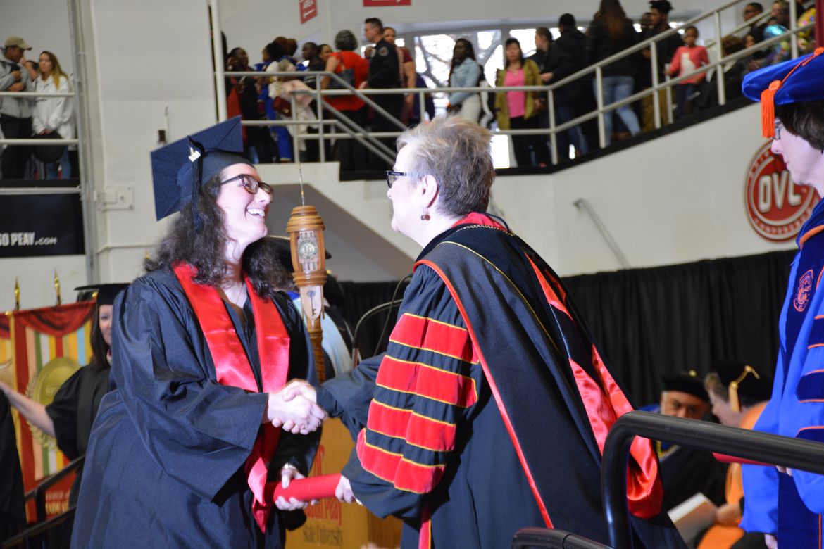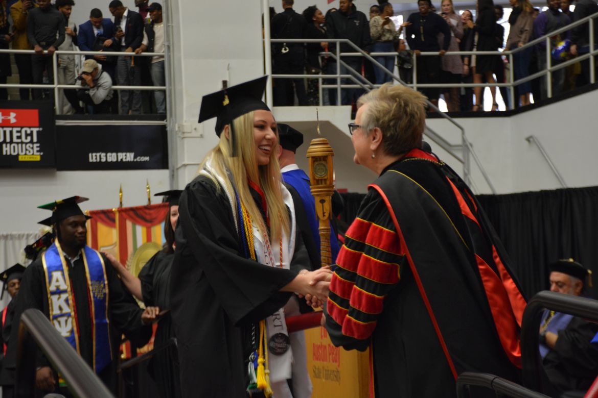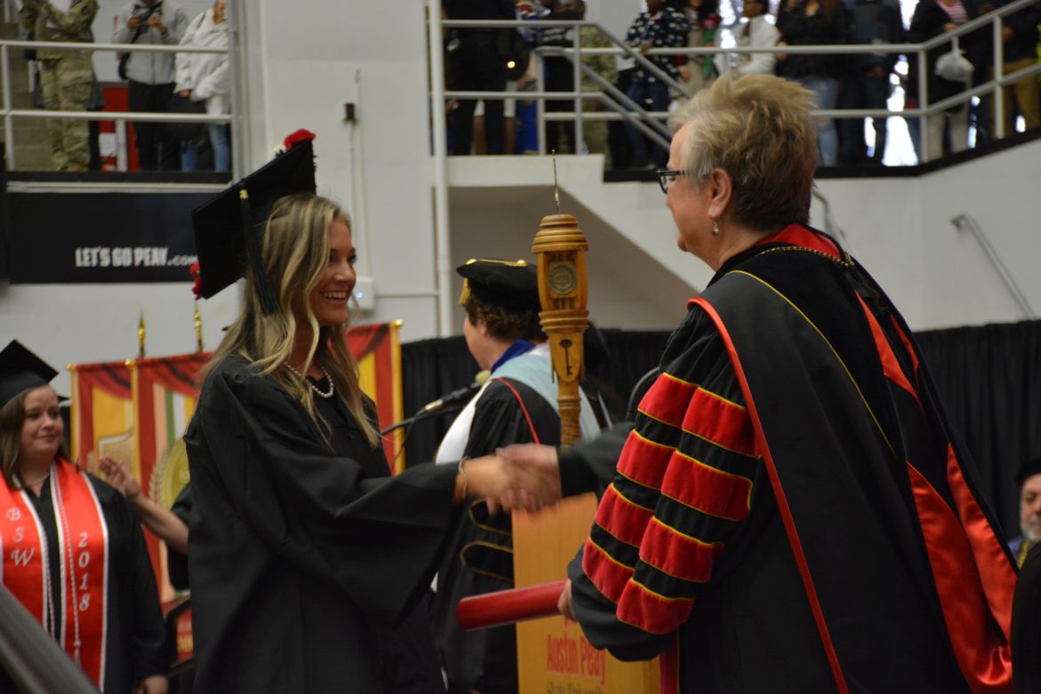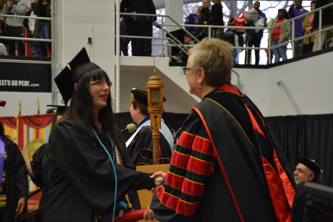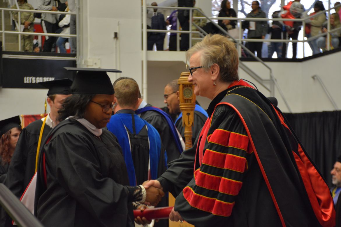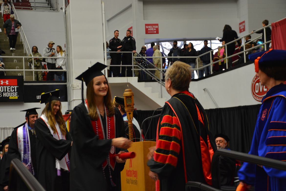 CLARKSVILLE, Tenn. (CLARKSVILLENOW) – Dr. Doris Davenport, Austin Peay State University professor of nursing and recipient of the 2018 National Alumni Association Distinguished Professor Award, delivered the keynote address during the Universityās winter commencement on Friday, Dec. 14.