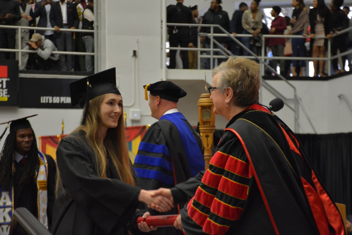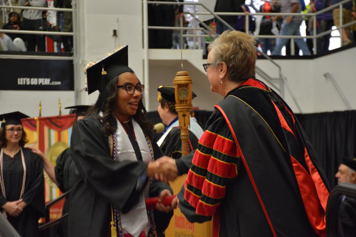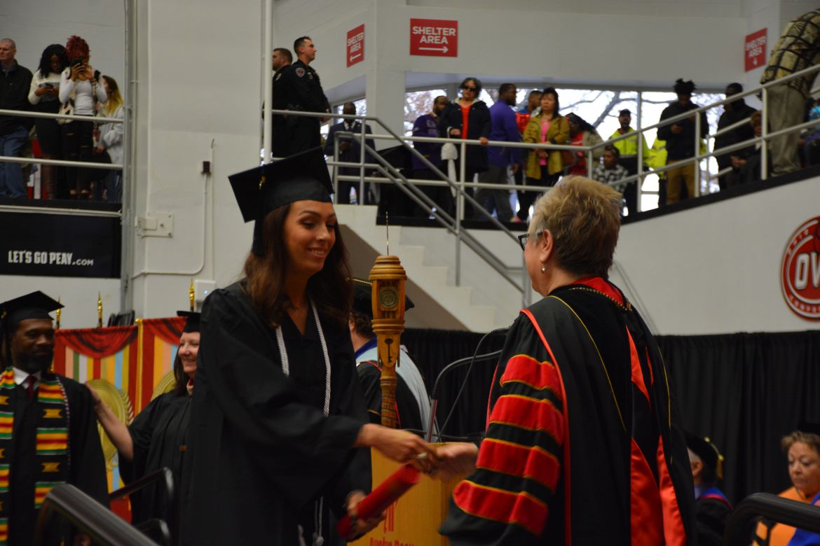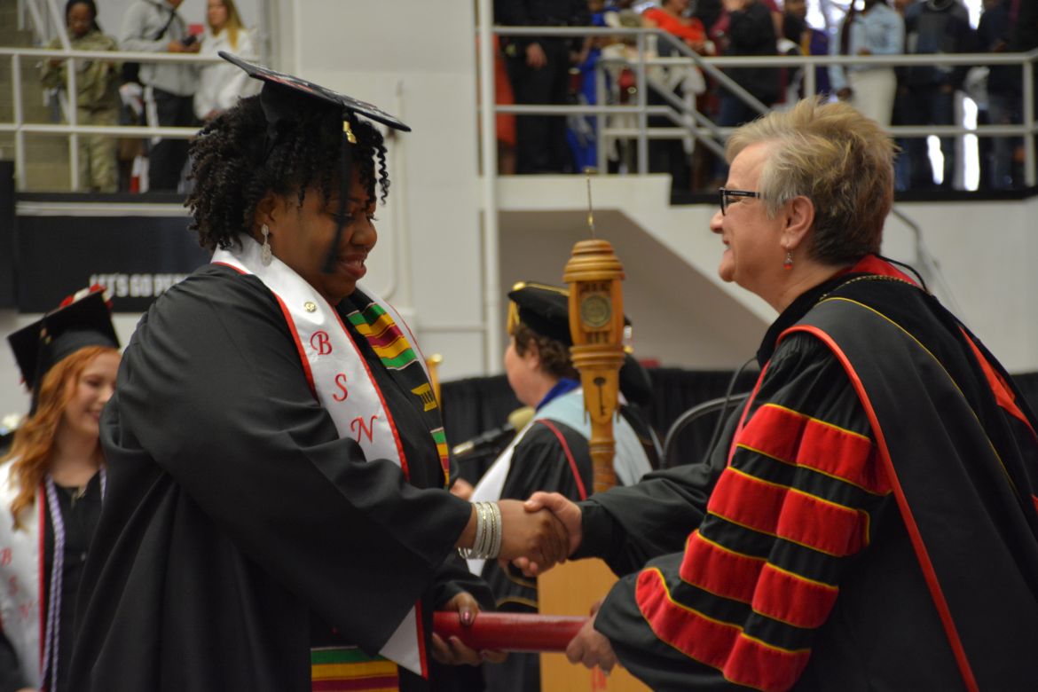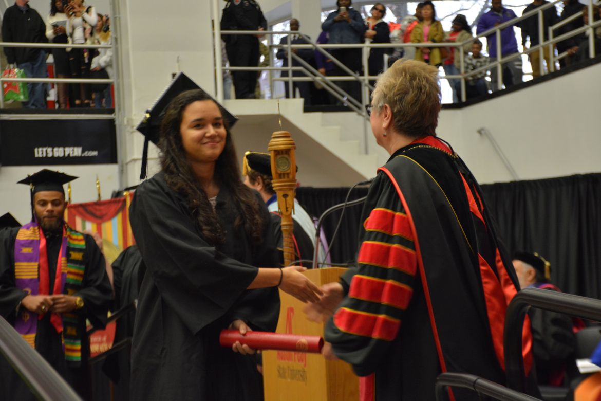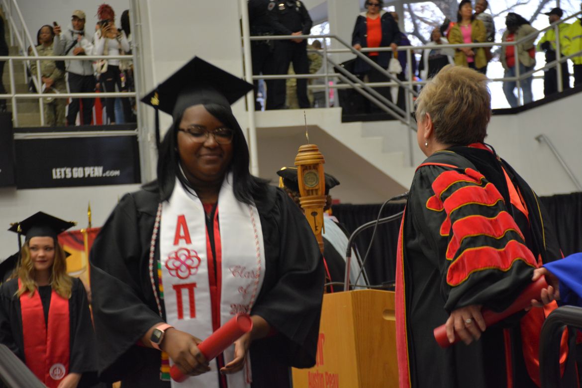 CLARKSVILLE, Tenn. (CLARKSVILLENOW) – Dr. Doris Davenport, Austin Peay State University professor of nursing and recipient of the 2018 National Alumni Association Distinguished Professor Award, delivered the keynote address during the Universityās winter commencement on Friday, Dec. 14.