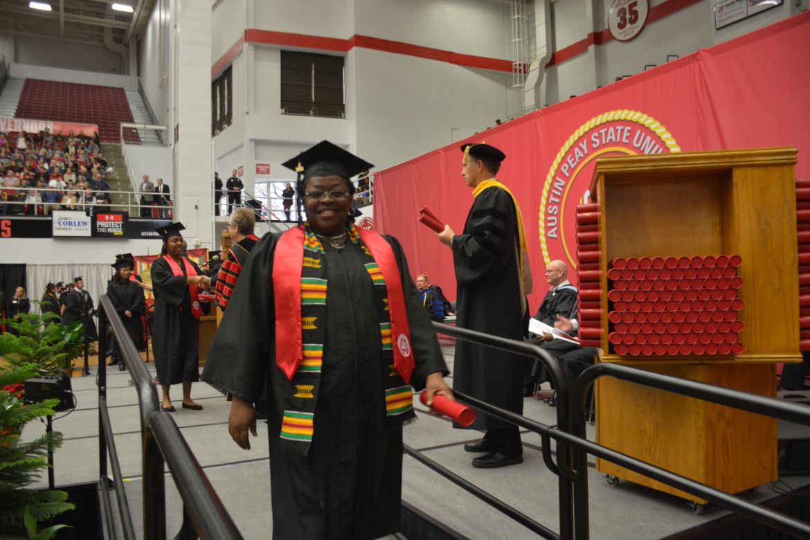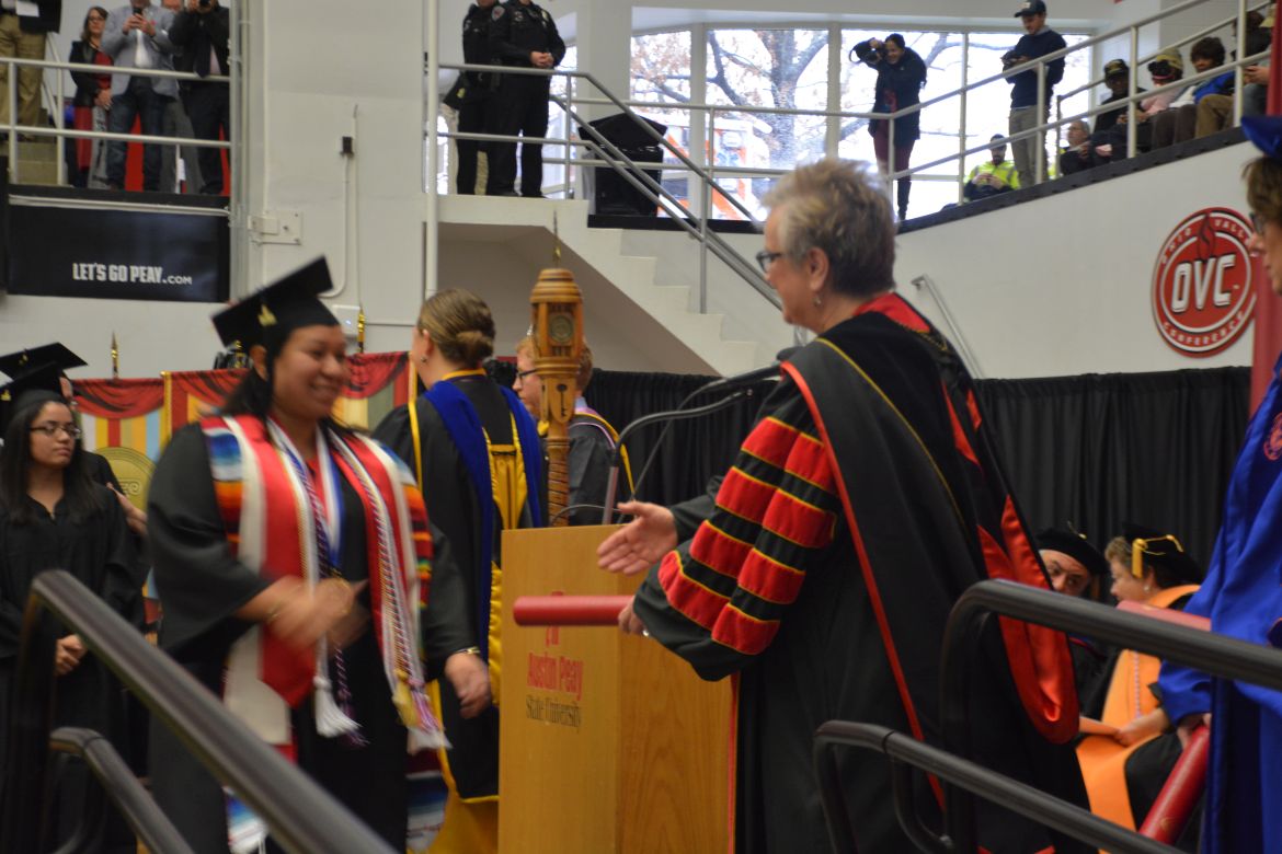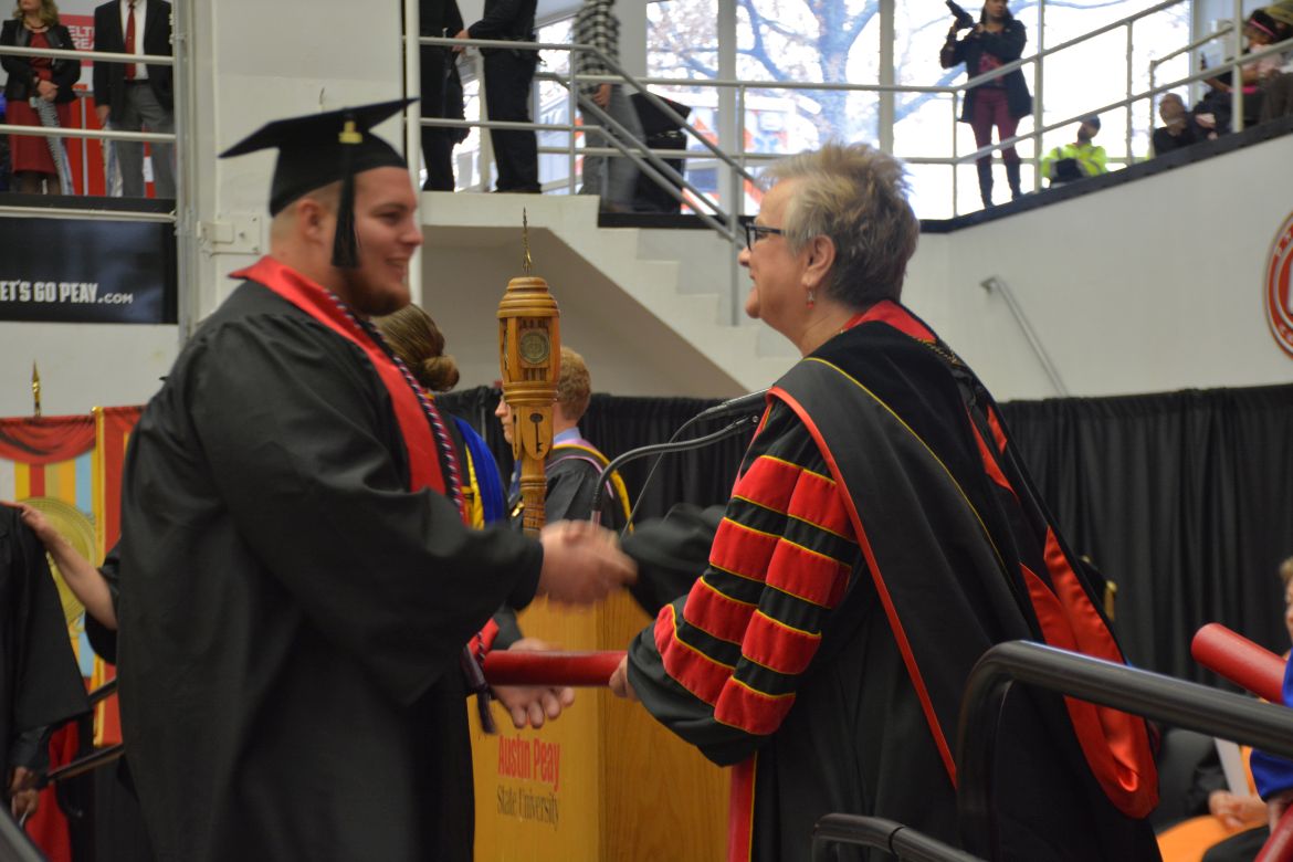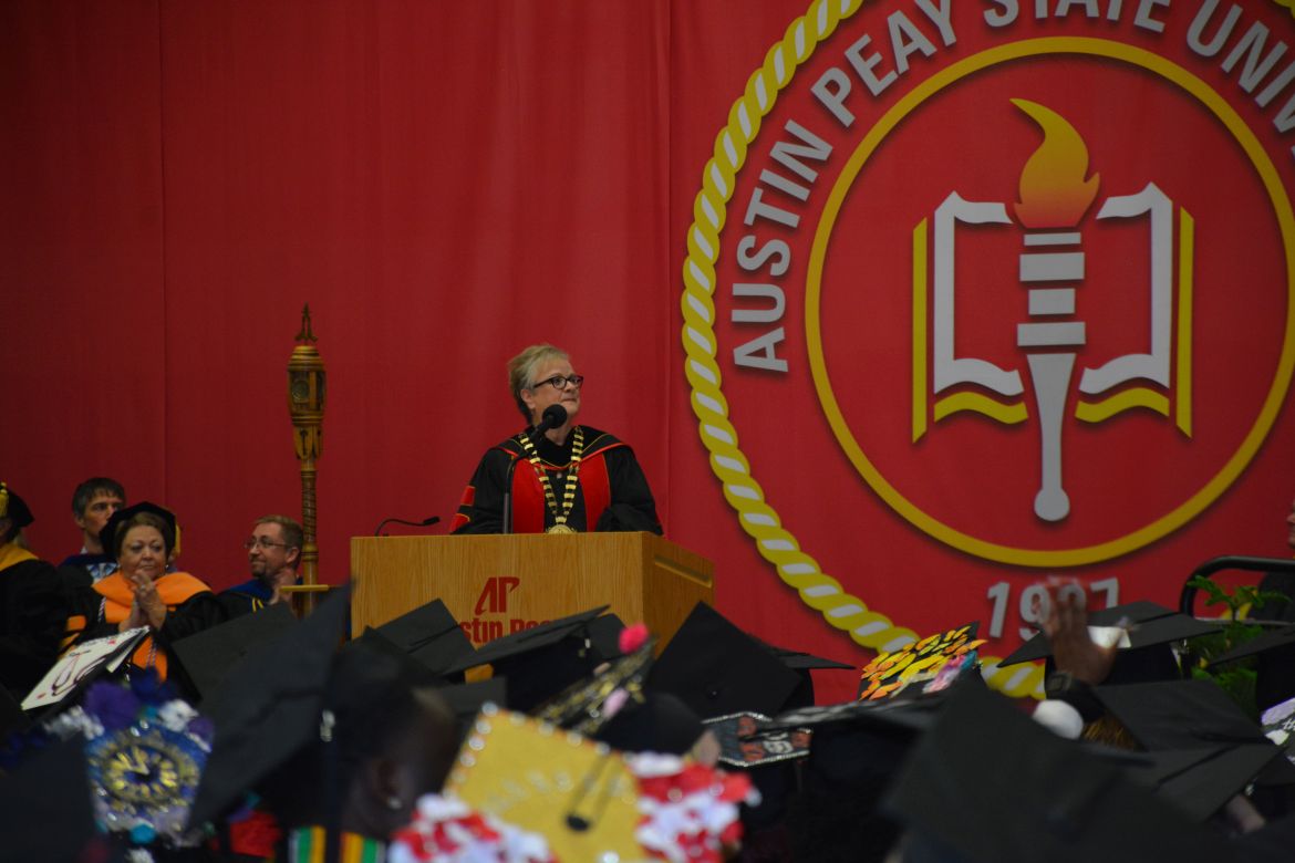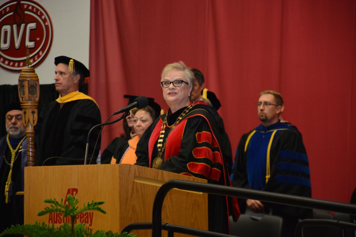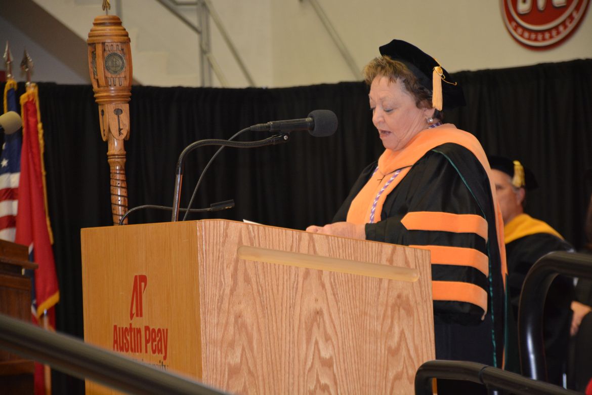 CLARKSVILLE, Tenn. (CLARKSVILLENOW) – Dr. Doris Davenport, Austin Peay State University professor of nursing and recipient of the 2018 National Alumni Association Distinguished Professor Award, delivered the keynote address during the University’s winter commencement on Friday, Dec. 14.