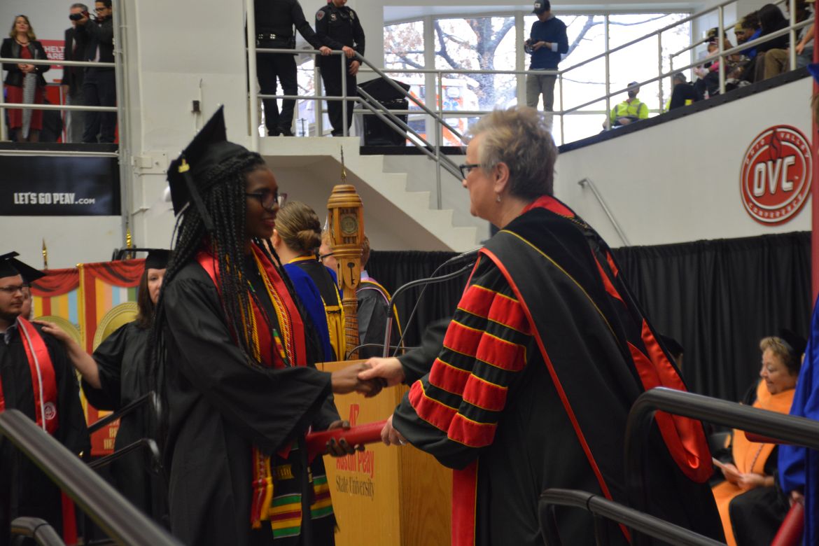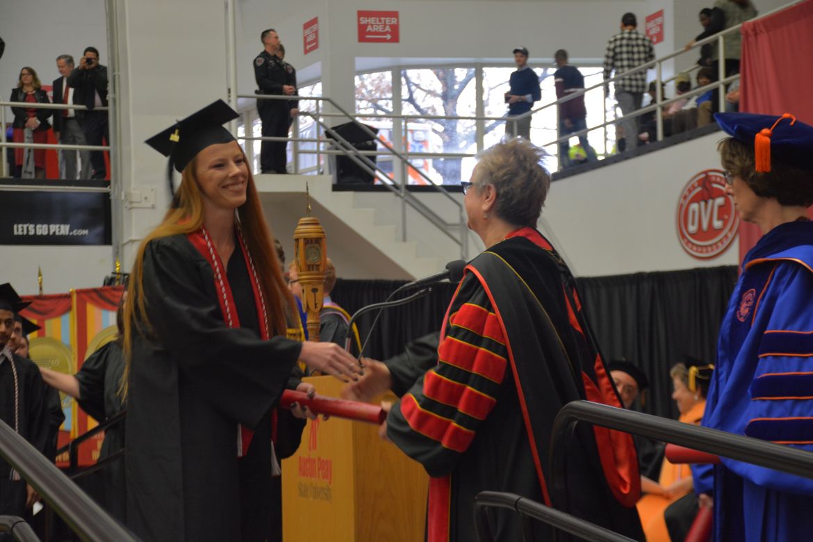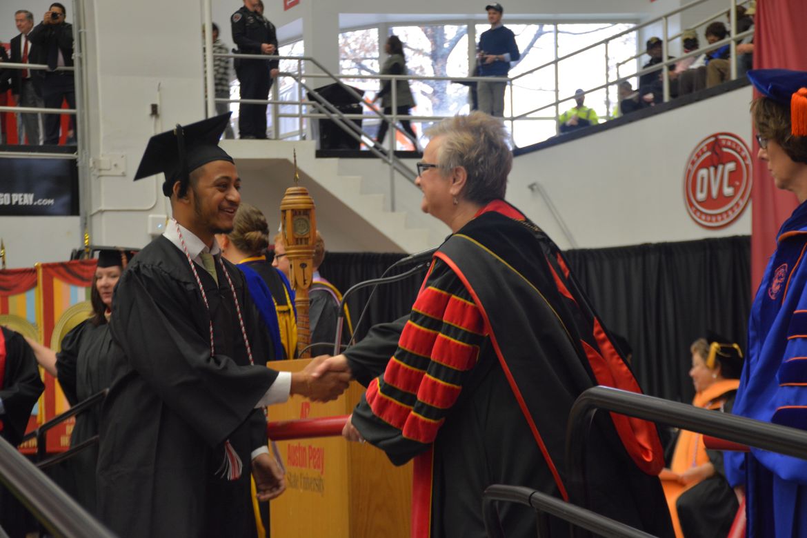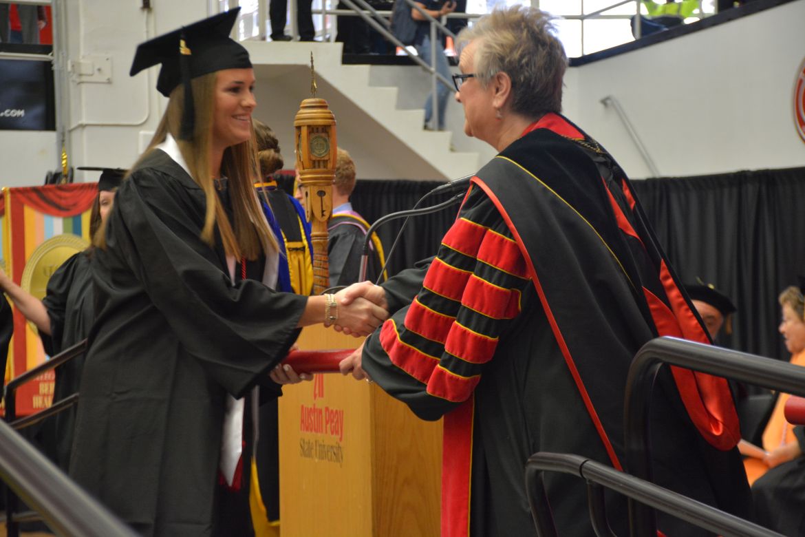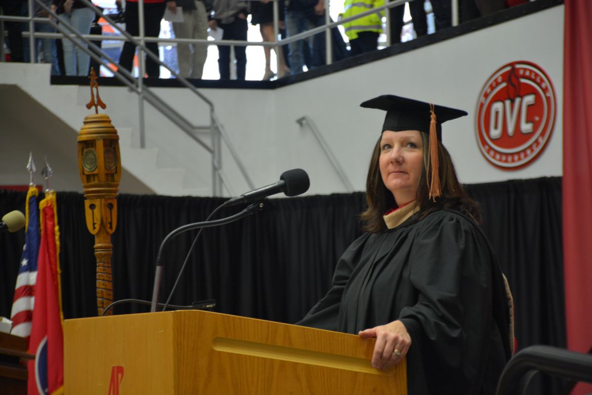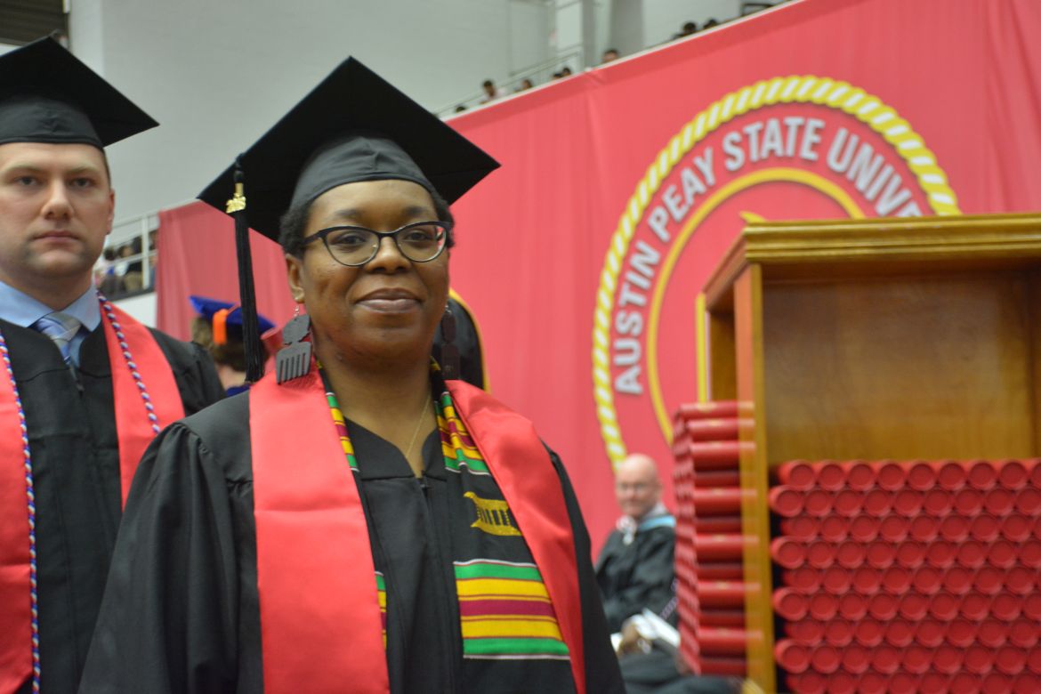 CLARKSVILLE, Tenn. (CLARKSVILLENOW) – Dr. Doris Davenport, Austin Peay State University professor of nursing and recipient of the 2018 National Alumni Association Distinguished Professor Award, delivered the keynote address during the University’s winter commencement on Friday, Dec. 14.