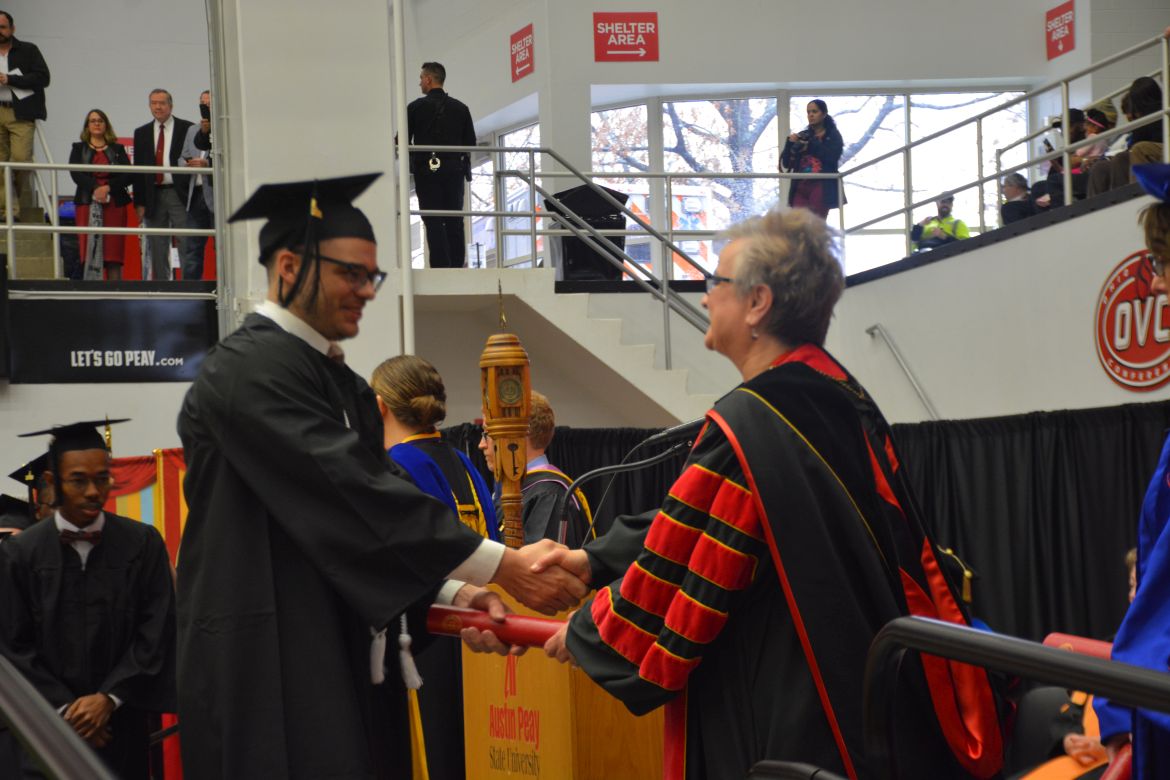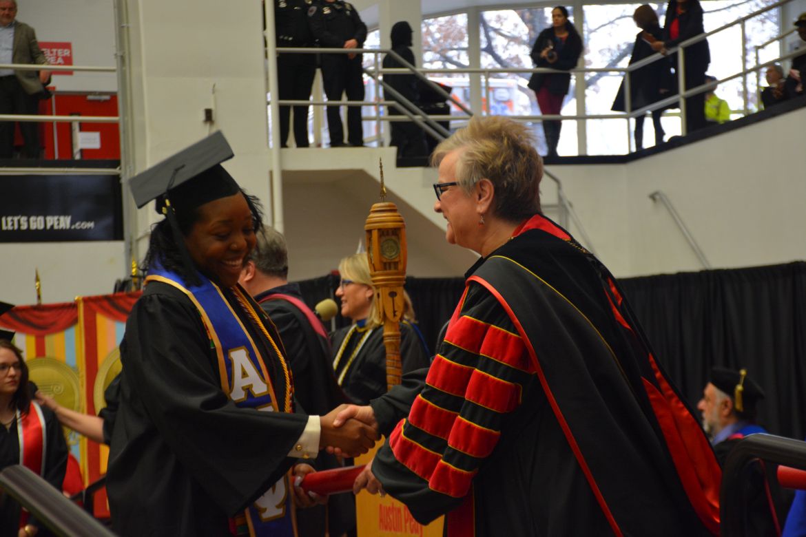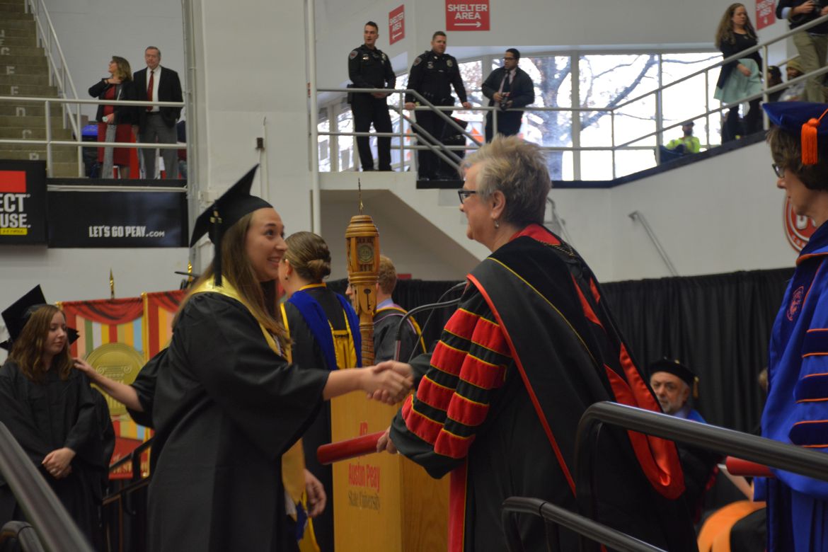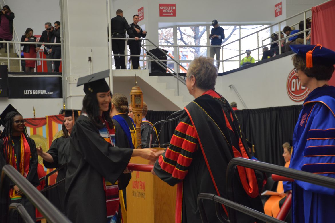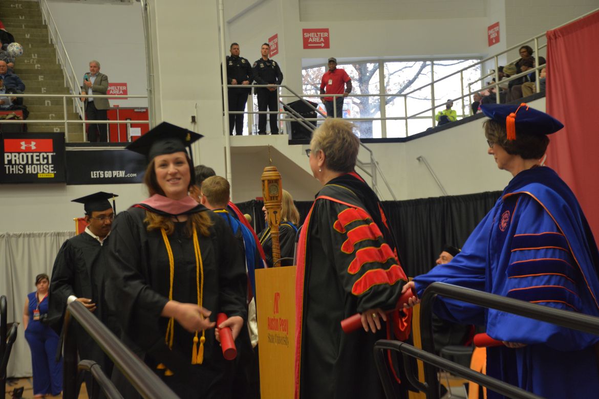 CLARKSVILLE, Tenn. (CLARKSVILLENOW) – Dr. Doris Davenport, Austin Peay State University professor of nursing and recipient of the 2018 National Alumni Association Distinguished Professor Award, delivered the keynote address during the University’s winter commencement on Friday, Dec. 14.