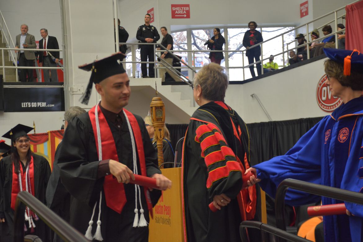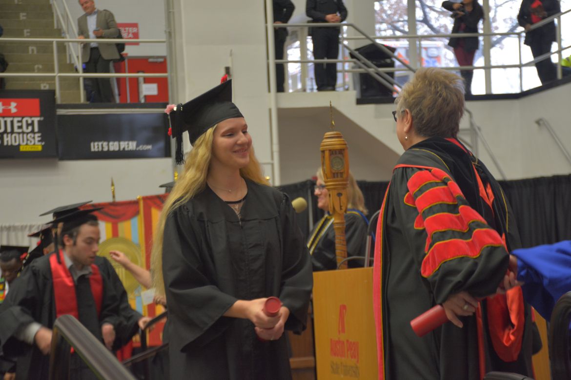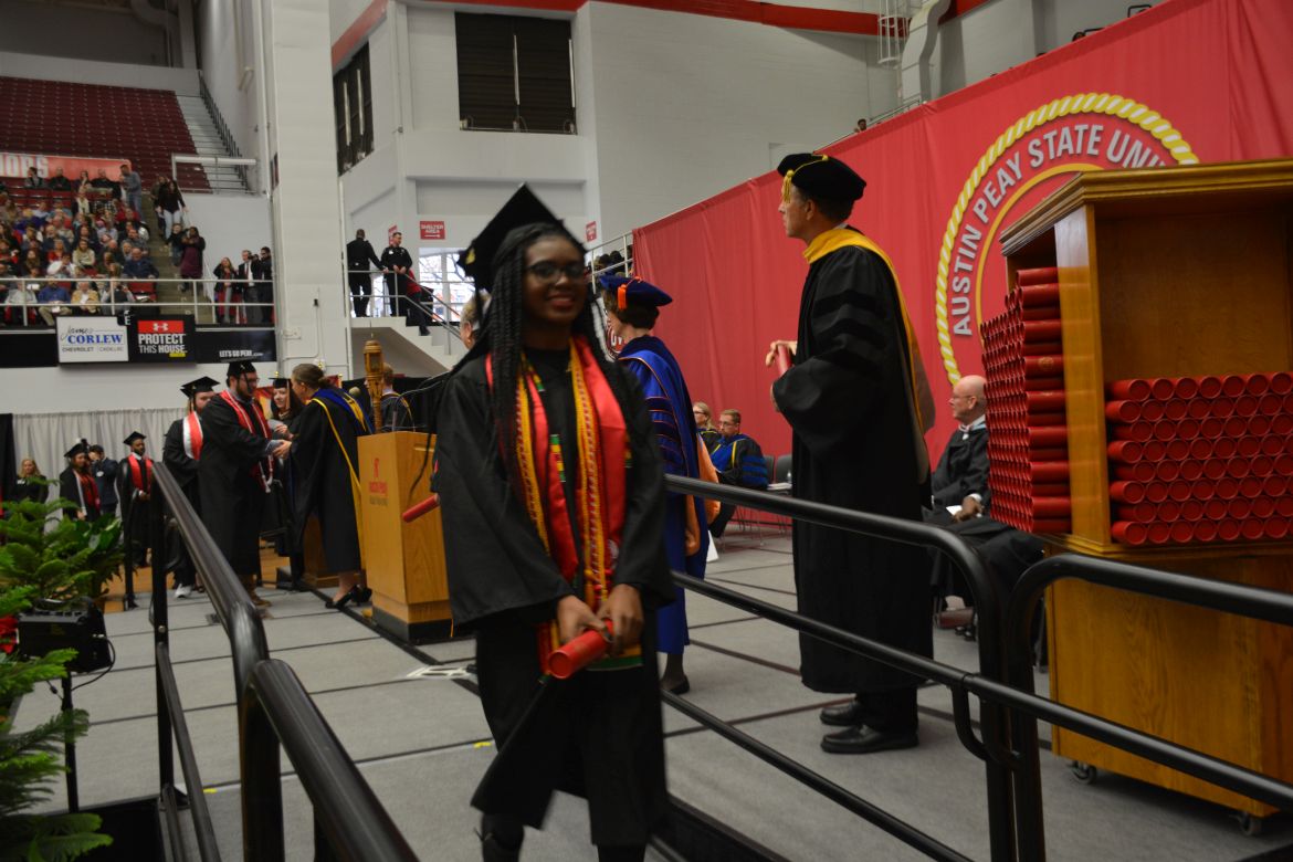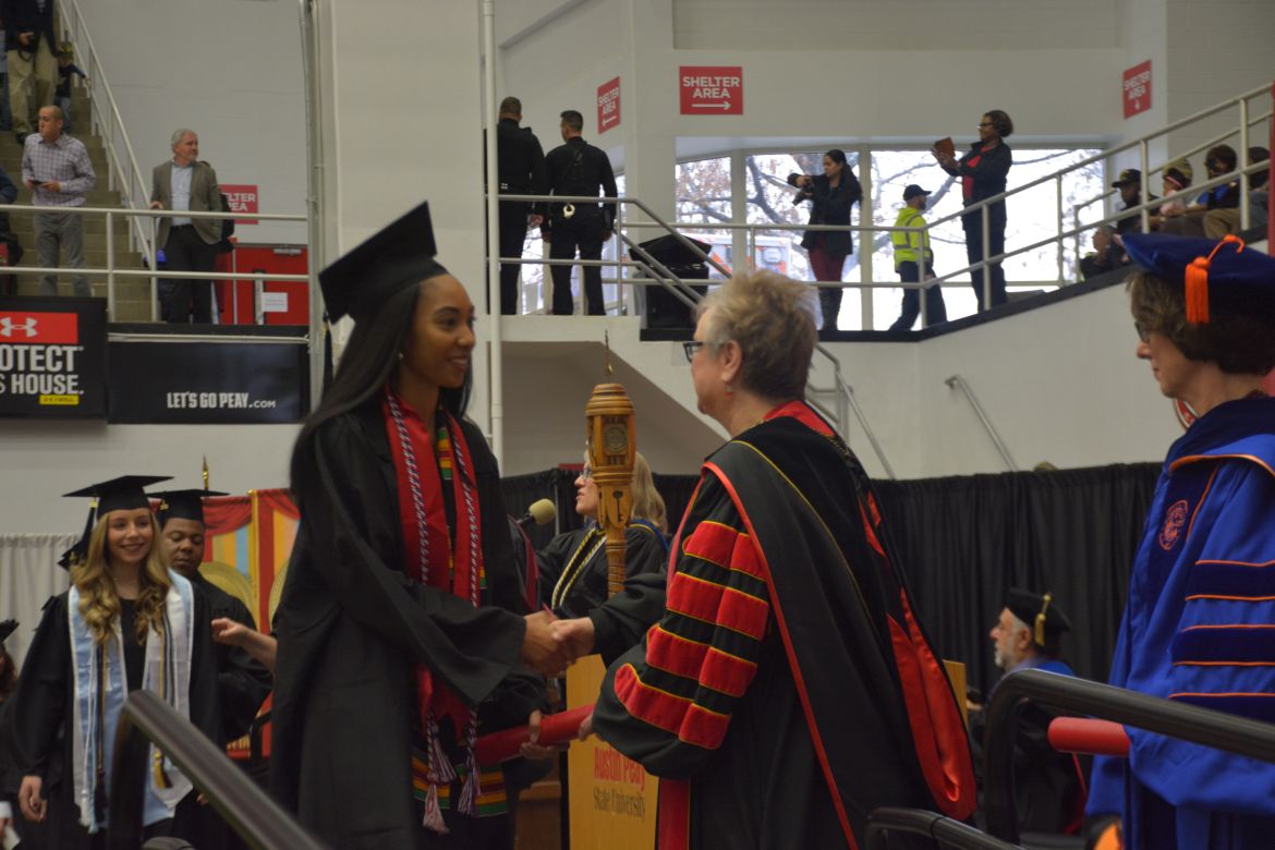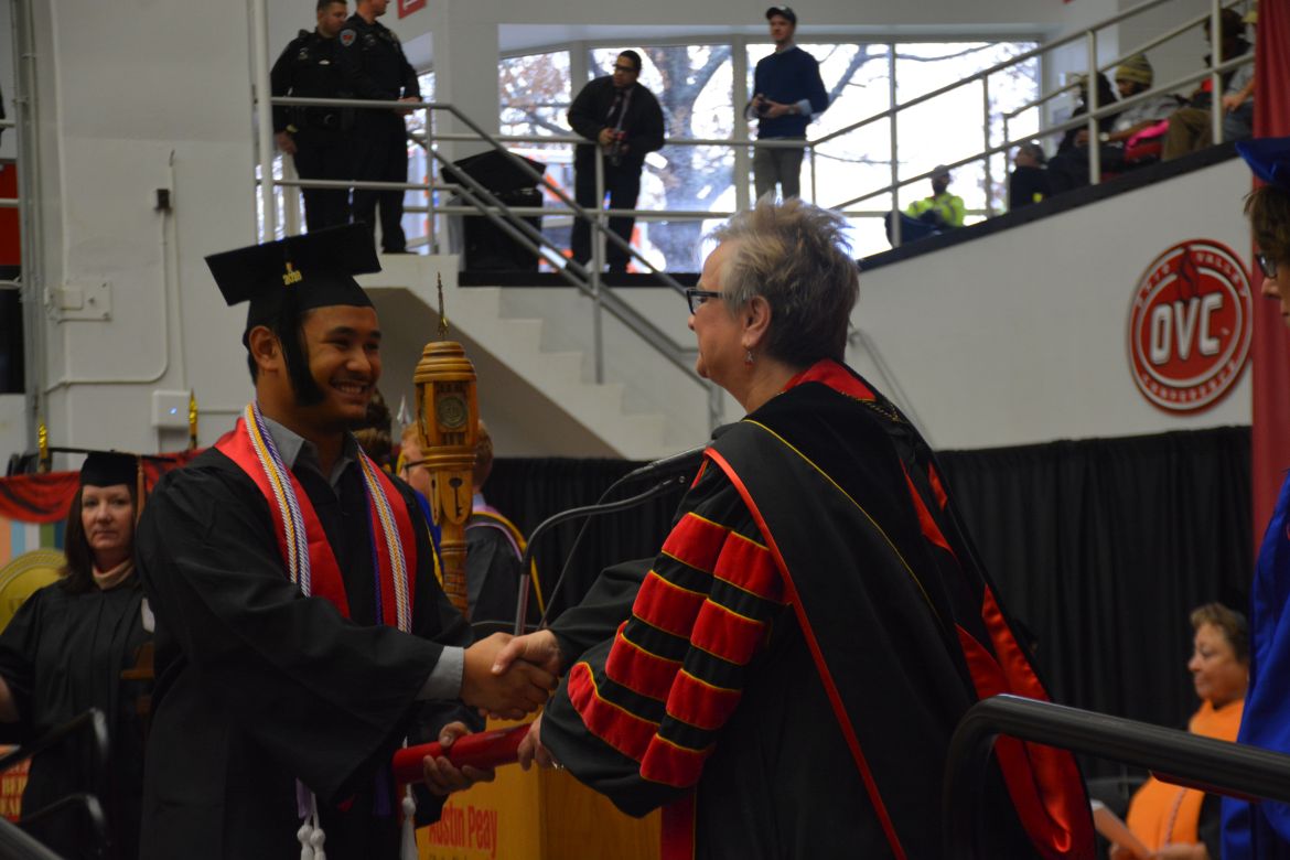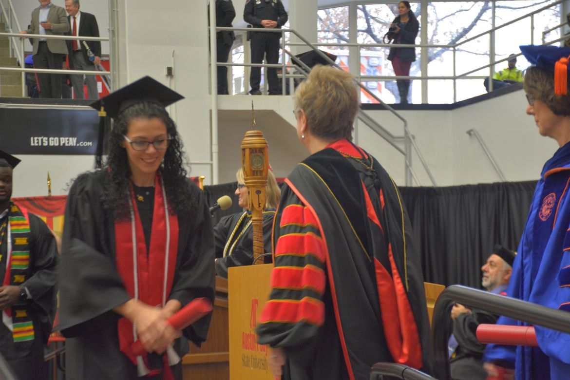 CLARKSVILLE, Tenn. (CLARKSVILLENOW) – Dr. Doris Davenport, Austin Peay State University professor of nursing and recipient of the 2018 National Alumni Association Distinguished Professor Award, delivered the keynote address during the University’s winter commencement on Friday, Dec. 14.
