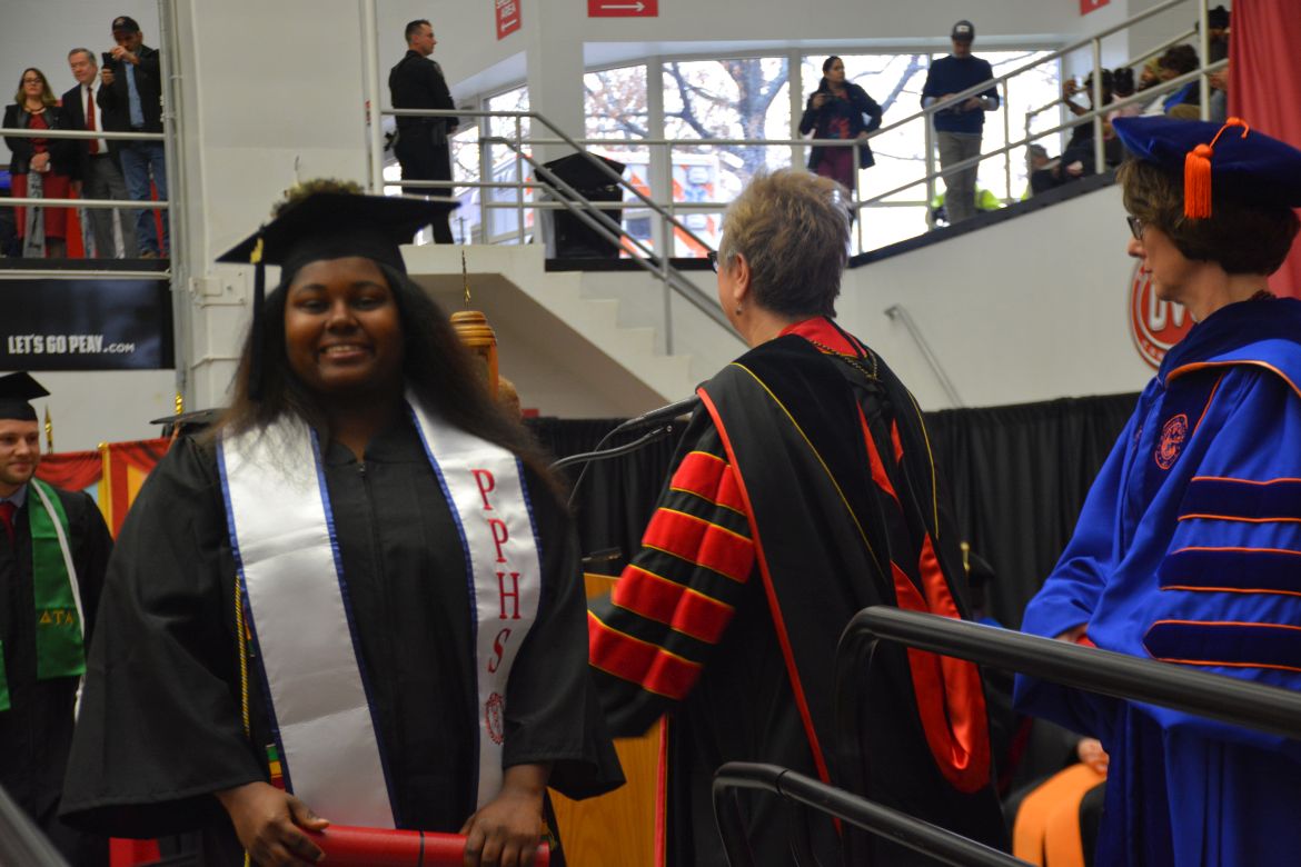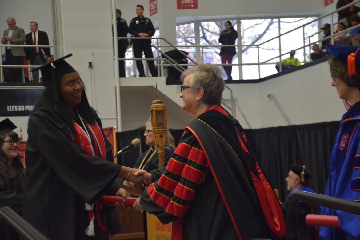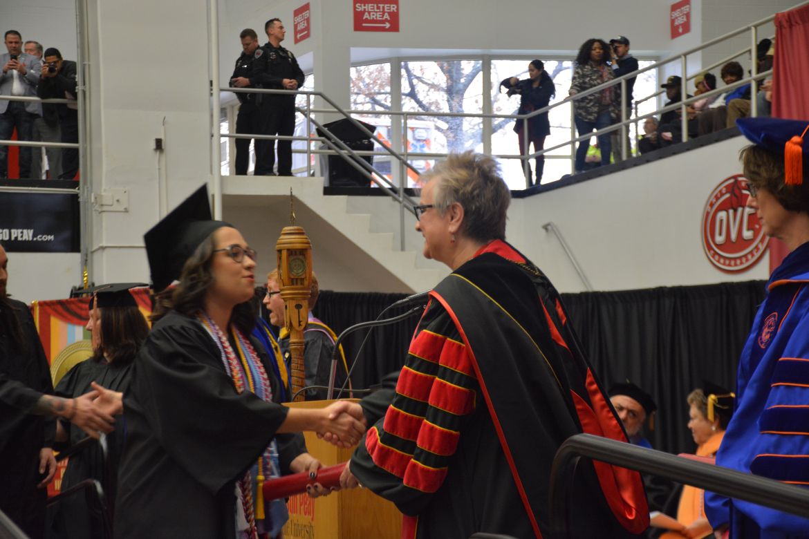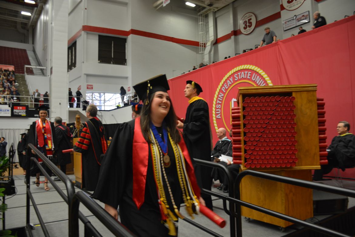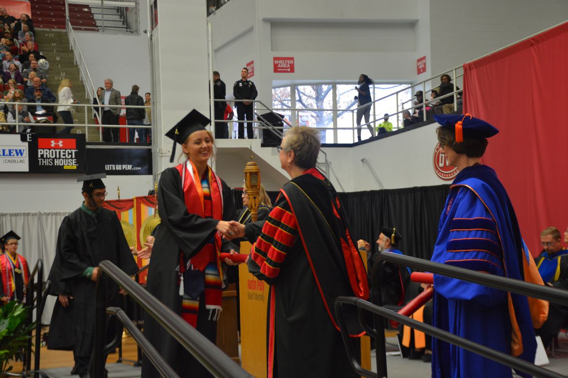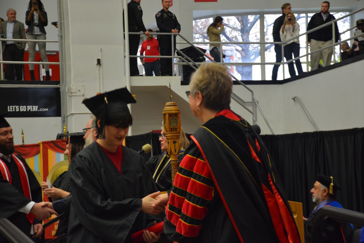 CLARKSVILLE, Tenn. (CLARKSVILLENOW) – Dr. Doris Davenport, Austin Peay State University professor of nursing and recipient of the 2018 National Alumni Association Distinguished Professor Award, delivered the keynote address during the University’s winter commencement on Friday, Dec. 14.