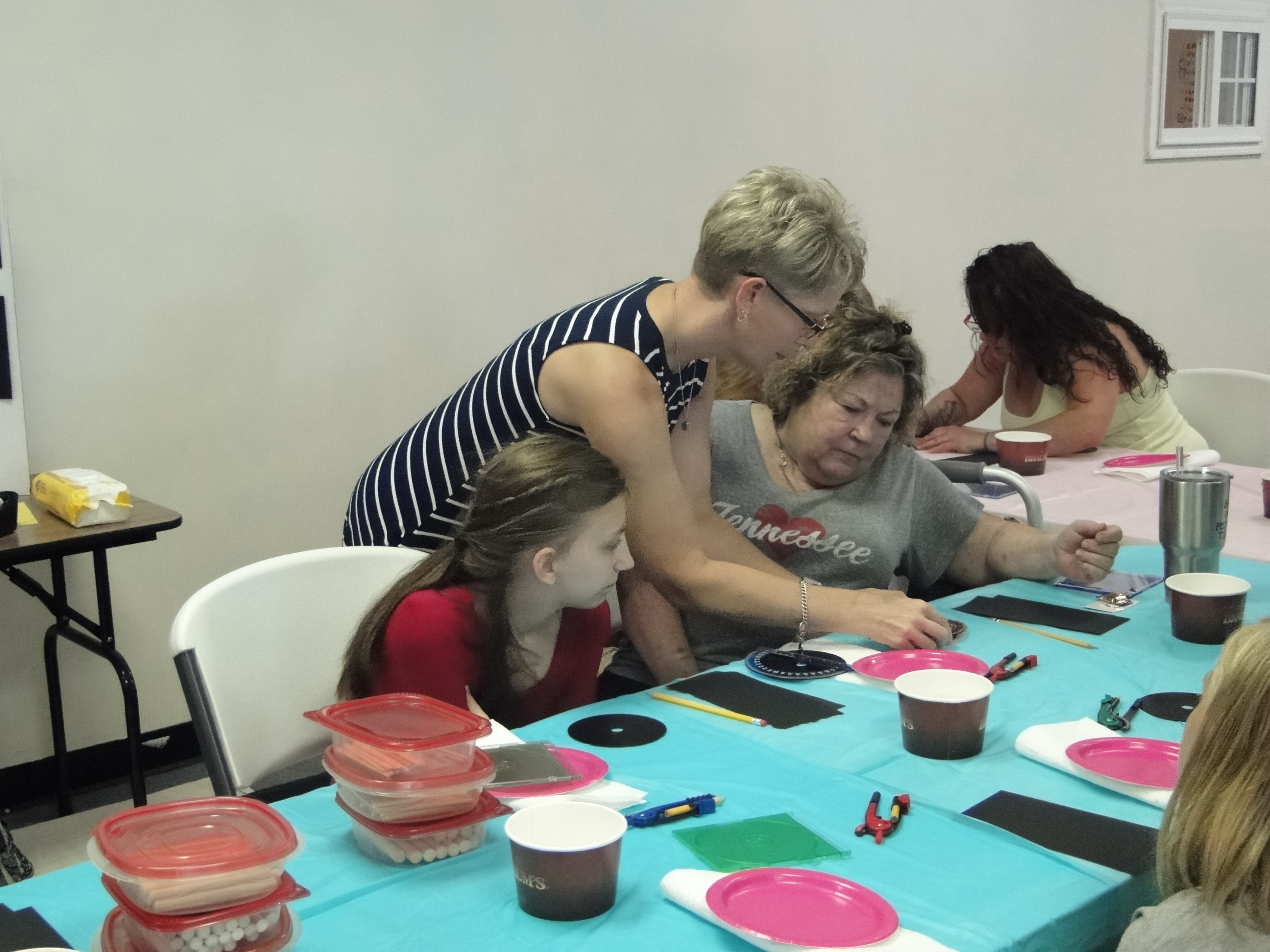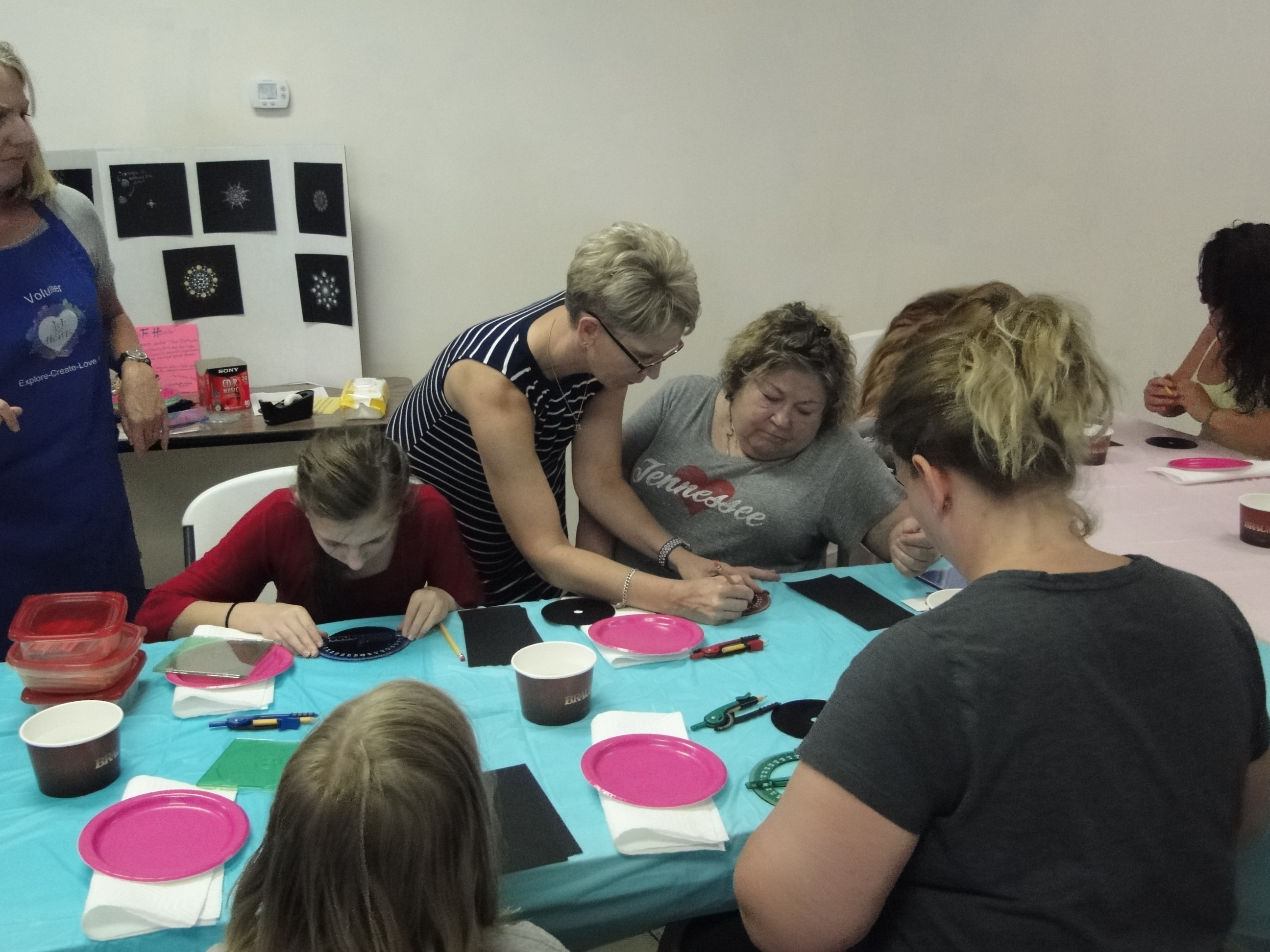 CLARKSVILLE, Tenn (CLARKSVILLENOW) – Saturday, July 13, Arts for Hearts hosted a free art class at the Habitat for Humanity ReStore on Madison Street. Susie Yonkers taught attendees how to paint in the mandala style using old CD’s.