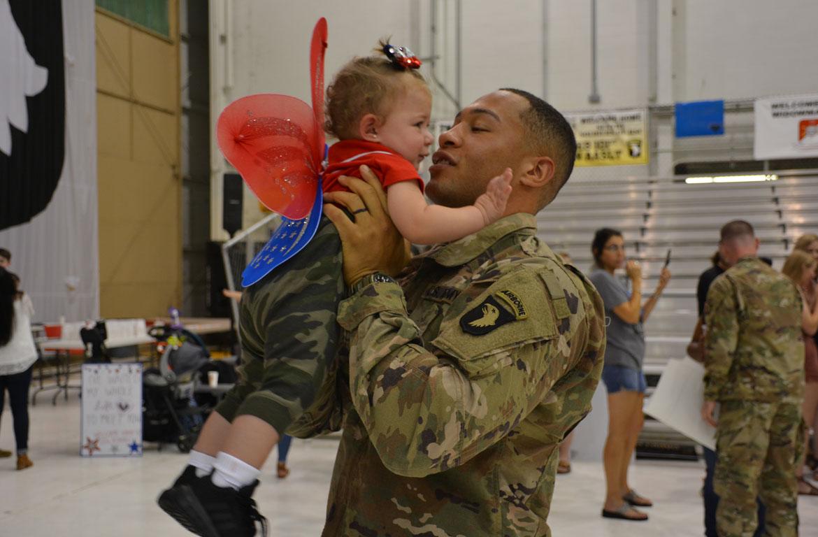FORT CAMPBELL, Ky. – (CLARKSVILLENOW) Family, friends and comrades filled Hanger 3 at Campbell Army Airfield late Monday night to welcome 217 soldiers with the 1st Brigade Combat Team (BCT) returning from a nine-month deployment to Iraq and Syria.