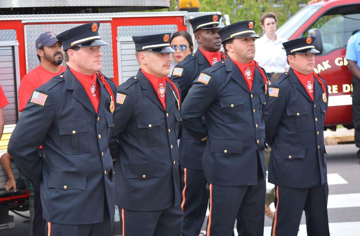 Honored were Firefighter Claude Walker who died in 1960, Captain George Wilson who lost his life in 1967 and Engineer Ray Harrison who made the ultimate sacrifice in 1981. Photos of the three men were placed at the base of the firefighter statue and flowers were placed near the photos.