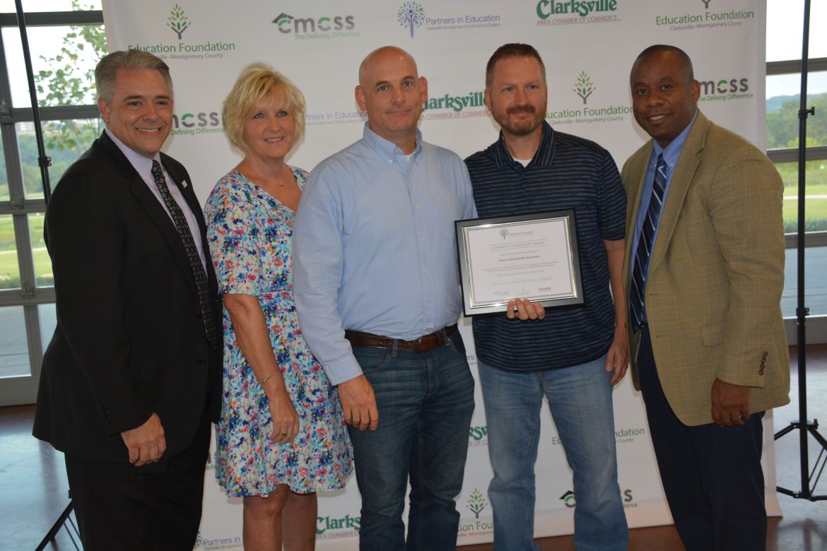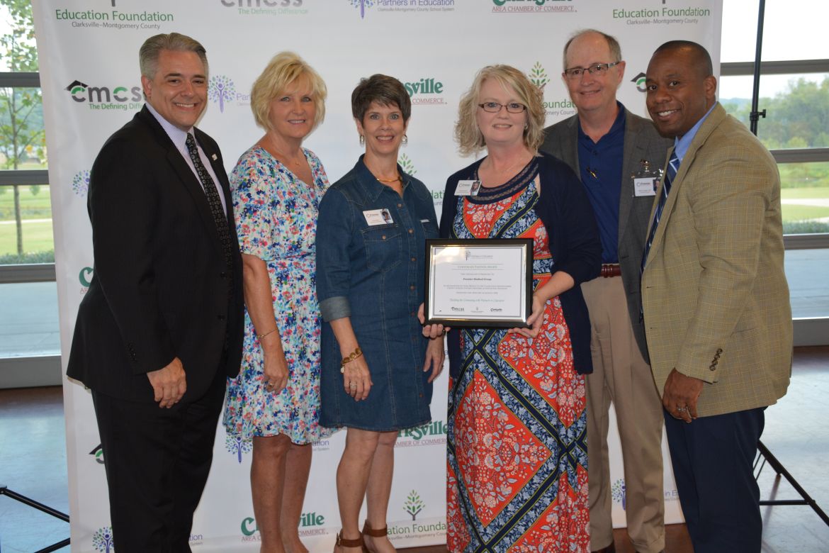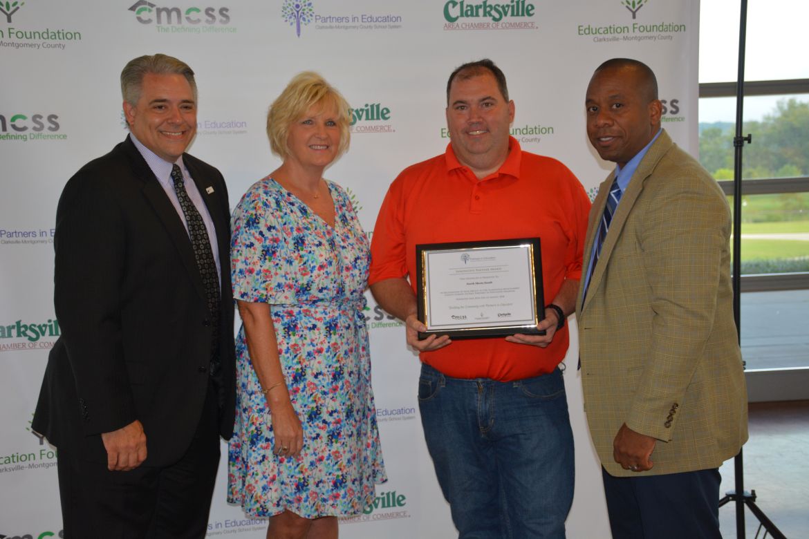 The highest award a community partner can receive from CMCSS is the Sarah Ditmore Cooper Outstanding Partner Award. Ditmore is a former English teacher at Clarksville High School and a former district-wide Teacher of the Year recipient who launched the Pattners in Schools program over 30 years ago. F&M bank was honored for their support of Northeast Middle School.