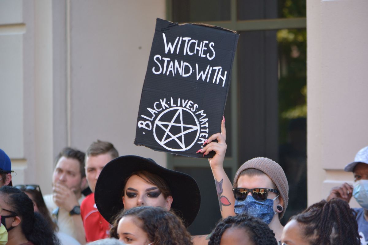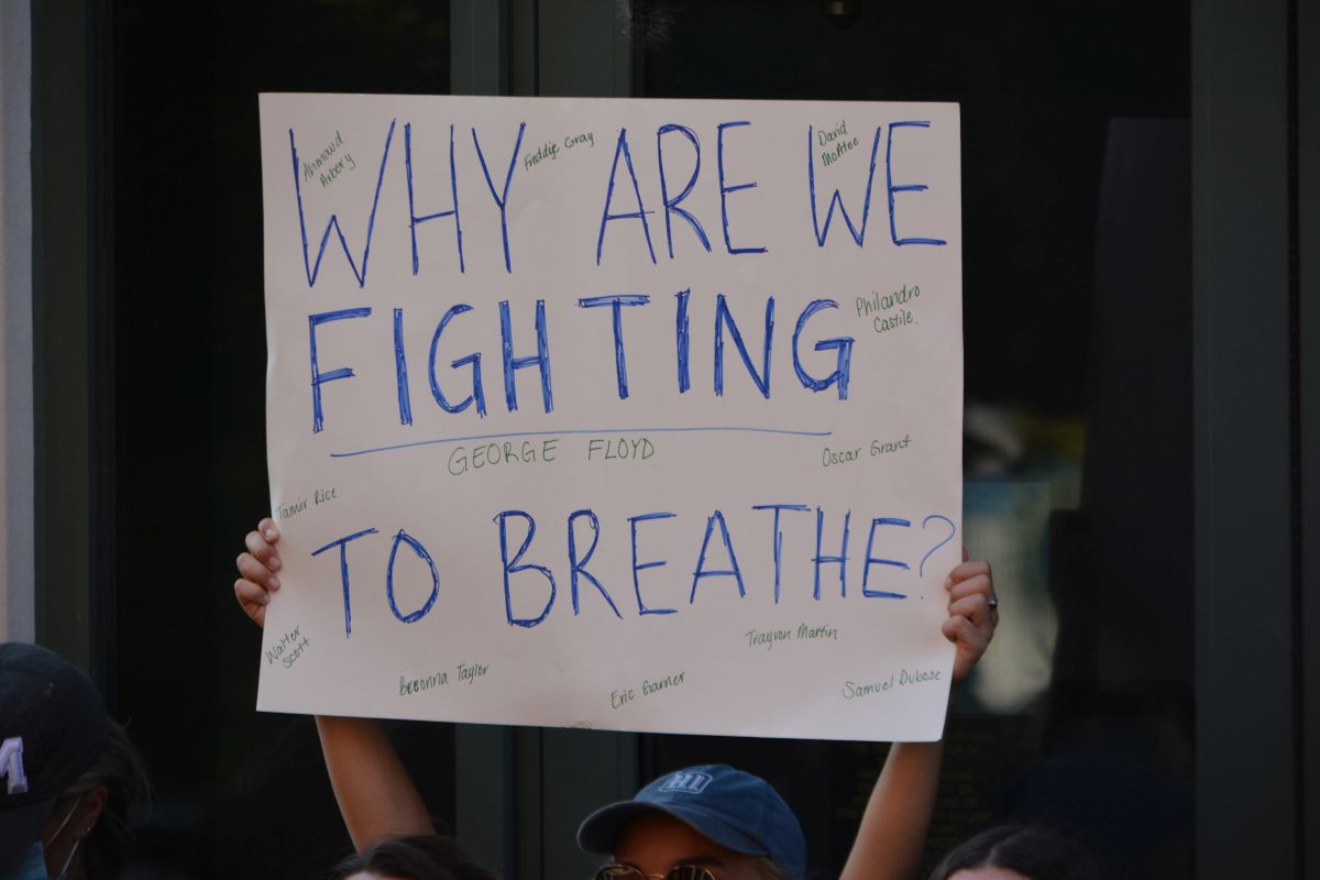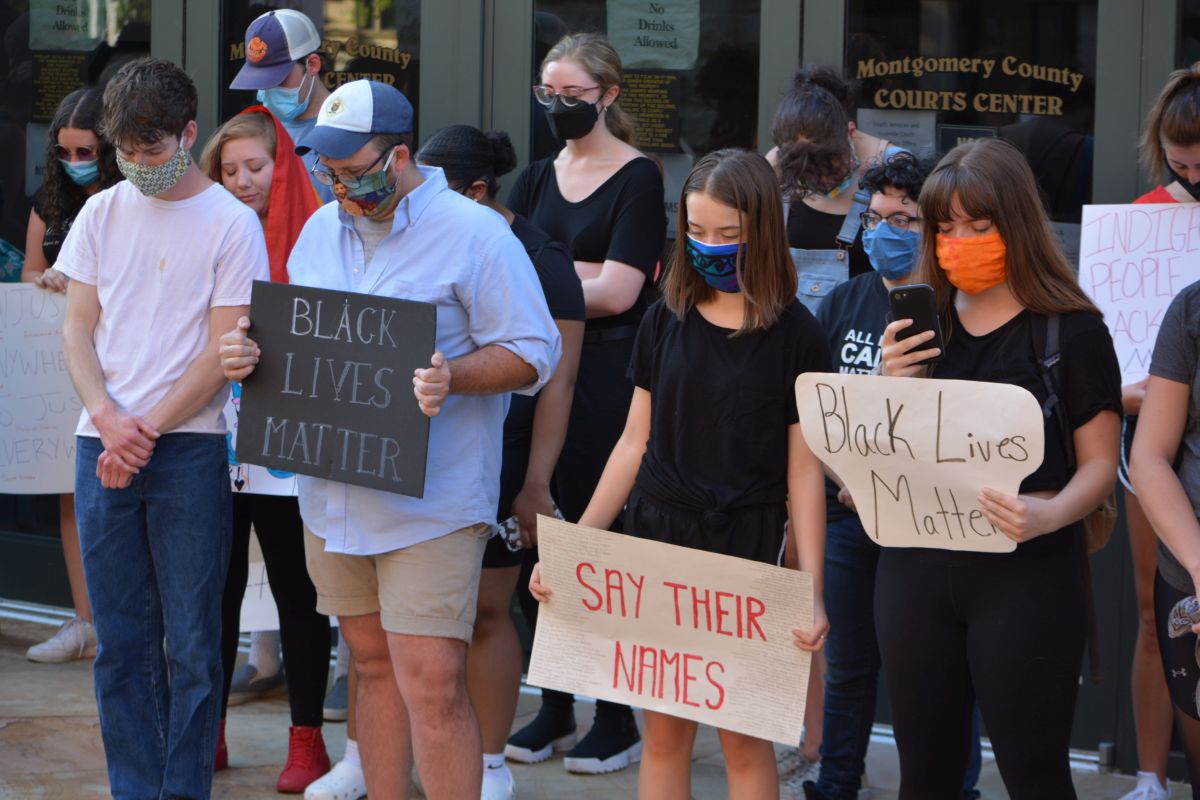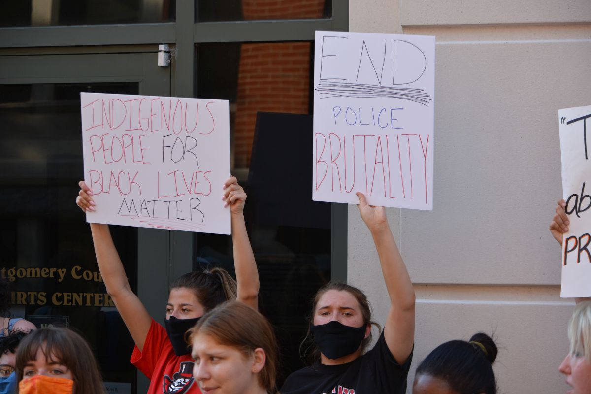 The crowd chanted “No Justice, No Peace, Prosecute the Police,” and their voices echoed off the downtown buildings. The large crowd made their way and towards the Montgomery County Courthouse and gathered around the fountain chanting”Black Lives Matter!”