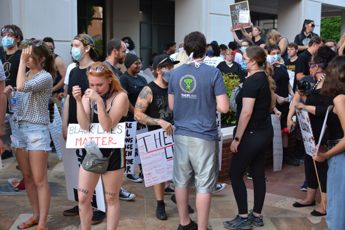 Hundreds of people, many sporting masks, carried signs with phrases like “Black Lives Matter,” “I Can’t Breathe,” or “No Justice, No Peace.” A number of people who marched addressed the crowd, including Clarksville City Councilmen Tim Chandler and David Allen.