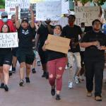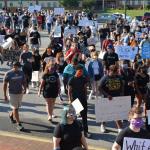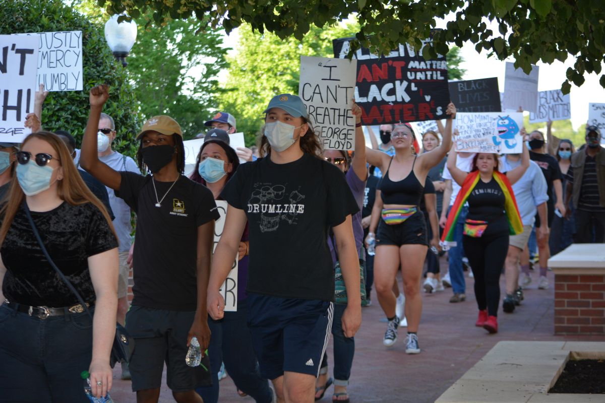 CLARKSVILLE, Tenn. (CLARKSVILLENOW) – Demonstrators gathered at Austin Peay State University’s Fortera Stadium and took to the streets of downtown Clarksville marching in protest of police brutality and racial injustice.