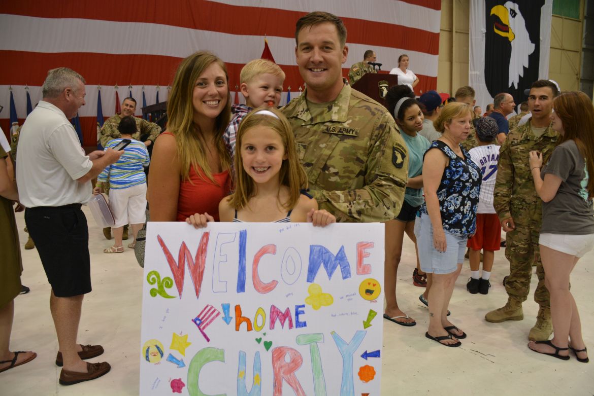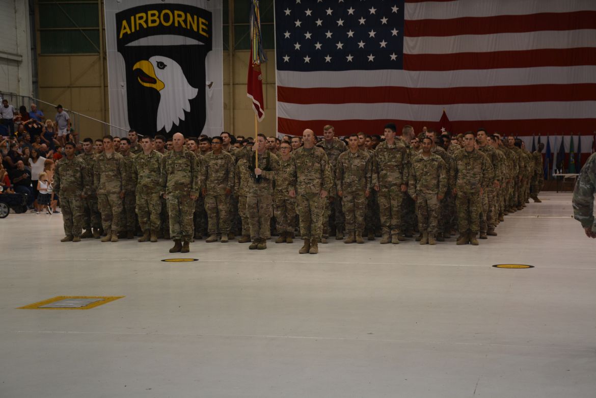 Speaking to the crowd, Deputy Commanding General for Support of the 101st Airborne Division (Air Assault), Brigadier General Todd Royar said this about the returning soldiers. “Over the past nine months, they have done everything to standard, they have succeeded in their mission and they have brought credit to this great division, our great Army, our great nation and to you as families,” said Royar.