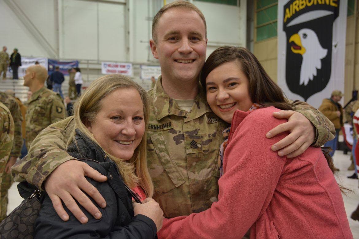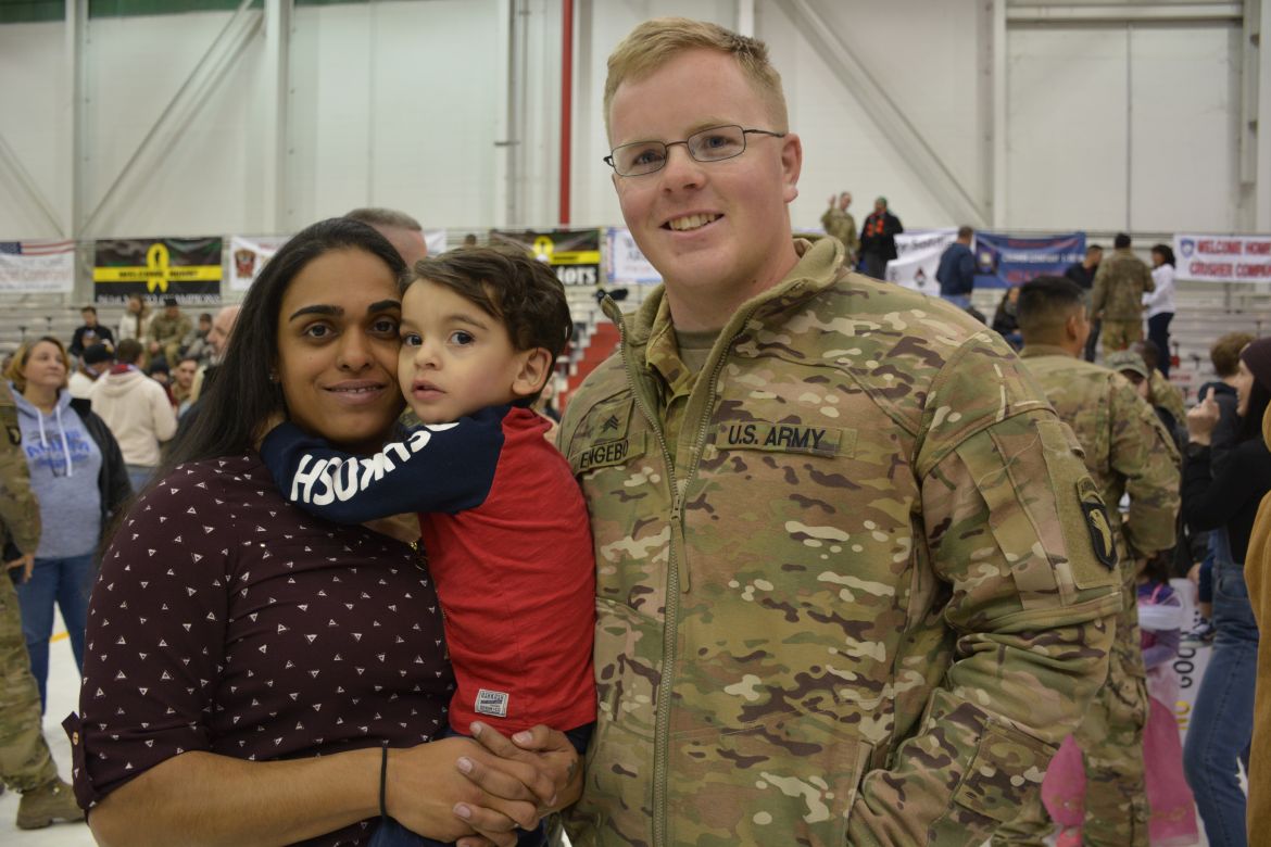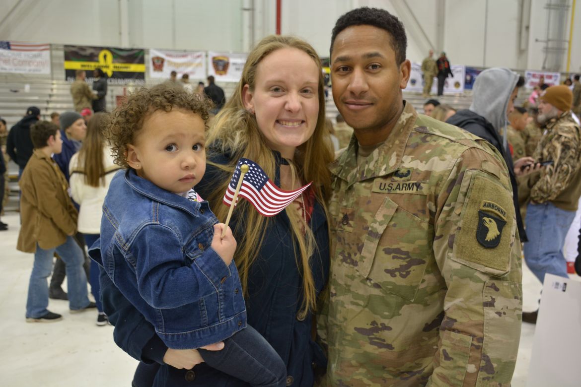 Sergeant Zachary Powell with the 101st CAB was glad to see his family again.