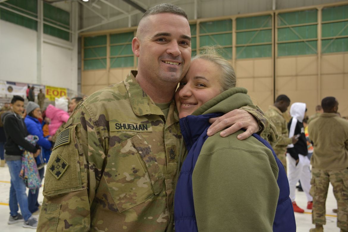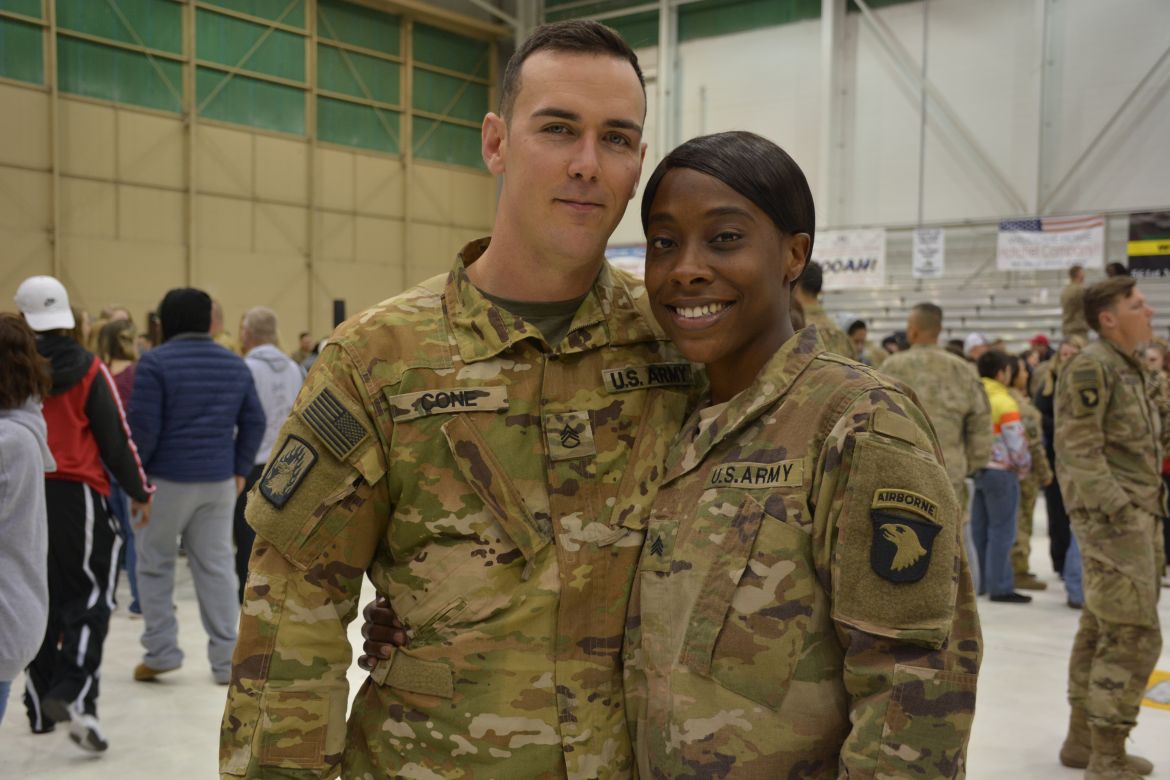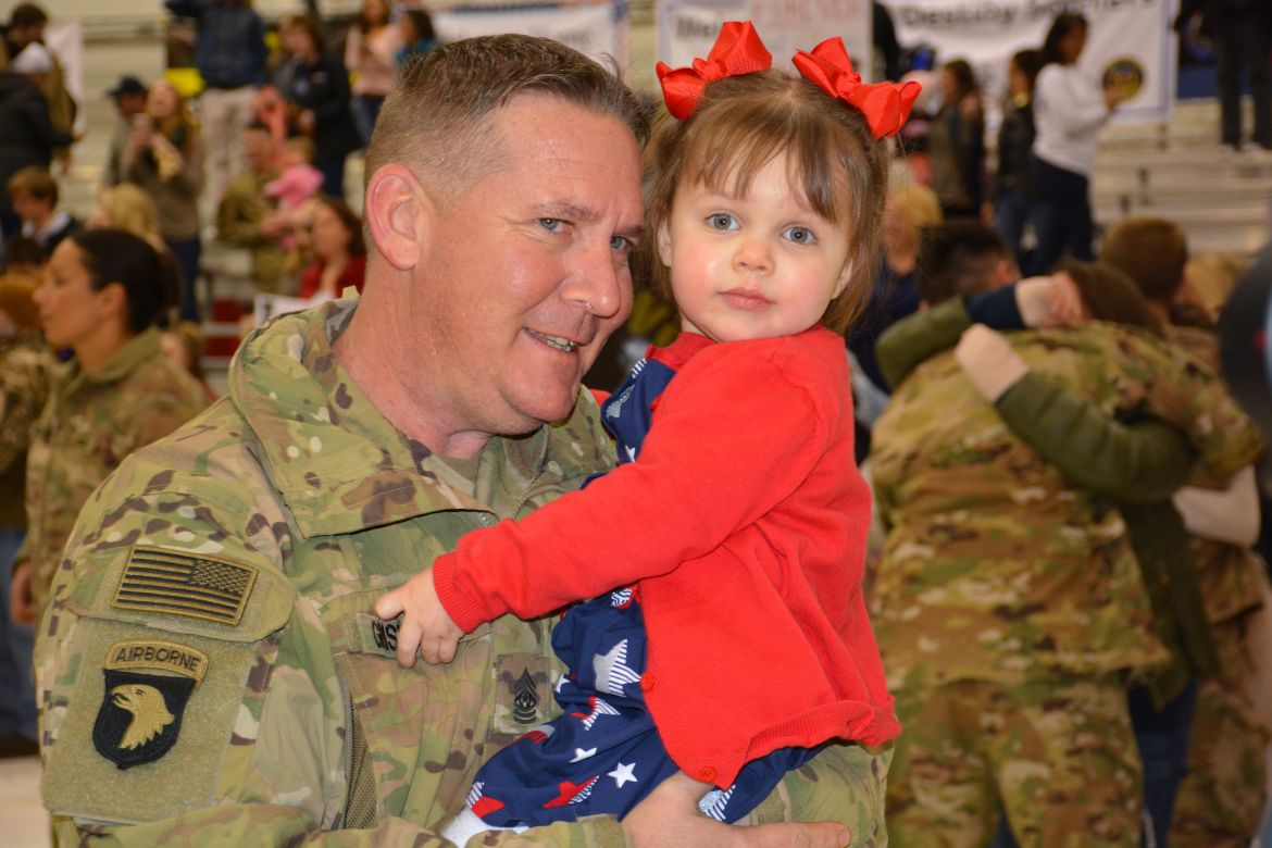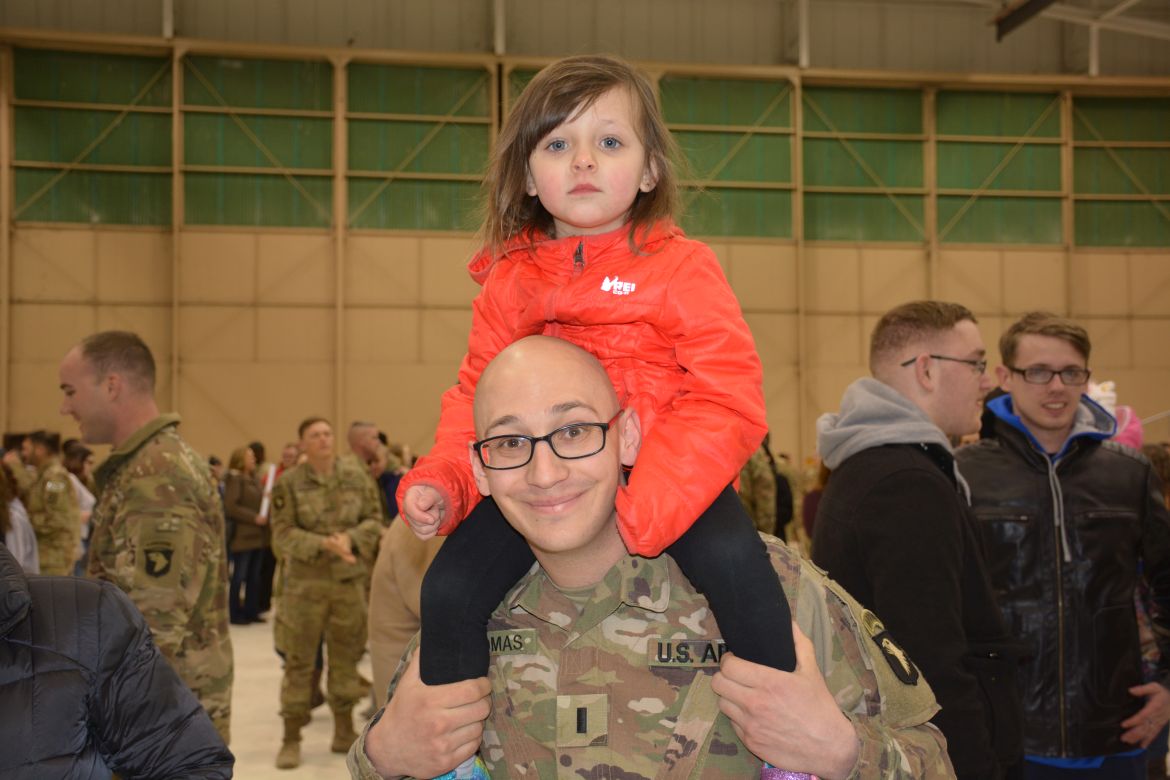Sergeant Zachary Powell with the 101st CAB was glad to see his family again.