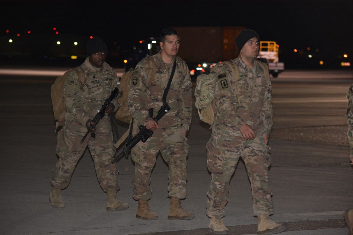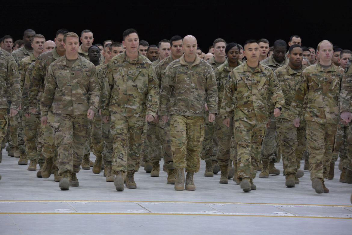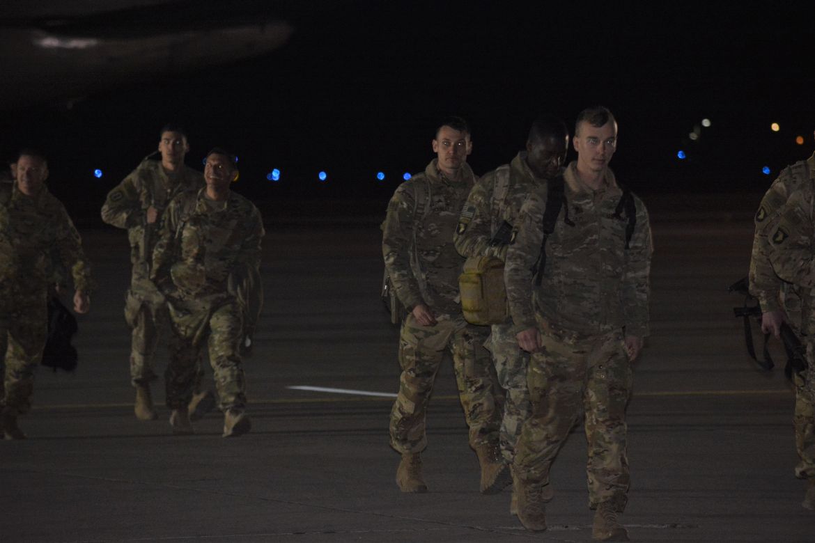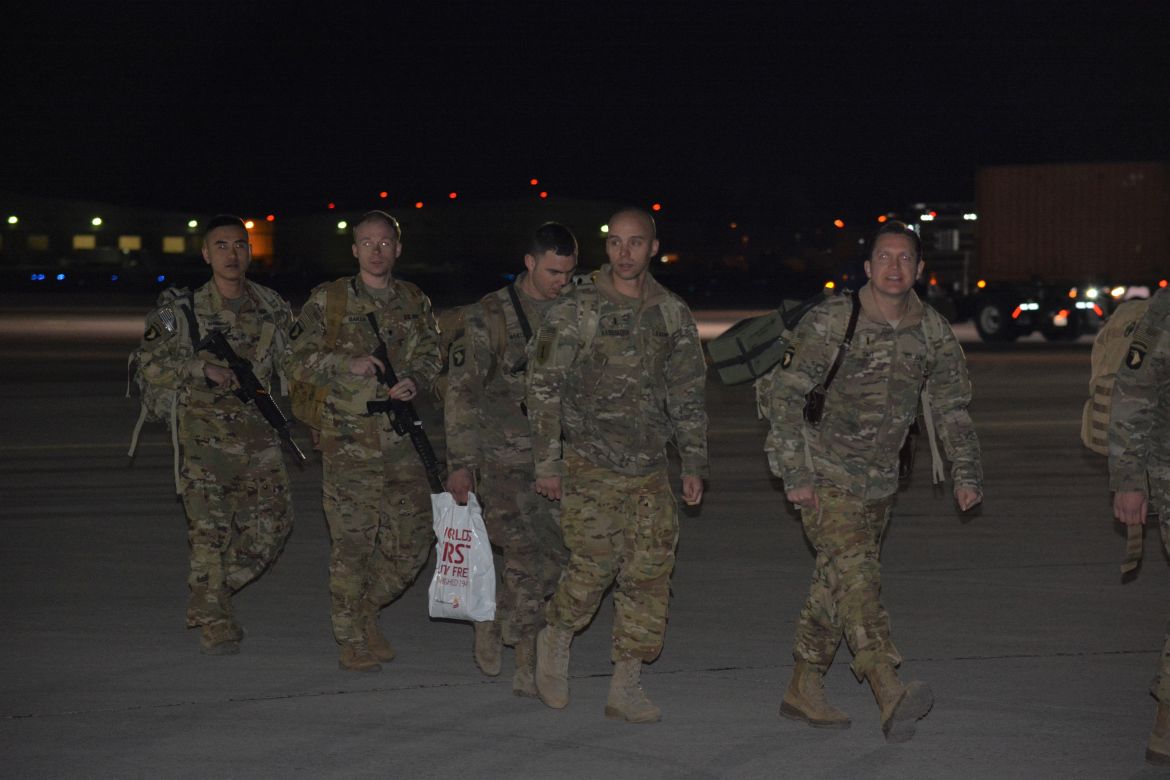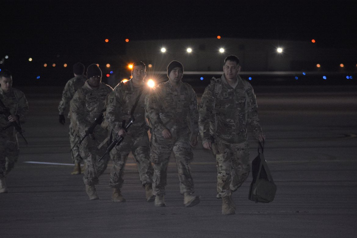 FORT CAMPBELL, KY. – (CLARKSVILLENOW) It was a very cold Tuesday night at Campbell Army Airfield as 177 soldiers with the 101st Combat Aviation Brigade (CAB) and 52nd Ordnance Group (EOD) stepped off the plane to cheers and applause.