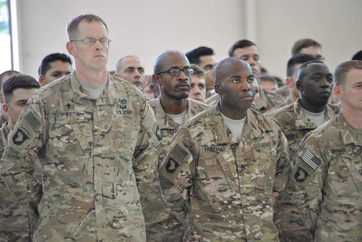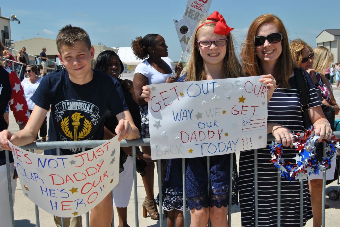 FORT CAMPBELL, Ky. (CLARKSVILLENOW) – It was a little warm inside Hangar 3 at Campbell Army Airfield Monday, but there were still a lot of happy family members and friends at the Welcome Home Ceremony for 193 soldiers with the 3rd Brigade Combat Team (BCT) “Rakkasans” returning from a nine-month deployment to Afghanistan.