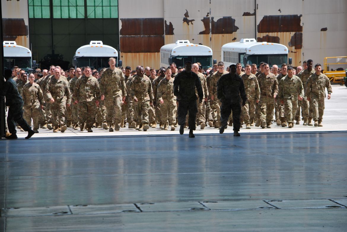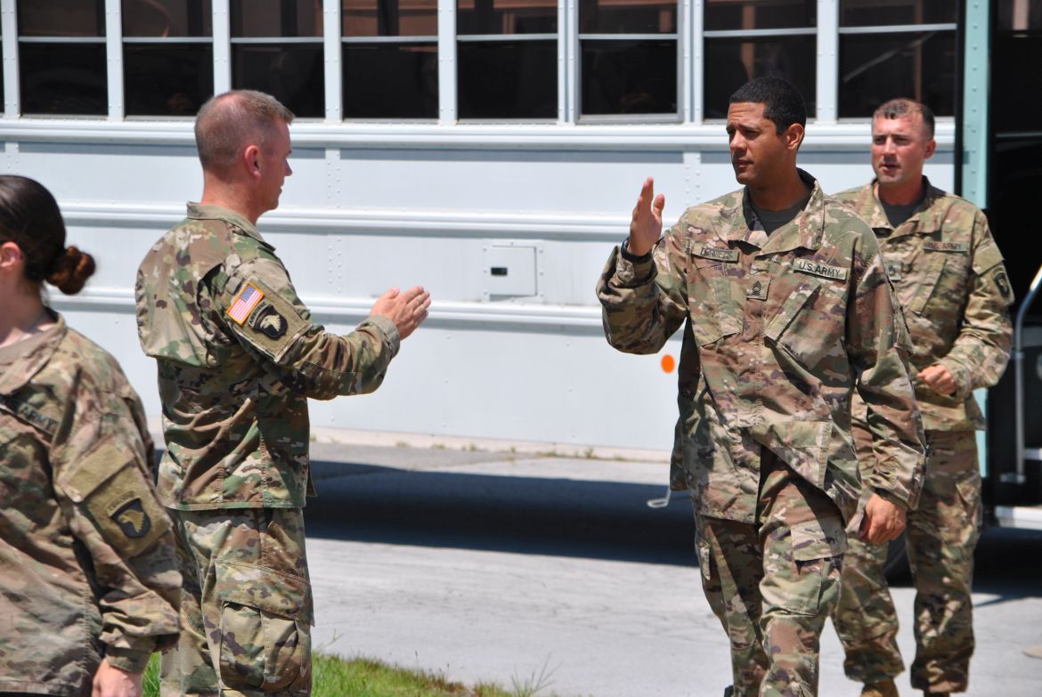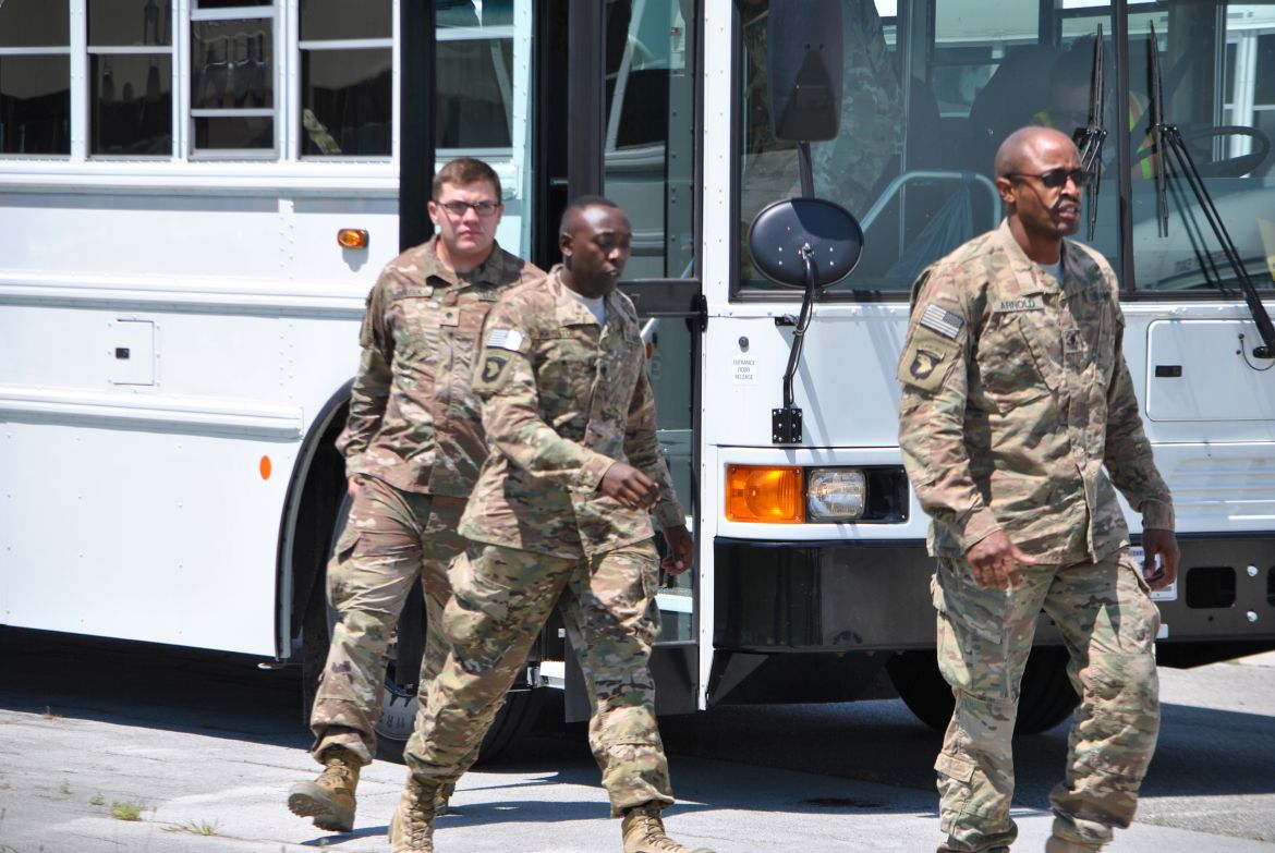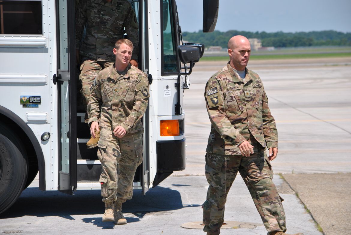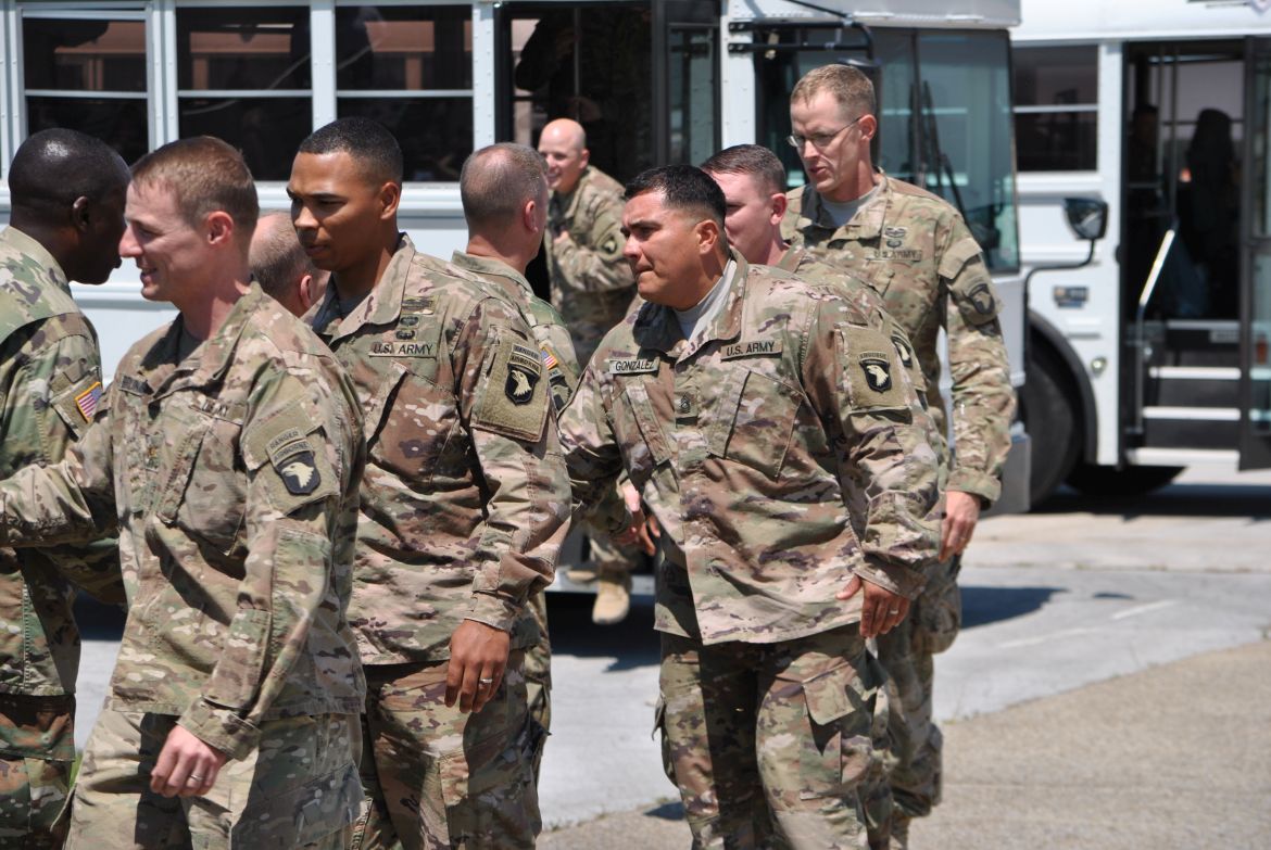 With the construction work going on at the airfield on Post, the 3rd BCT soldiers flew into Nashville earlier today and arrived by bus at Fort Campbell.