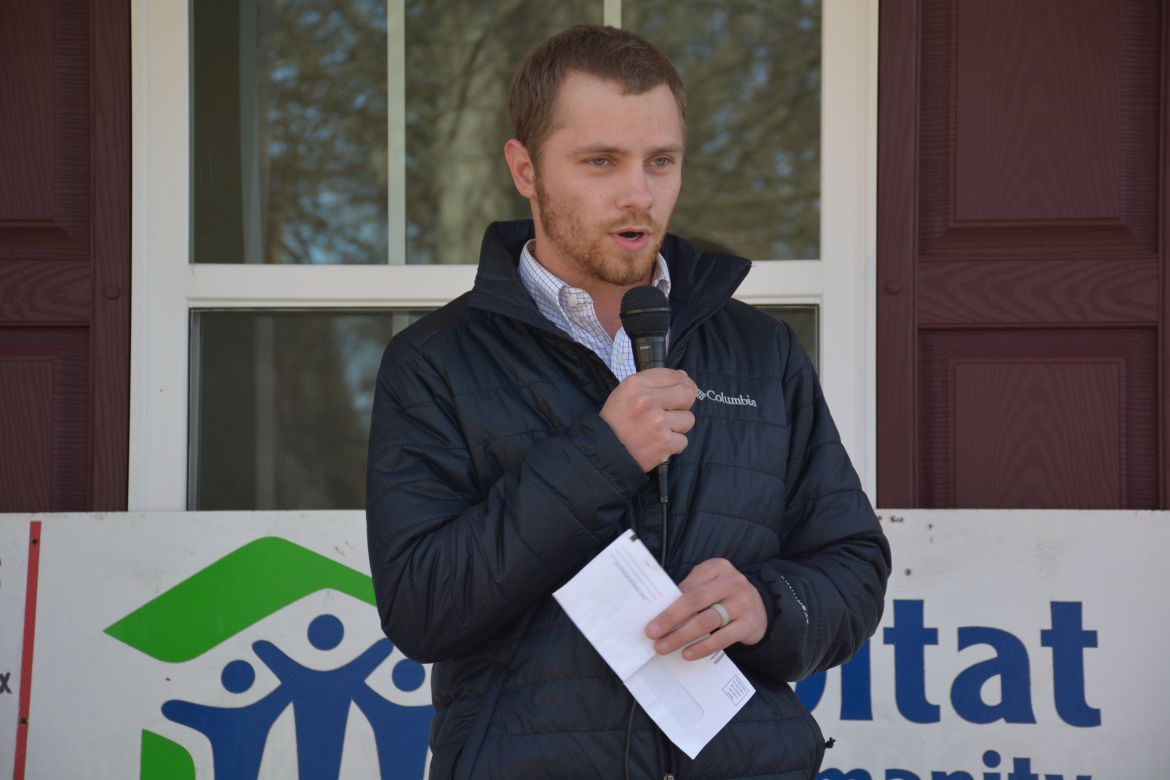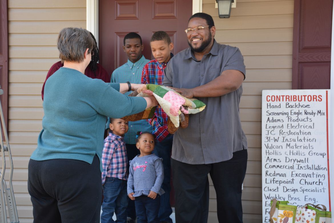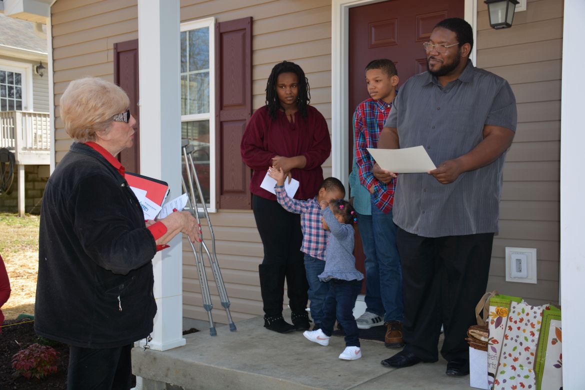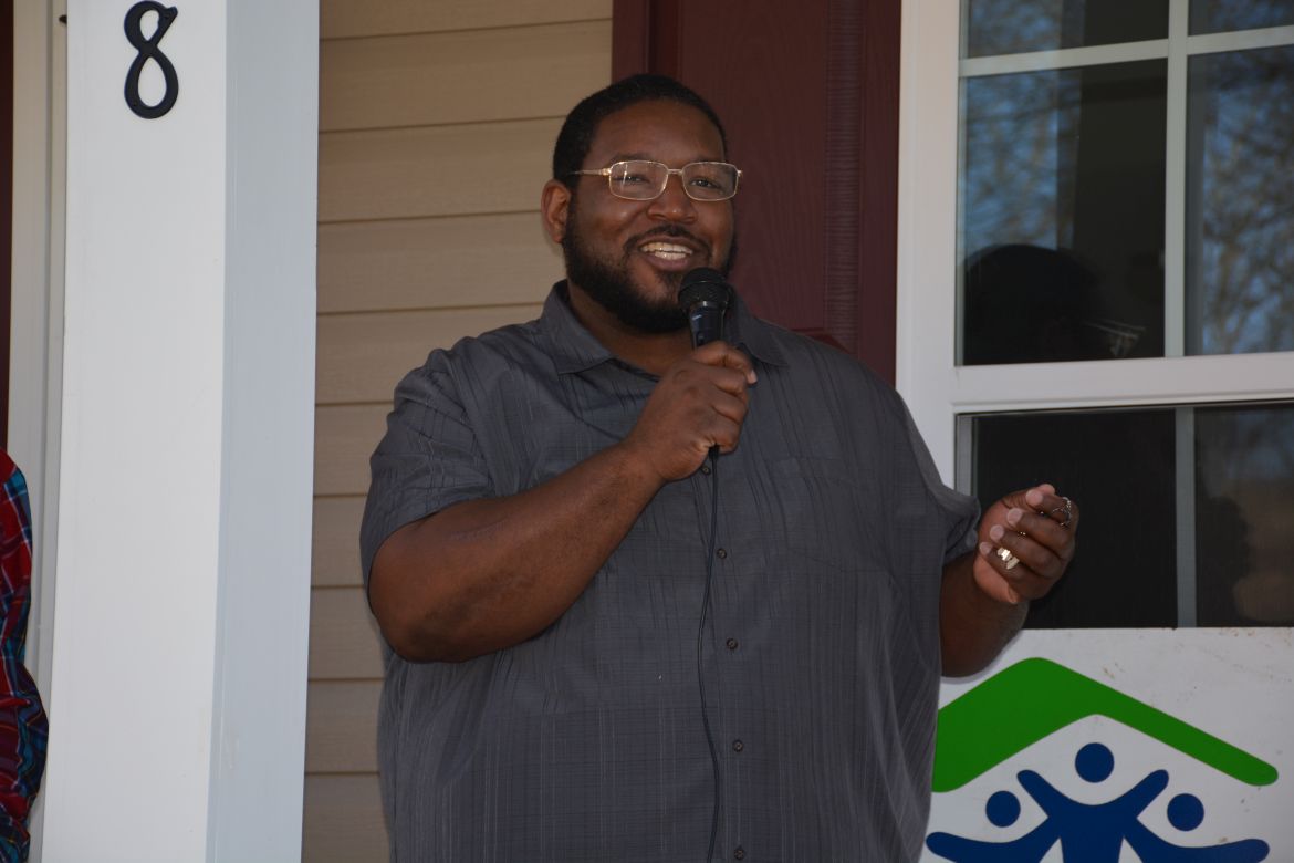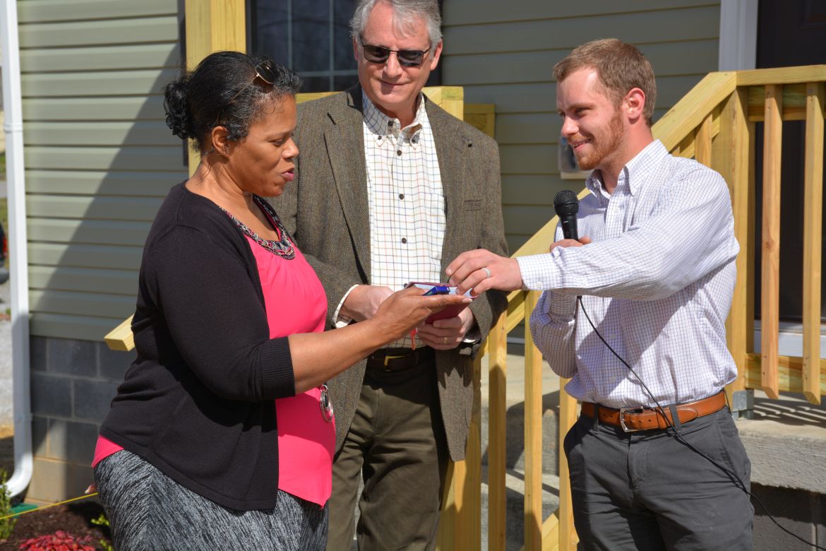 Messiah Sadler and Sonya McAdoo, who recently completed the Habitat for Humanity home buyer program, were joined by friends and supporters as builder Luke Baggett presented them keys to their new homes on Reynolds St. and Cedar St.
