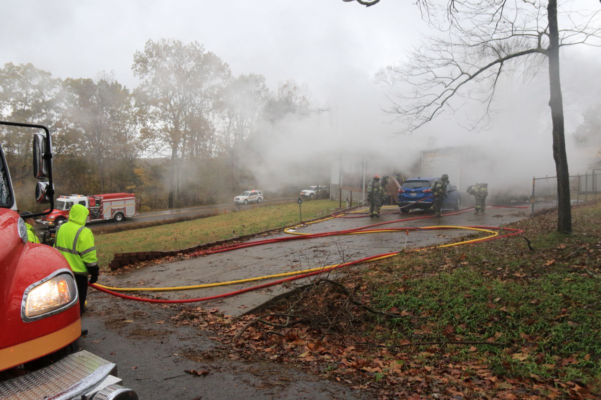 At approximately 1:03 p.m. Battalion 3 District 2 crews from stations 5,6, and 7 were dispatched to 715 Eva Dr. to a house fire. Units arrived on the scene in five minutes and found heavy smoke and flames coming through the roof.