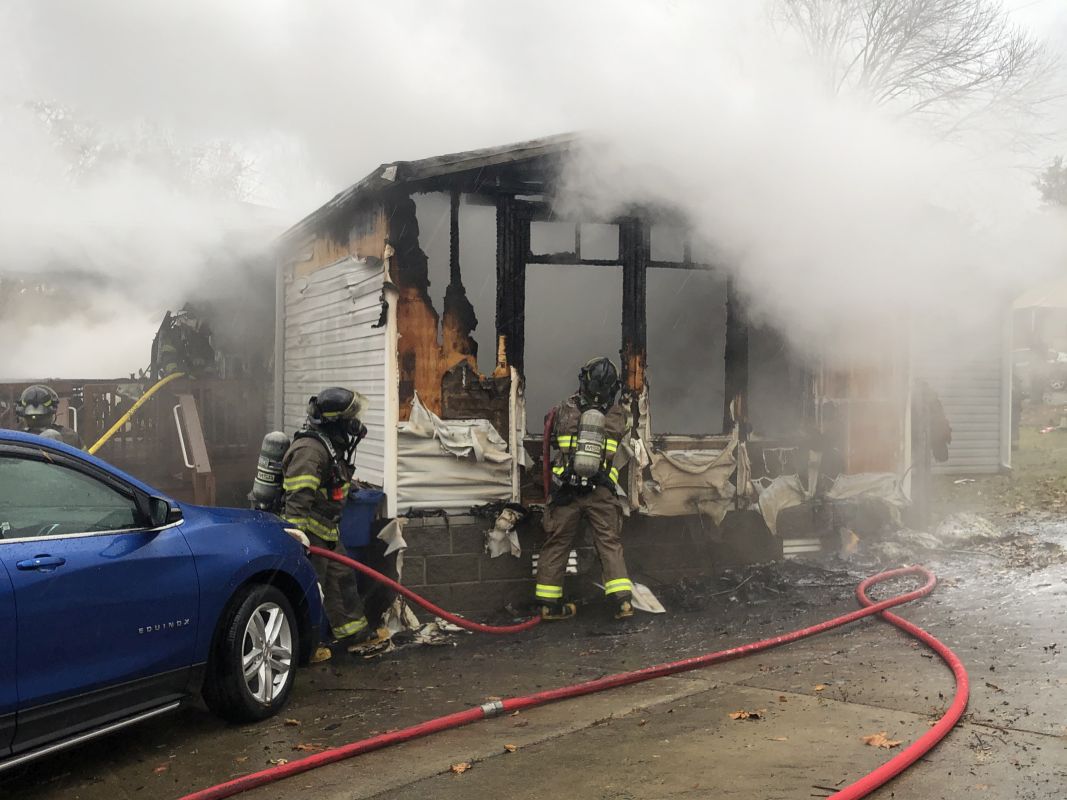 At approximately  1:03 p.m. Battalion 3 District 2 crews from stations 5,6, and 7 were dispatched to 715 Eva Dr. to a house fire. Units arrived on the scene in five minutes and found heavy smoke and flames coming through the roof.