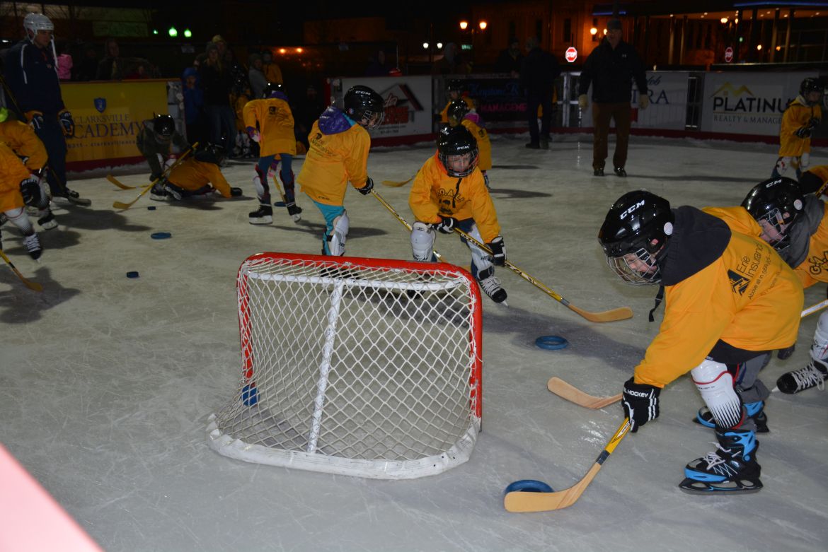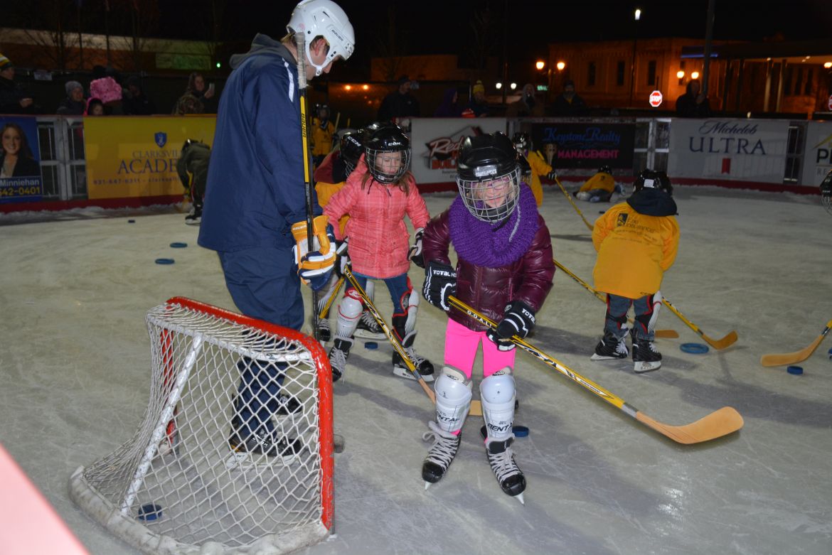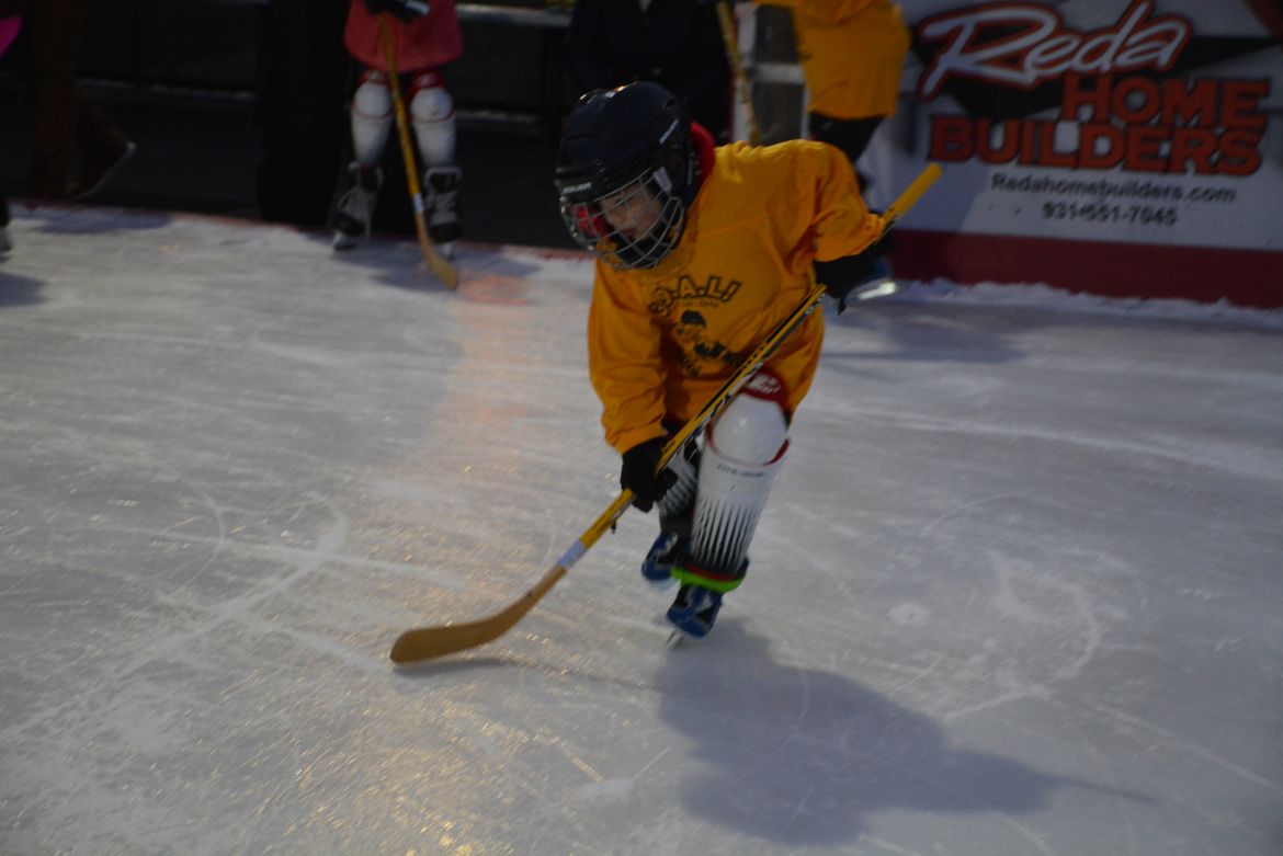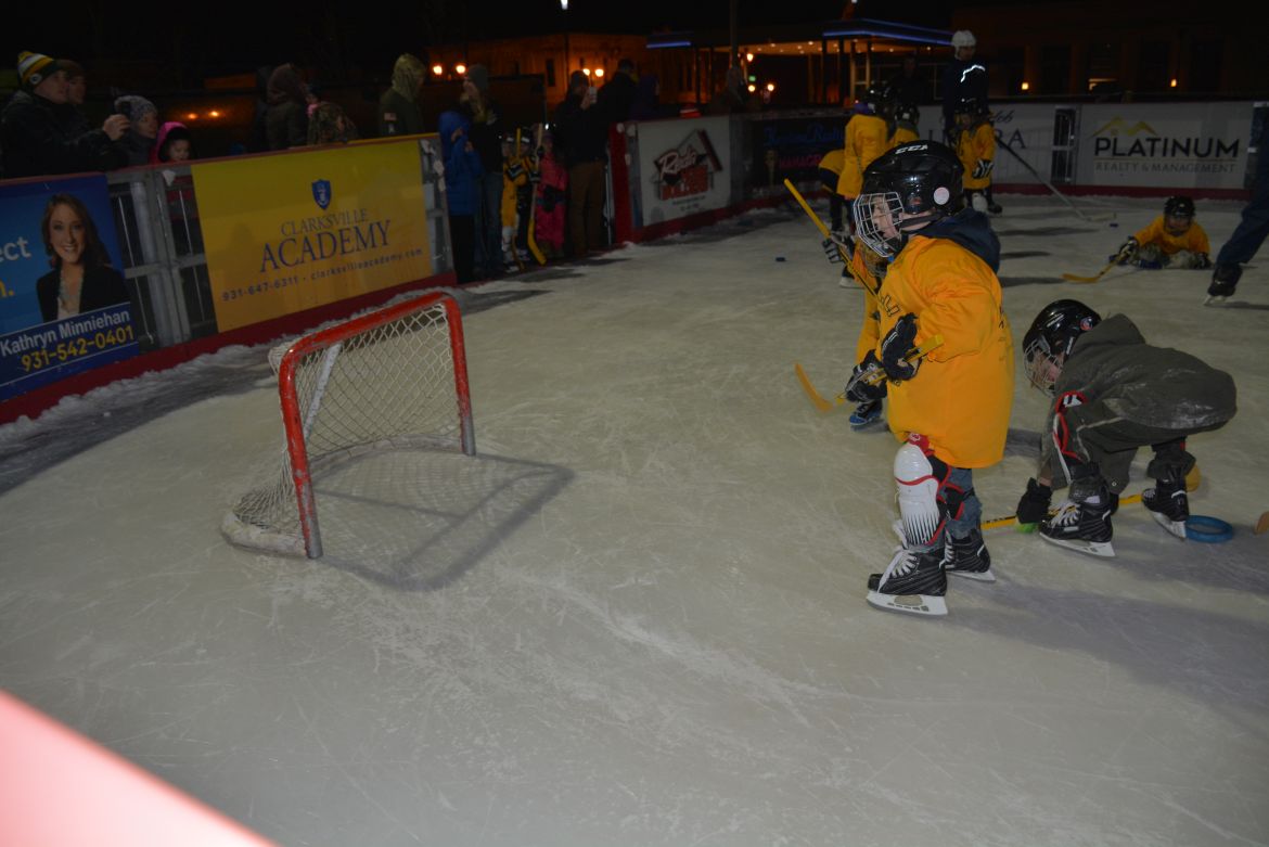 CLARKSVILLE, Tenn. (CLARKSVILLENOW) – On Friday, January 5, members from the Predators Team Get Out And Learn (G.O.A.L) Program came to the Downtown Commons Outdoor Ice Skating Rink to teach children ages four to eight-years-old some hockey basics.