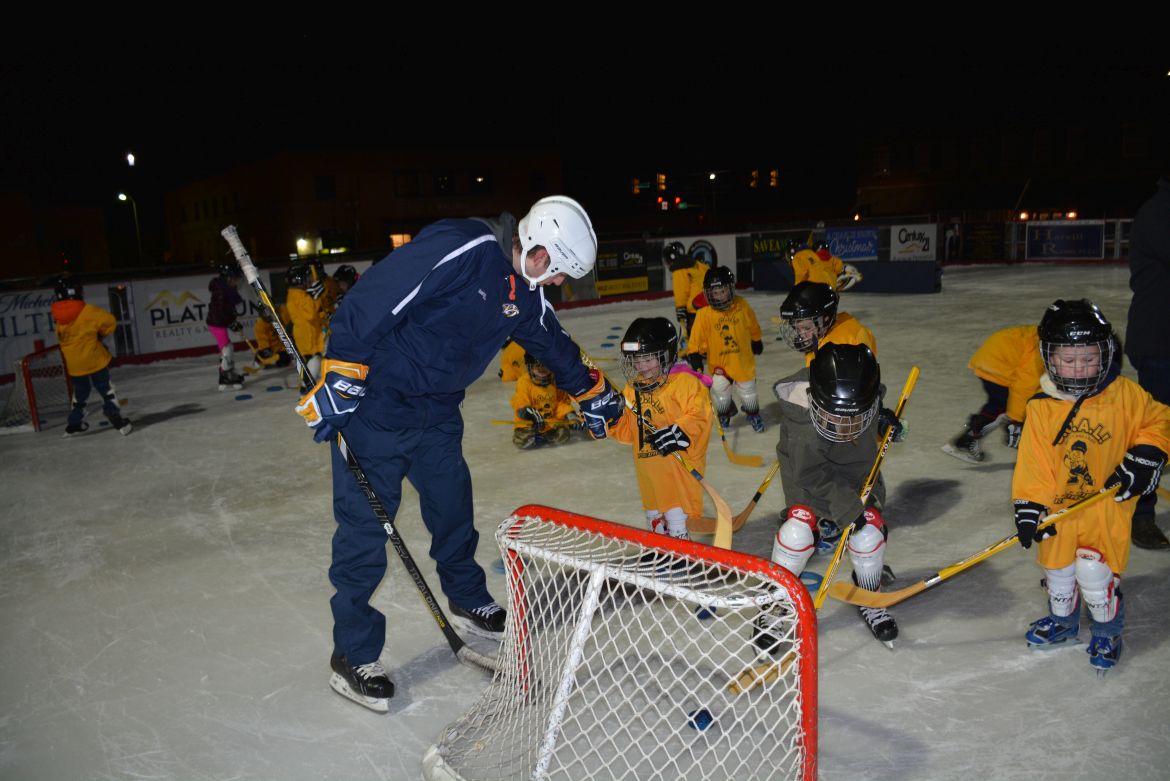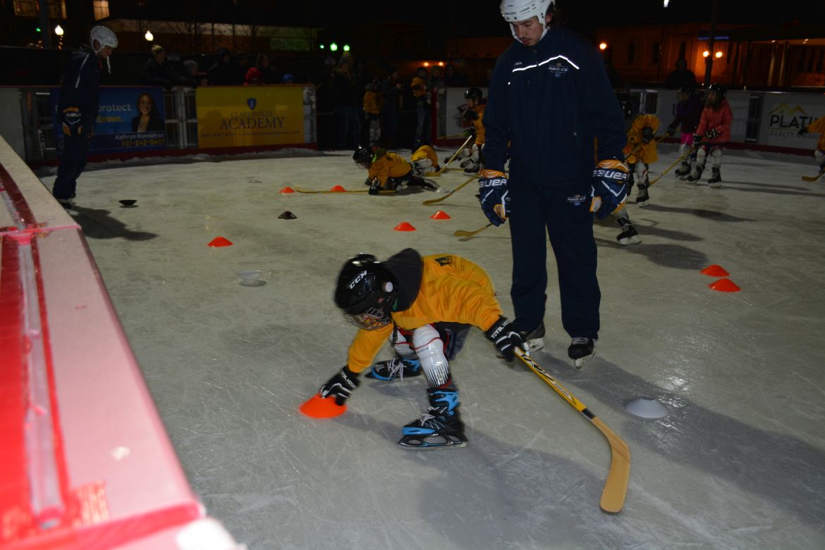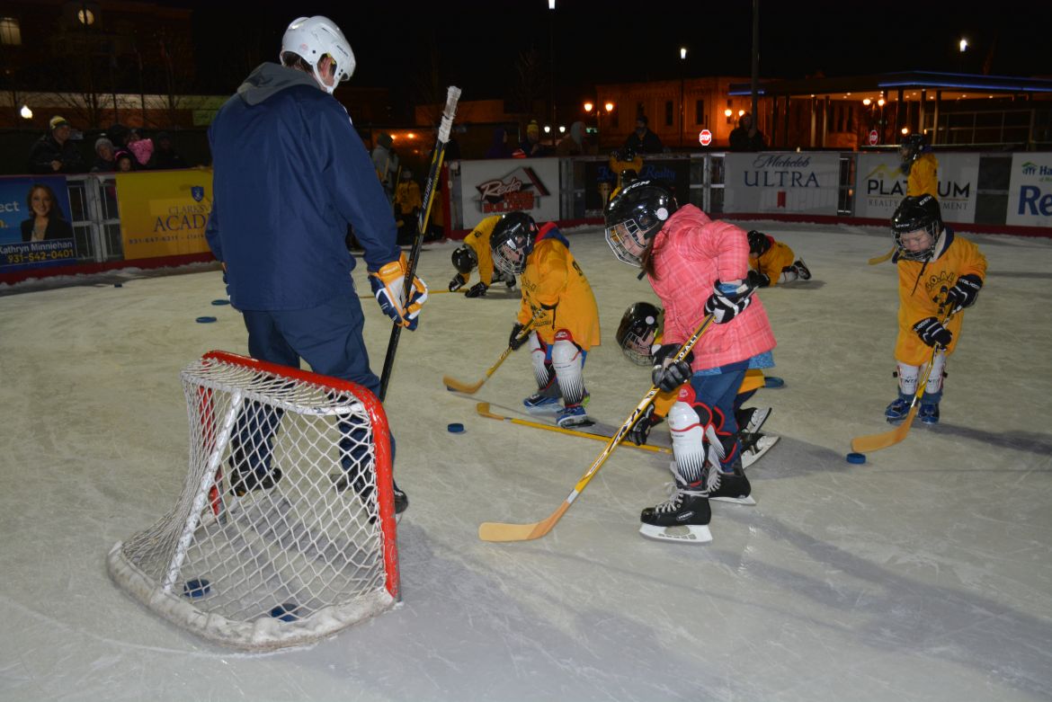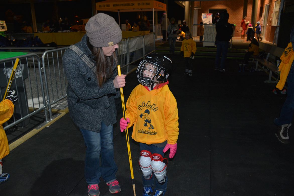 CLARKSVILLE, Tenn. (CLARKSVILLENOW) – On Friday, January 5, members from the Predators Team Get Out And Learn (G.O.A.L) Program came to the Downtown Commons Outdoor Ice Skating Rink to teach children ages four to eight-years-old some hockey basics.