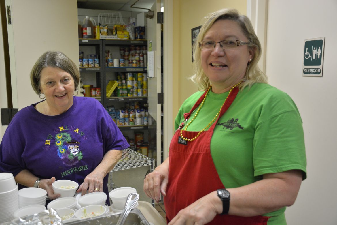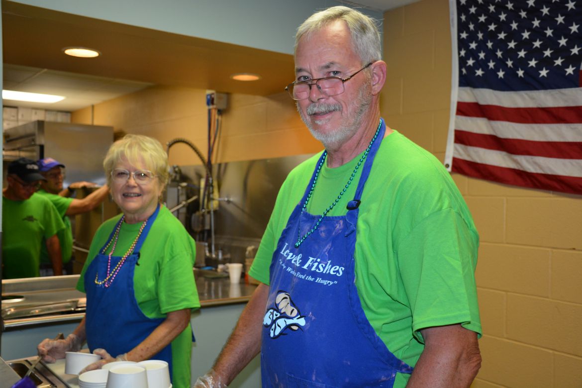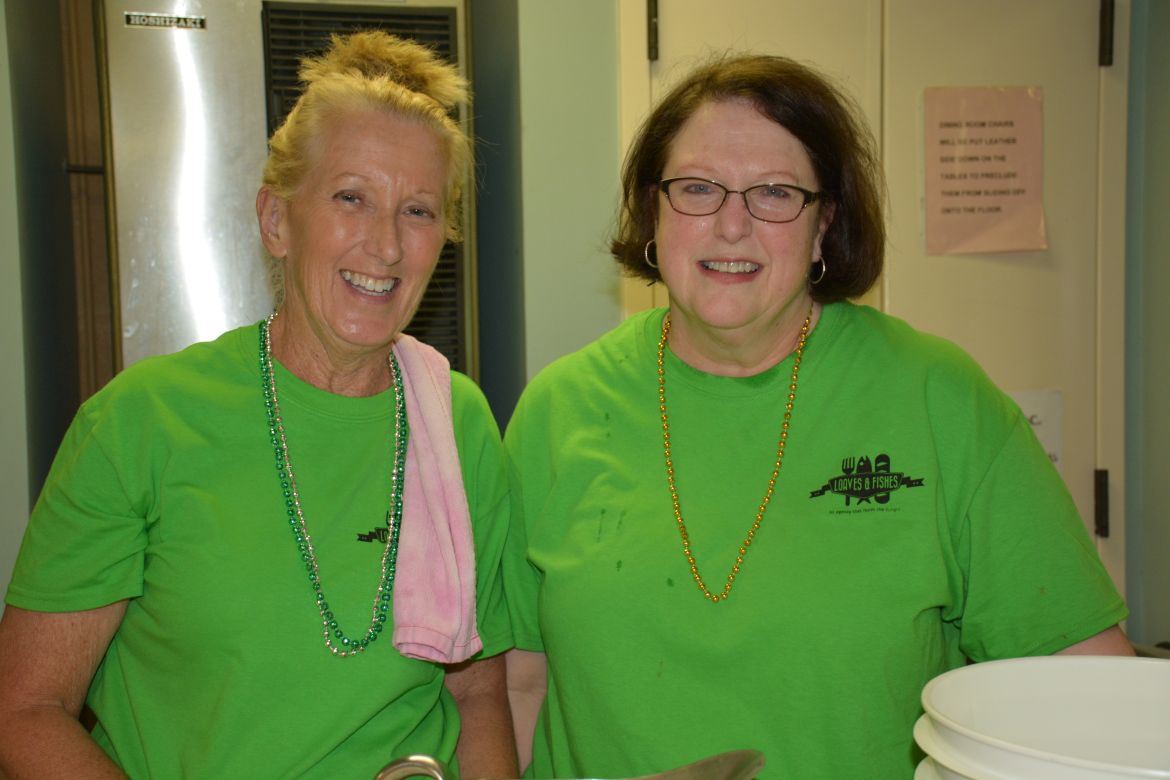 Volunteers served a meal of chicken and sausage gumbo, slaw, roll, praline and a drink with carry-out service also available. Loaves and Fishes operates a soup kitchen to feed the hungry in Clarksville-Montgomery County providing meals Monday through Saturday.