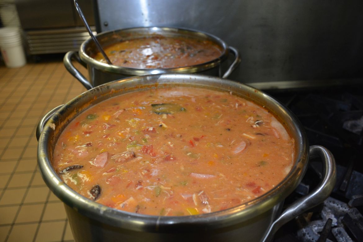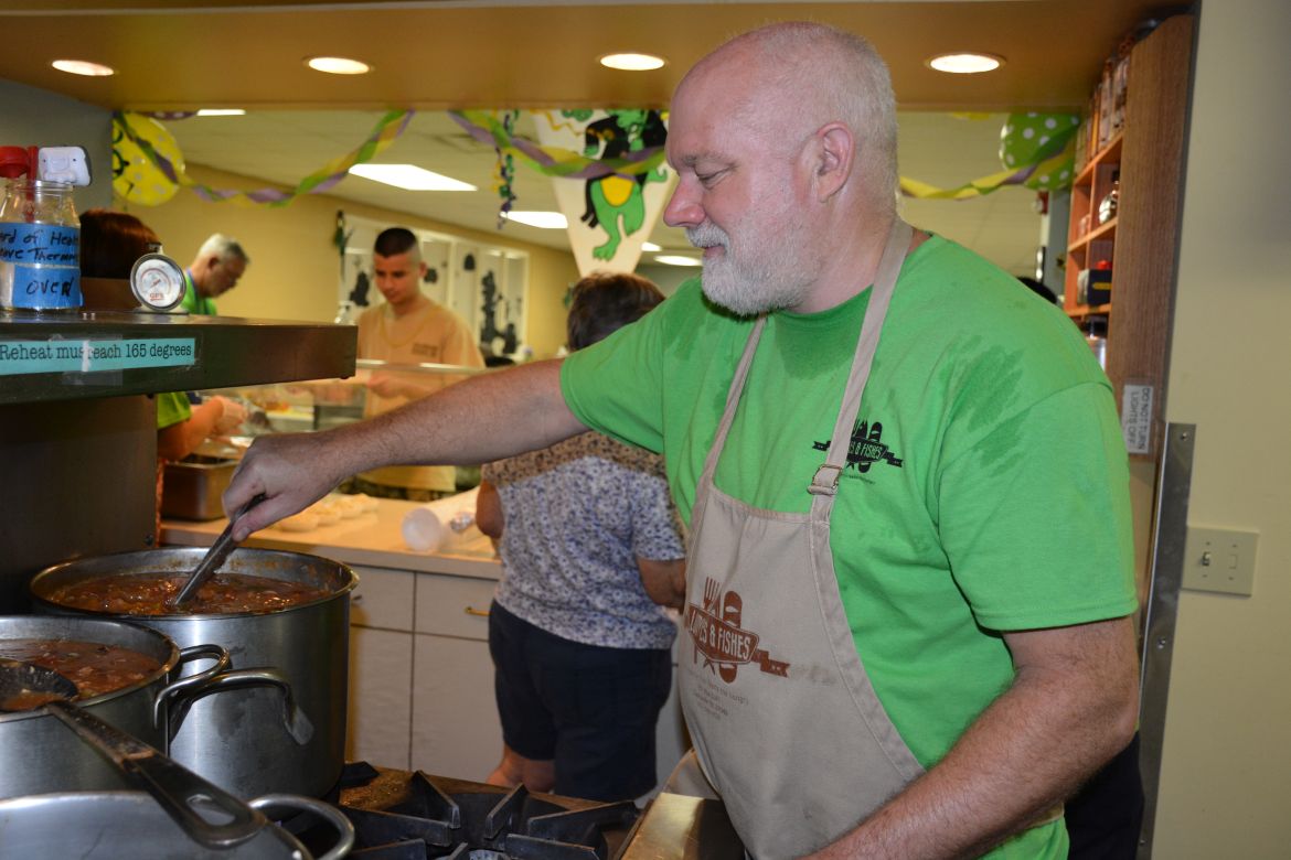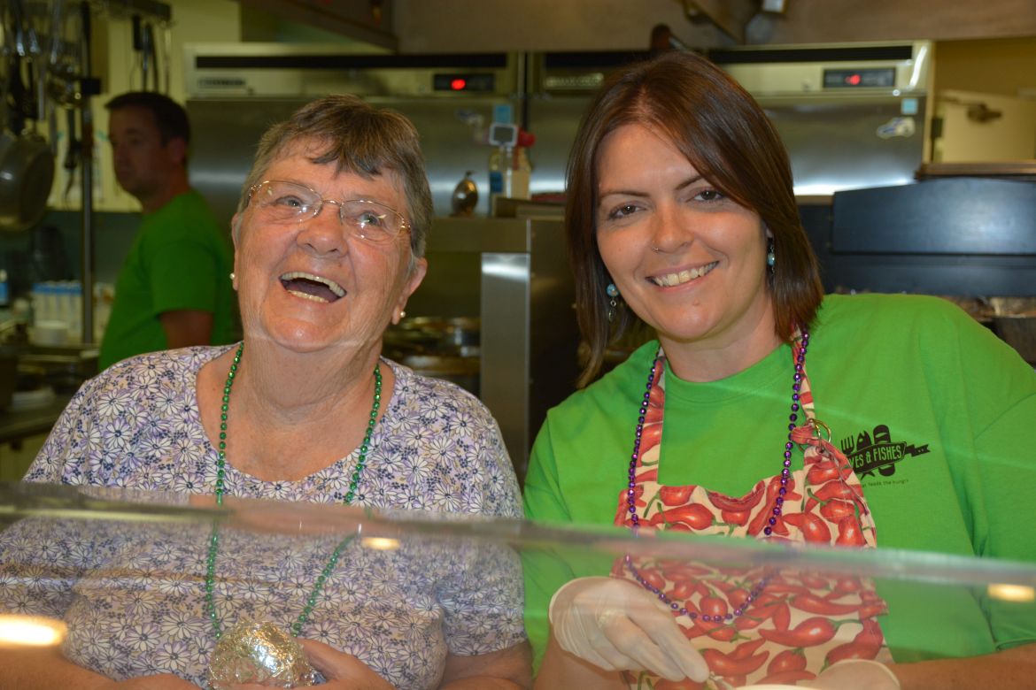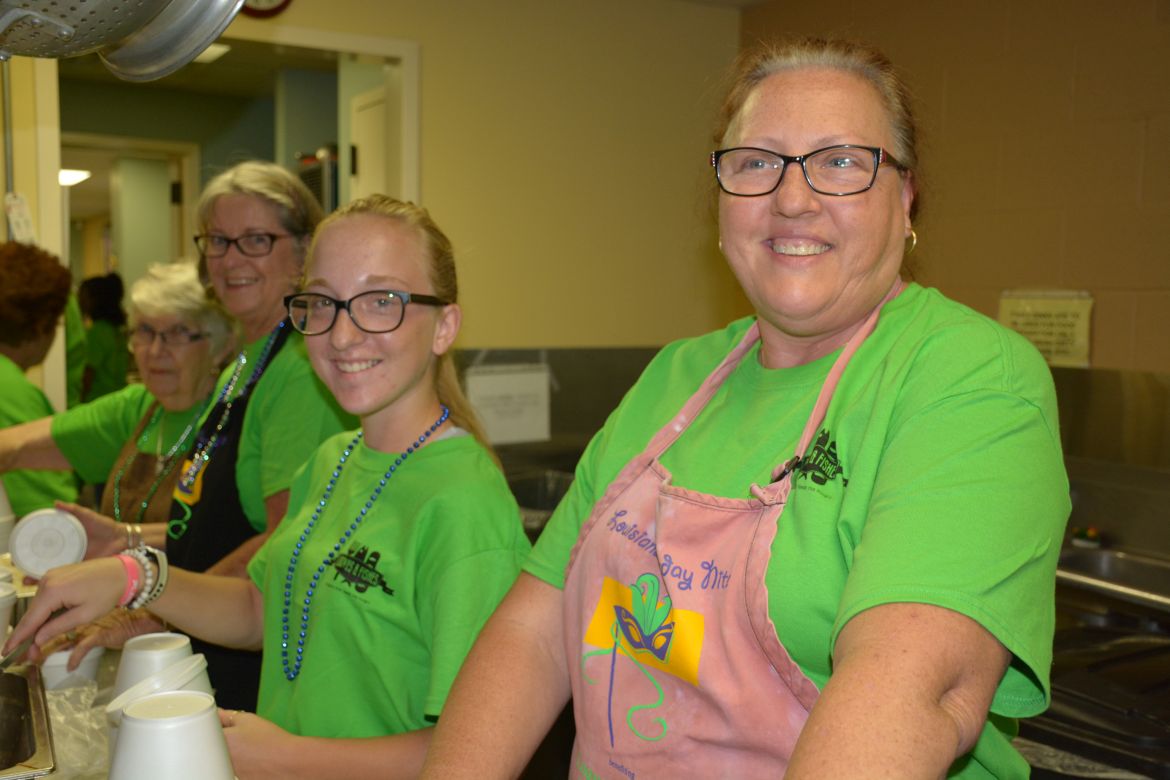 Volunteers served a meal of chicken and sausage gumbo, slaw, roll, praline and a drink with carry-out service also available. Loaves and Fishes operates a soup kitchen to feed the hungry in Clarksville-Montgomery County providing meals Monday through Saturday.
