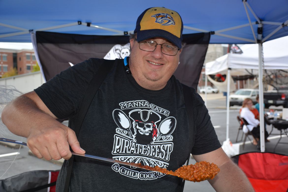 CLARKSVILLE, Tenn. – (CLARKSVILLENOW) The sixth Annual Manna Cafe Pirate Fest and Chili Cook-Off took place Saturday in the parking lot of First Baptist Church downtown. There was live music, costume contests, a kid’s zone and of course all-you-can-eat chili.
