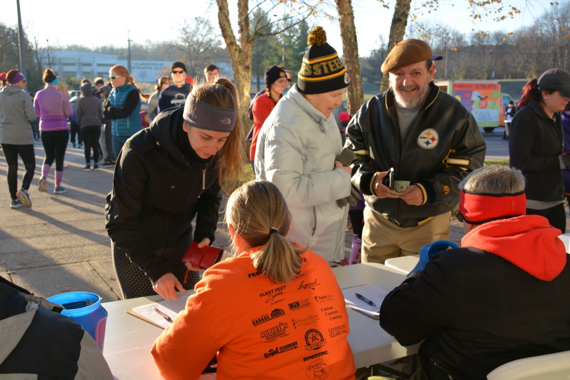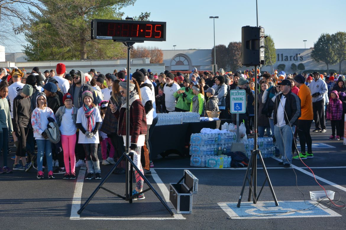 CLARKSVILLE, Tenn. – (CLARKSVILLENOW) Over 520 runners and walkers turned out on a cold Thanksgiving morning to show their support for Manna Cafe Ministries and their annual Pass the Turkey 5K run. With the support of the Clarksville Running Club (CRC), the event raised $3,535 in cash for Manna Cafe. Donations of food, coats and other winter clothing were also collected at the run held in the parking lot of Governors Square Mall.