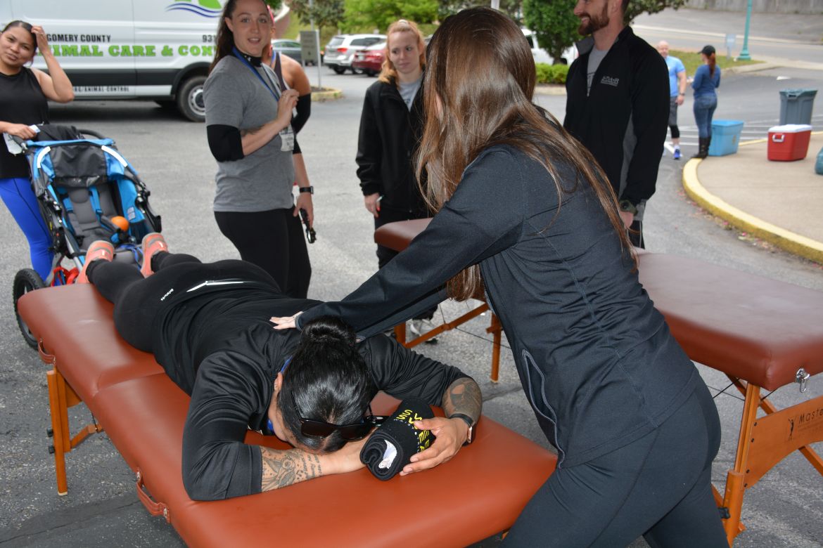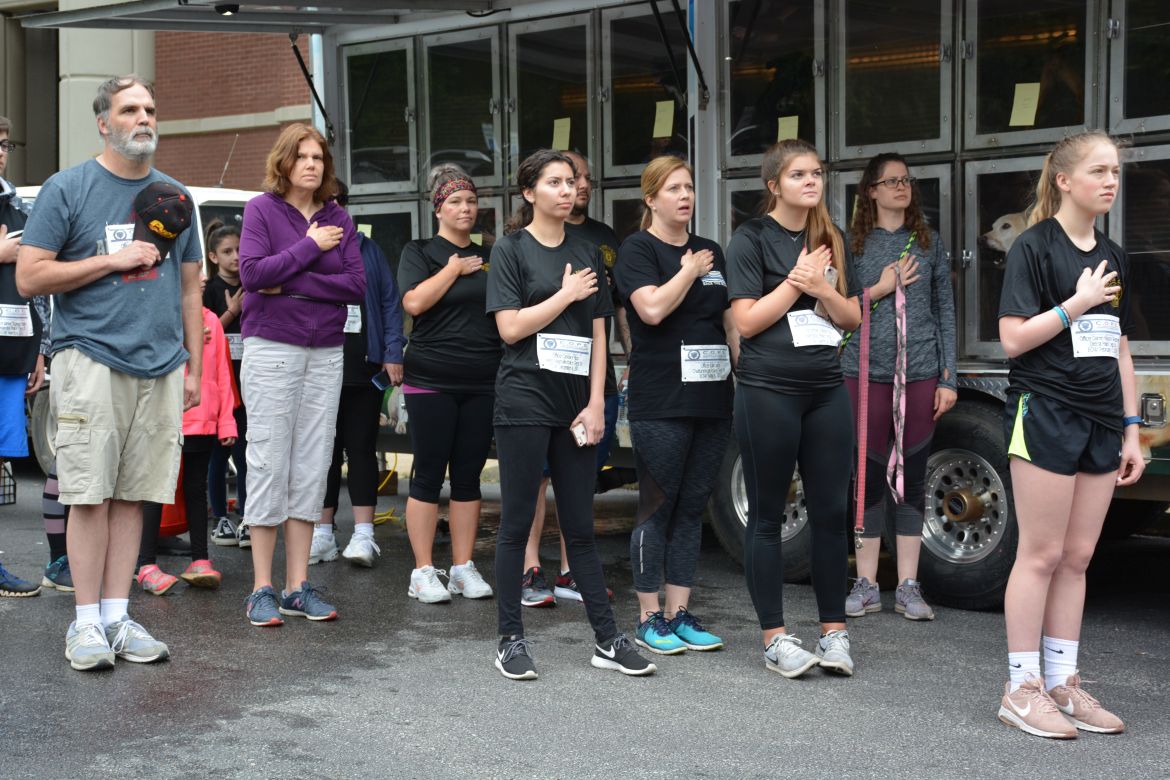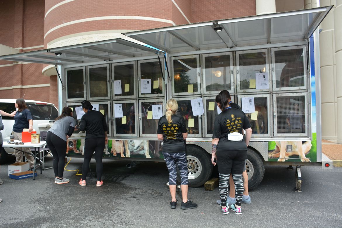 This year Montgomery County Animal Care & Control were on hand with 11 dogs that are up for adoption. A walker was allowed to take one of the dogs they had chosen with them to walk part or all of the course.