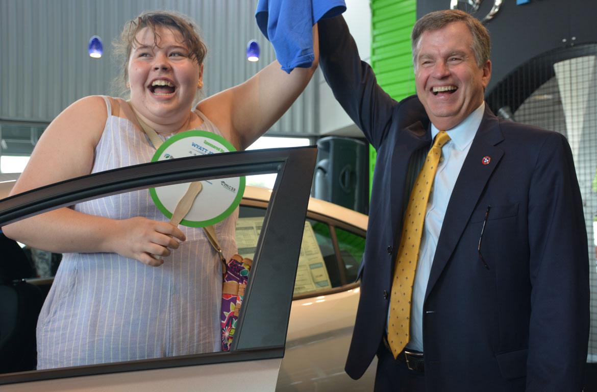 CLARKSVILLE, Tenn. – (CLARKSVILLENOW) Northwest High School senior Emily Mummaw was all smiles Saturday evening. Mummaw won a car at the 11th Annual Pass and Go Event at Wyatt Johnson Automotive Group’s Mazda dealership.