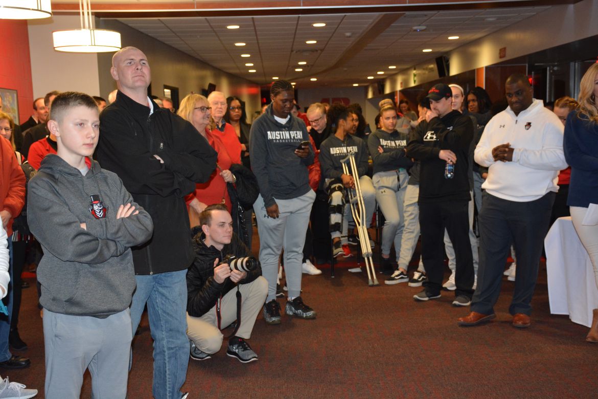 Also on hand were the coaching staff for both teams, APSU Athletic Director Gerald Harrison, and APSU President Alisa White. The Govs Pep Band, Spirit Squad, and APSU Cheerleaders helped add excitement to the evening.