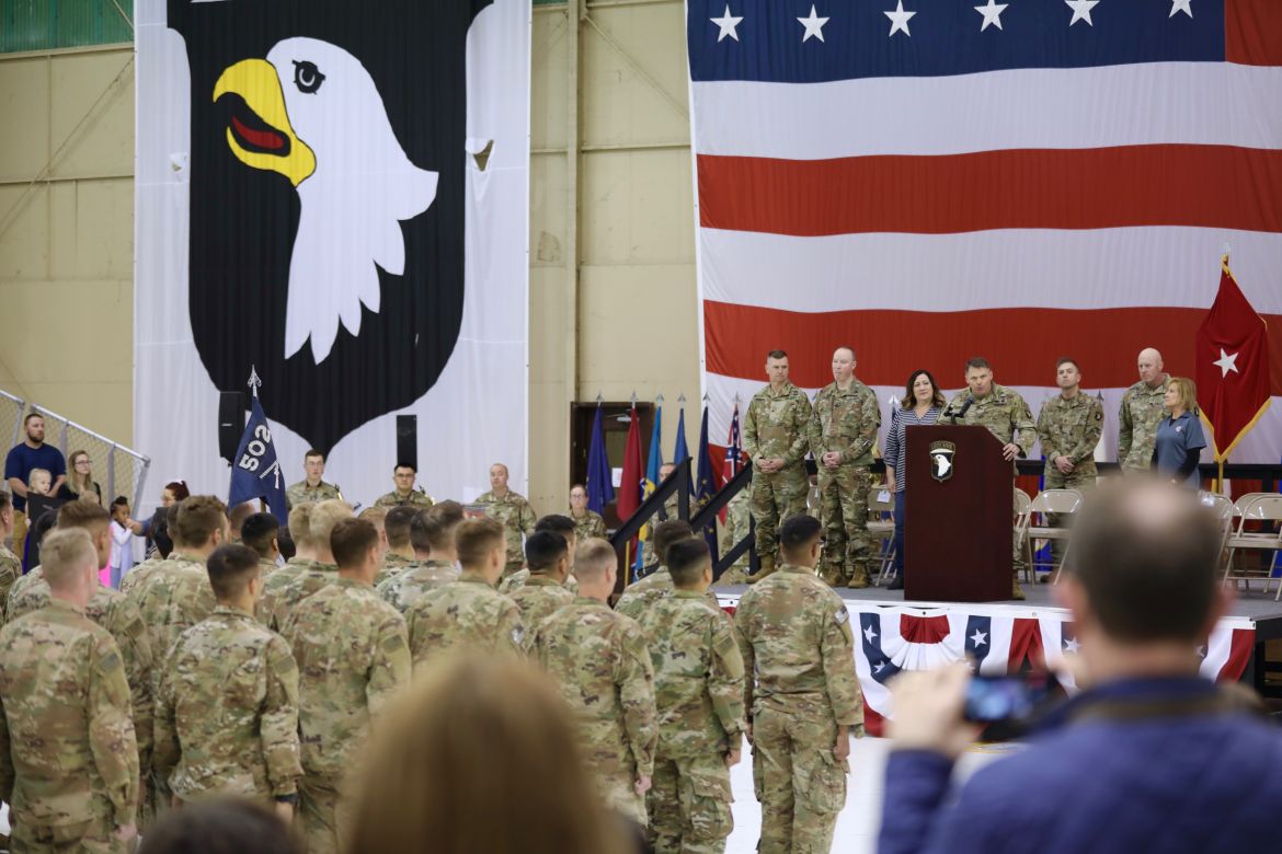 FORT CAMPBELL, Ky. (CLARKSVILLENOW) – More than 100 soldiers assigned to 1st Battalion, 502nd Infantry Regiment, 2nd Brigade Combat Team, 101st Airborne Division (Air Assault) returned Sunday, March 24 to Fort Campbell from their deployment to Cameroon.