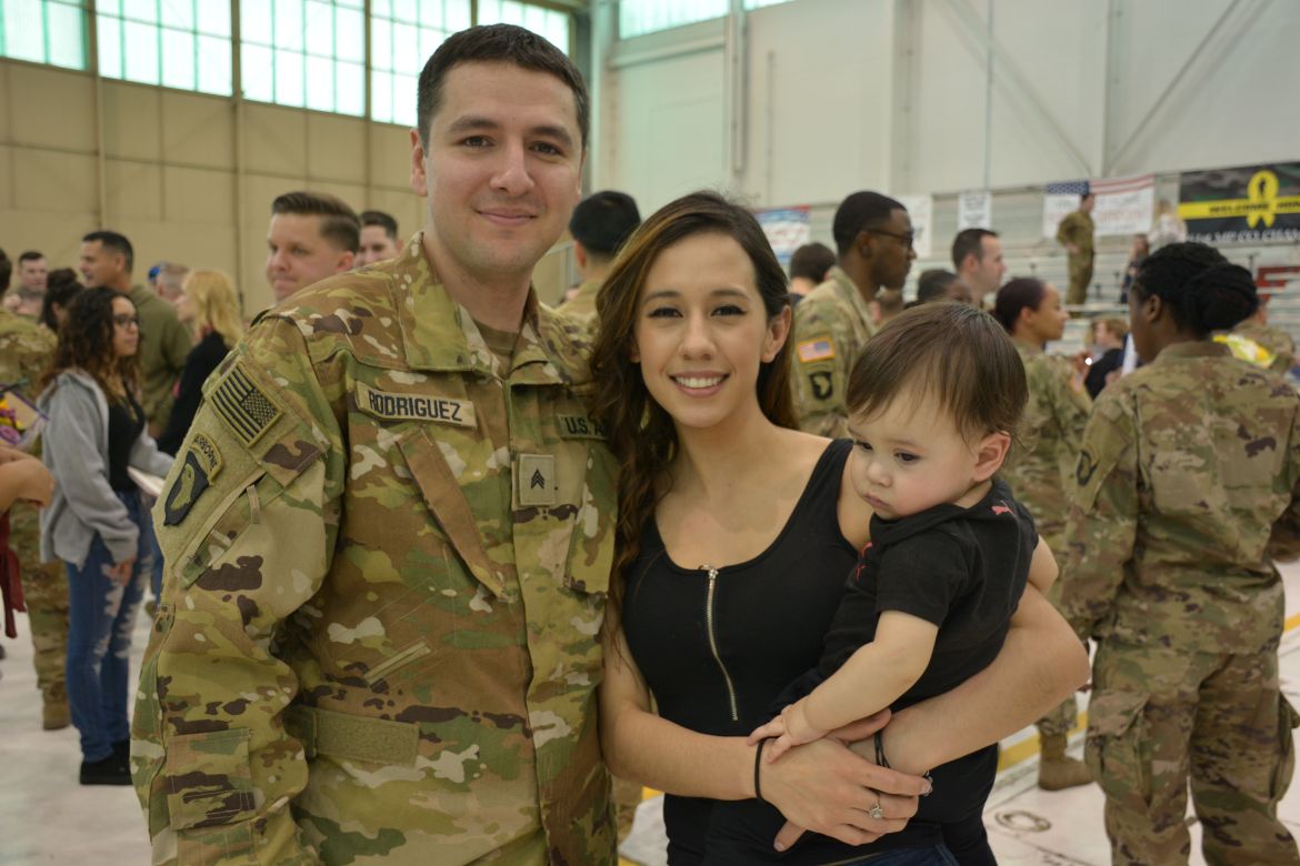 The “Task Force Destiny” soldiers were met by hundreds of family members, friends and comrades with cheers and applause as they marched into the hangar for the Welcome Home Ceremony. Deputy Commanding General of the 101st, Brigadier General Richard Johnson, who just recently returned from Afghanistan greeted the troops.