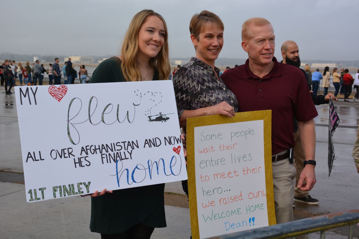 Fort Campbell, KY. – (CLARKSVILLENOW) Along with aircraft, excitement was also in the air at Campbell Army Airfield Tuesday as 176 soldiers with the 101st Combat Aviation Brigade stepped off the plane after their nine-month deployment to Afghanistan.