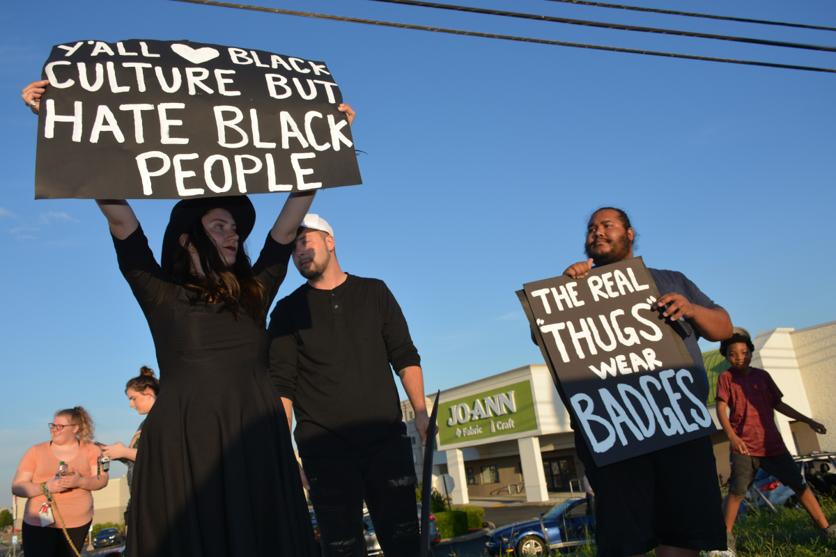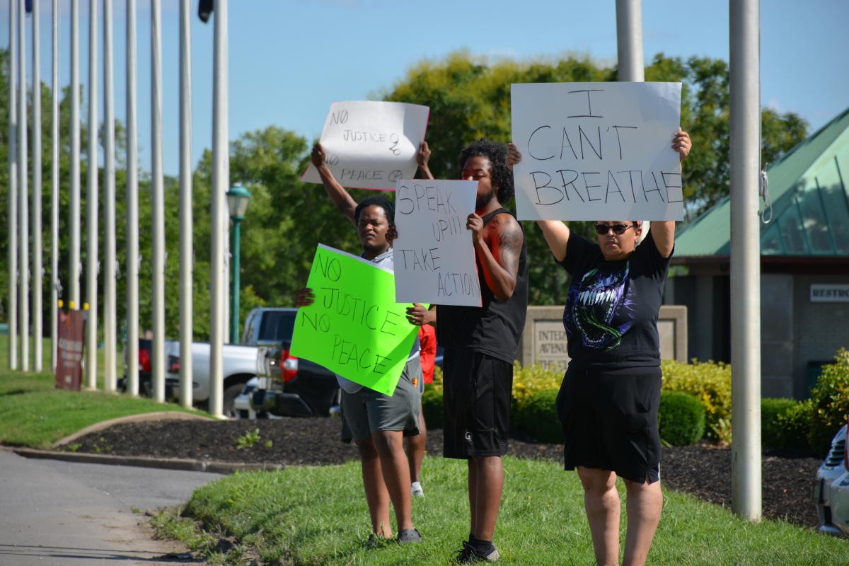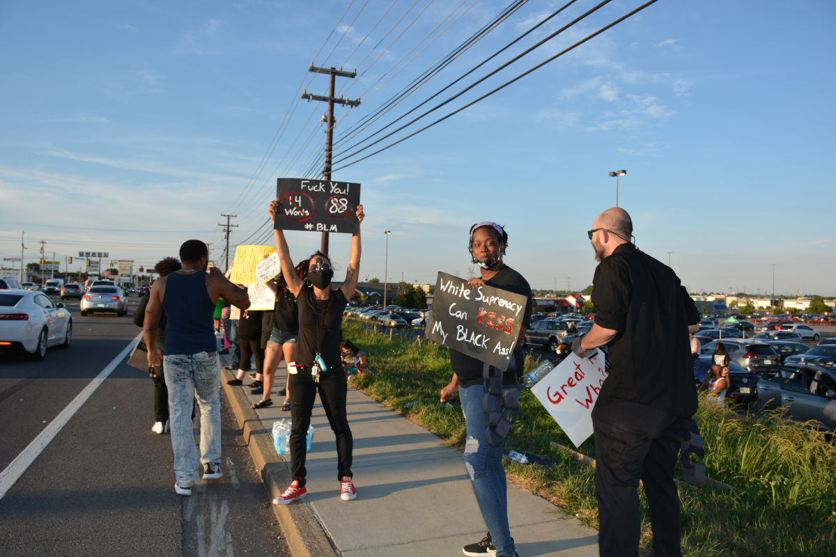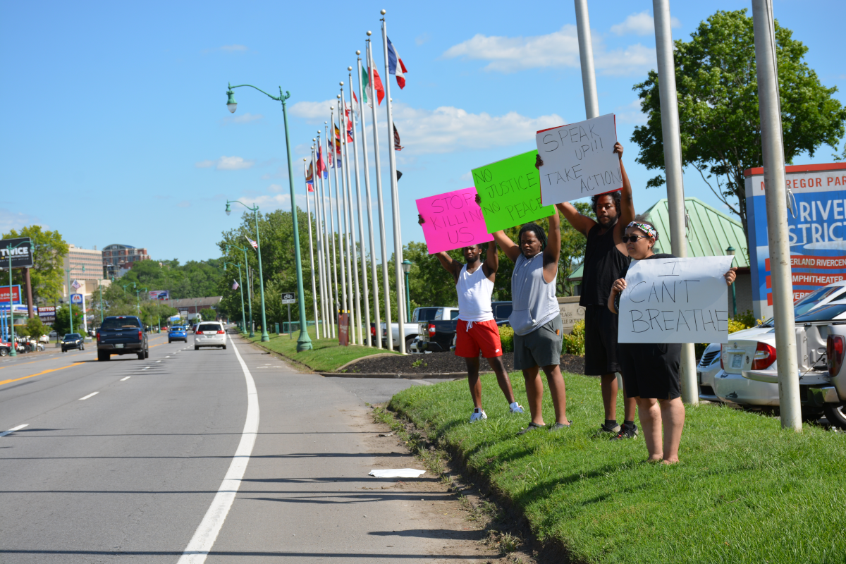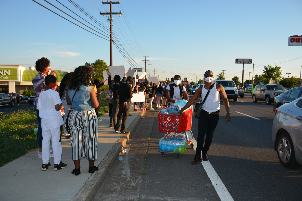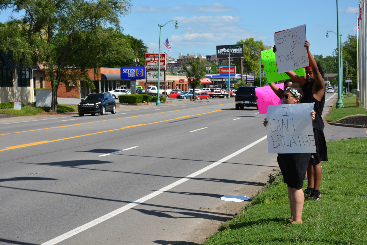 CLARKSVILLE, Tenn (CLARKSVILLENOW) – Protesters gathered on Wilma Rudolph Boulevard on Saturday, May 30, 2020, in front of Governor’s Square Mall as part of a national response to the death of George Floyd in Minneapolis, Minnesota, who died while in police custody.