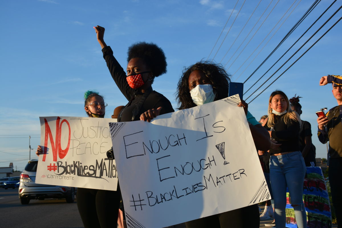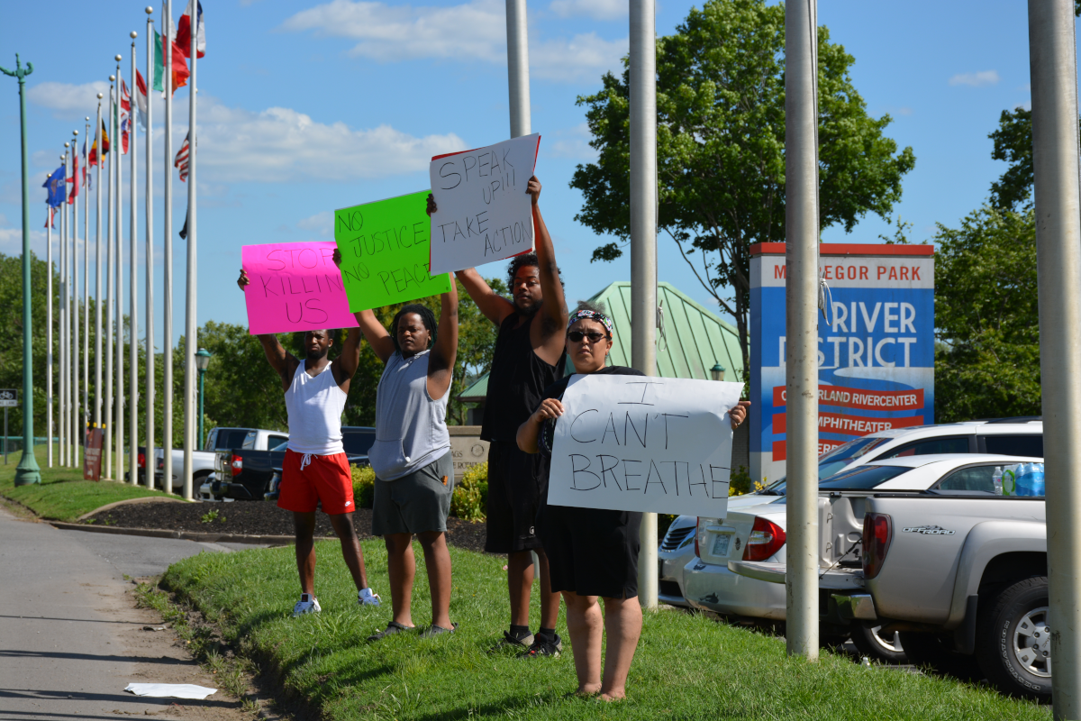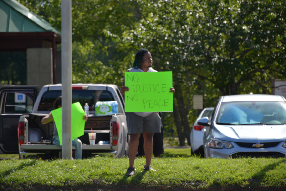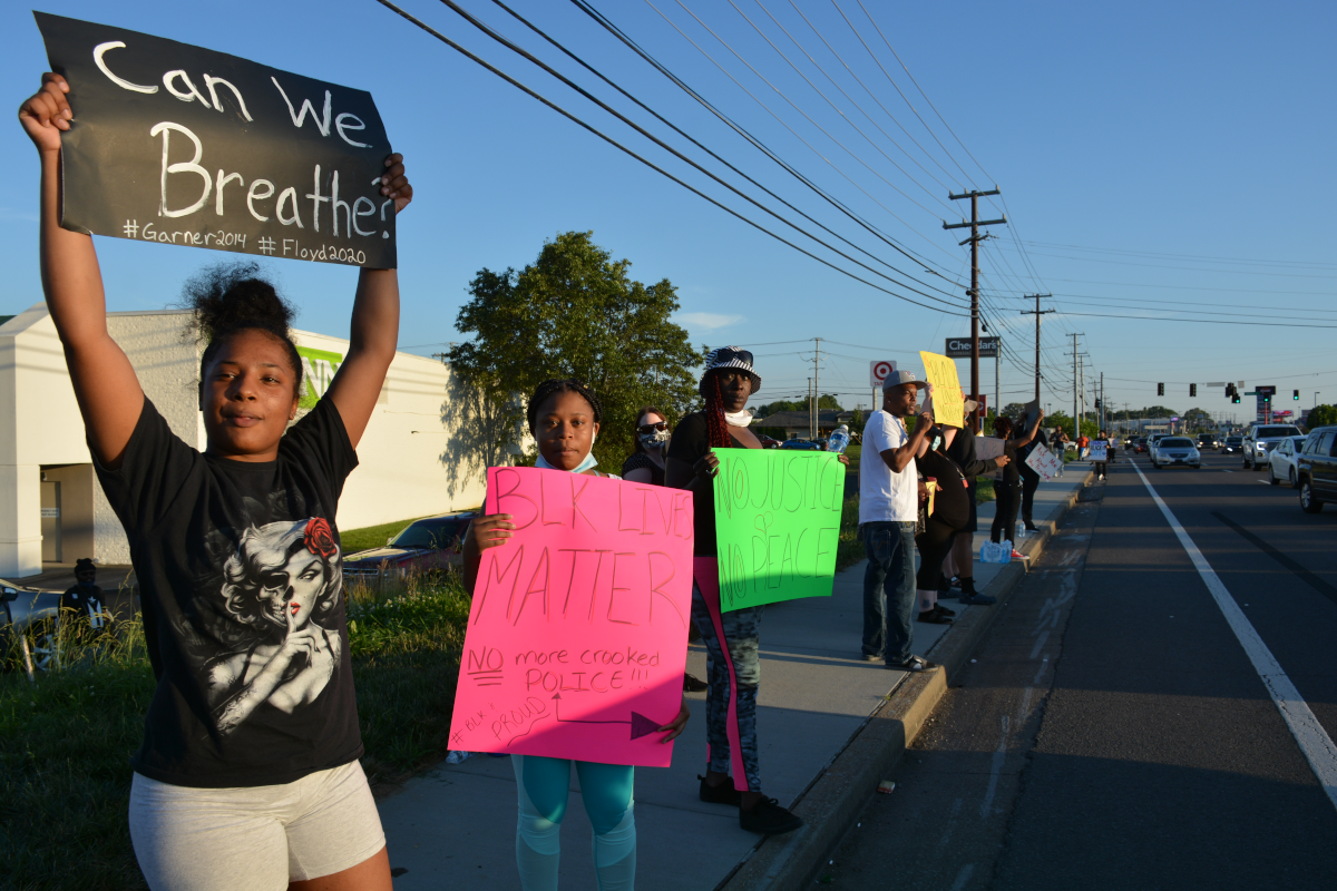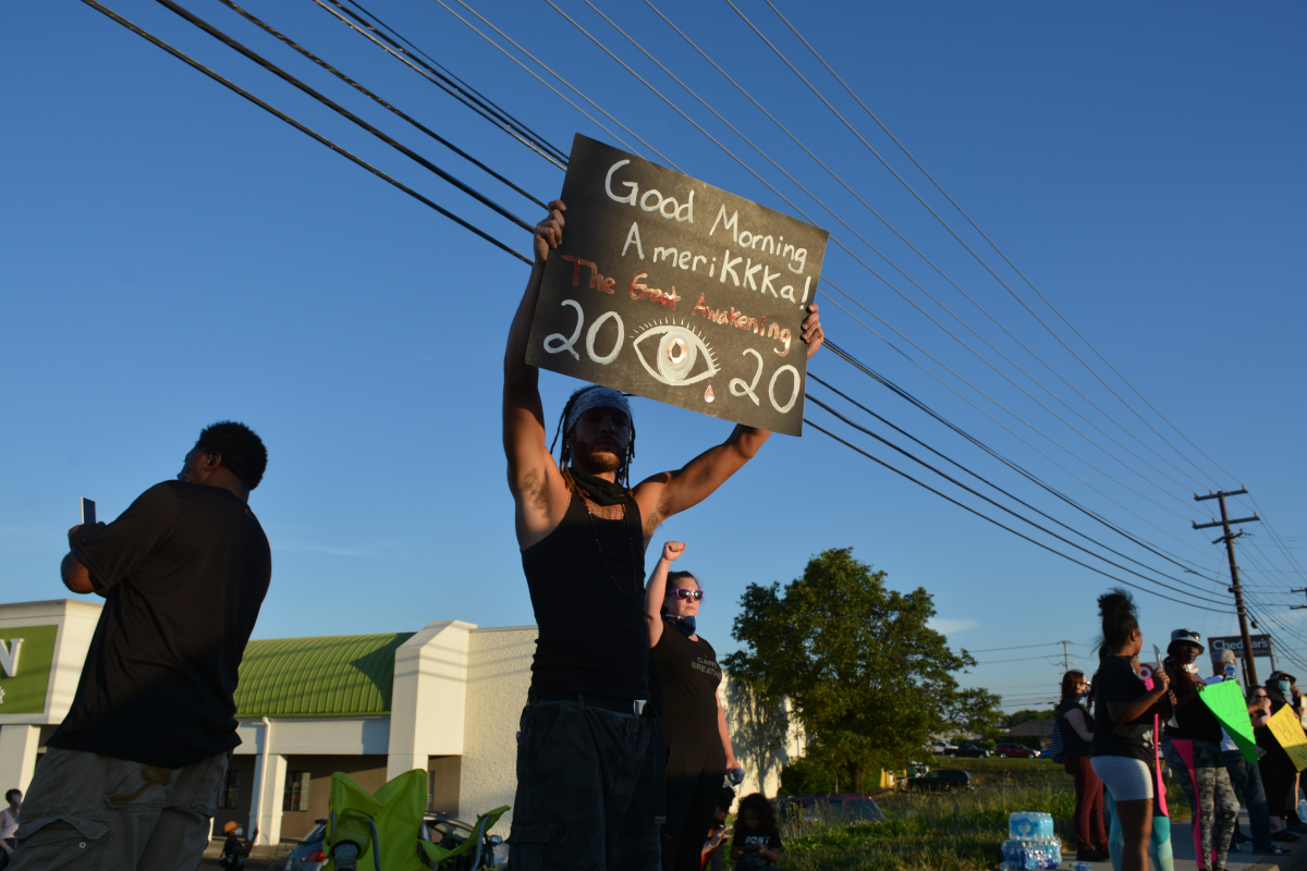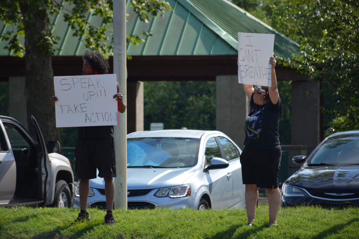 CLARKSVILLE, Tenn (CLARKSVILLENOW) – Protesters gathered on Wilma Rudolph Boulevard on Saturday, May 30, 2020, in front of Governor’s Square Mall as part of a national response to the death of George Floyd in Minneapolis, Minnesota, who died while in police custody.