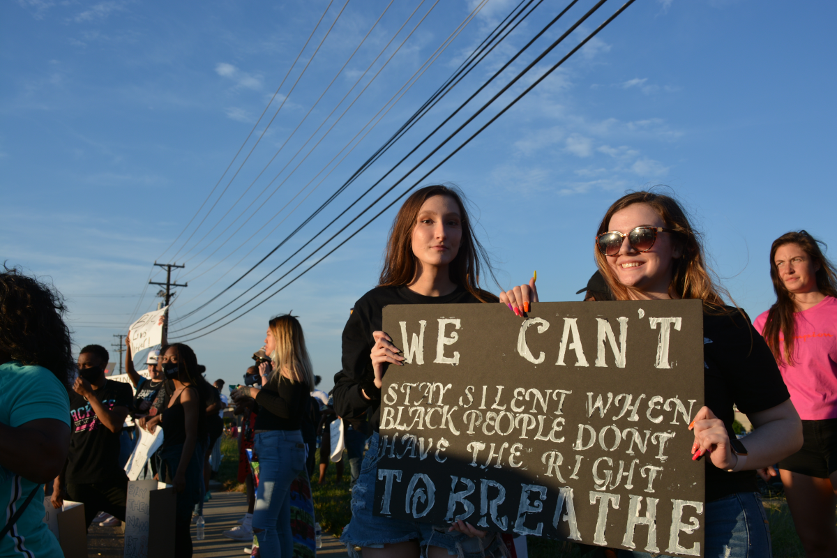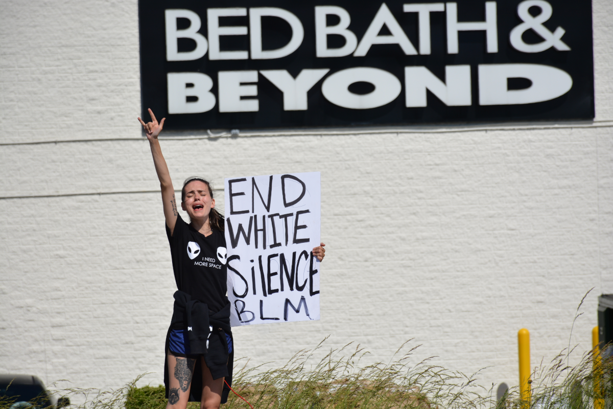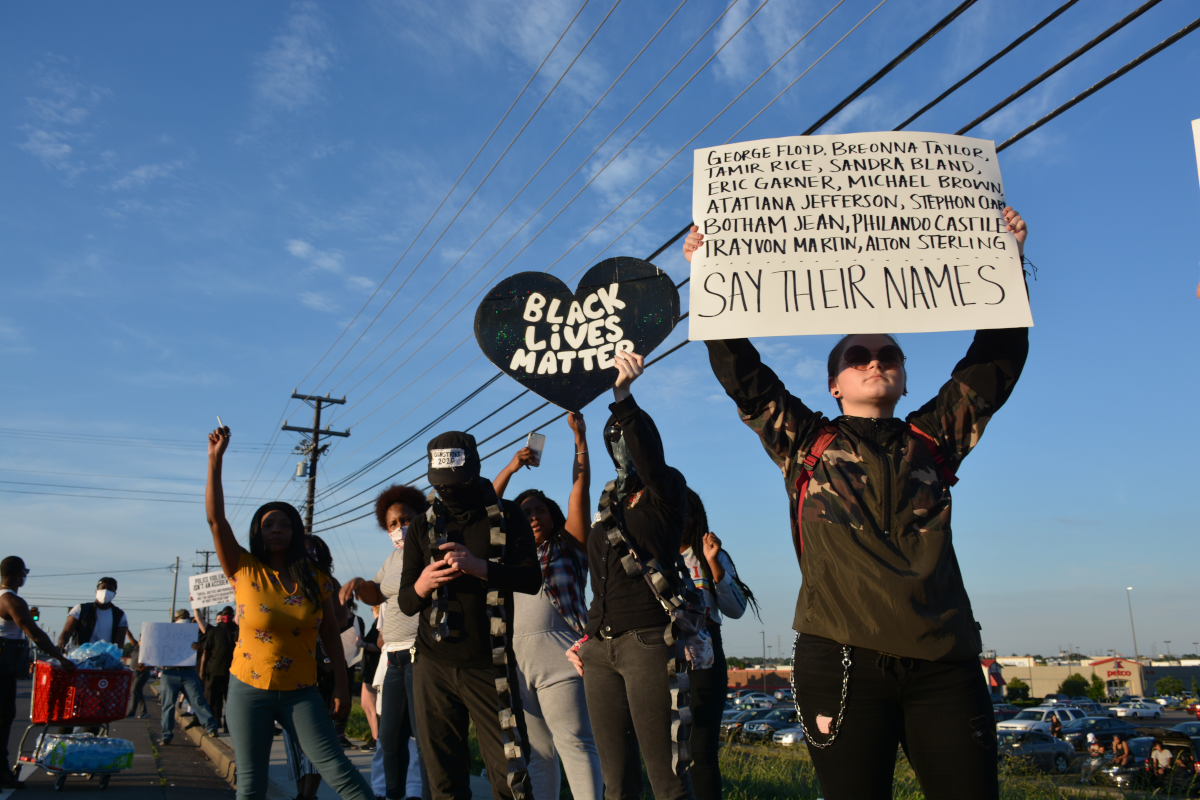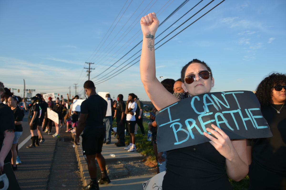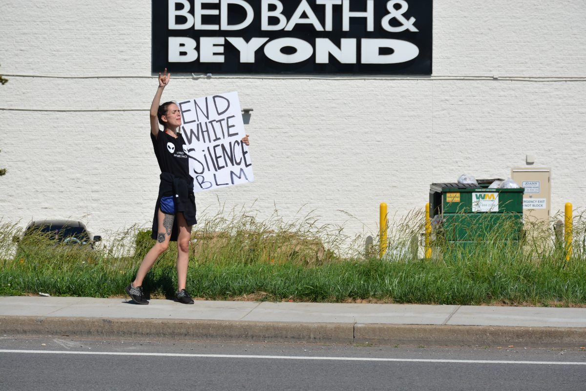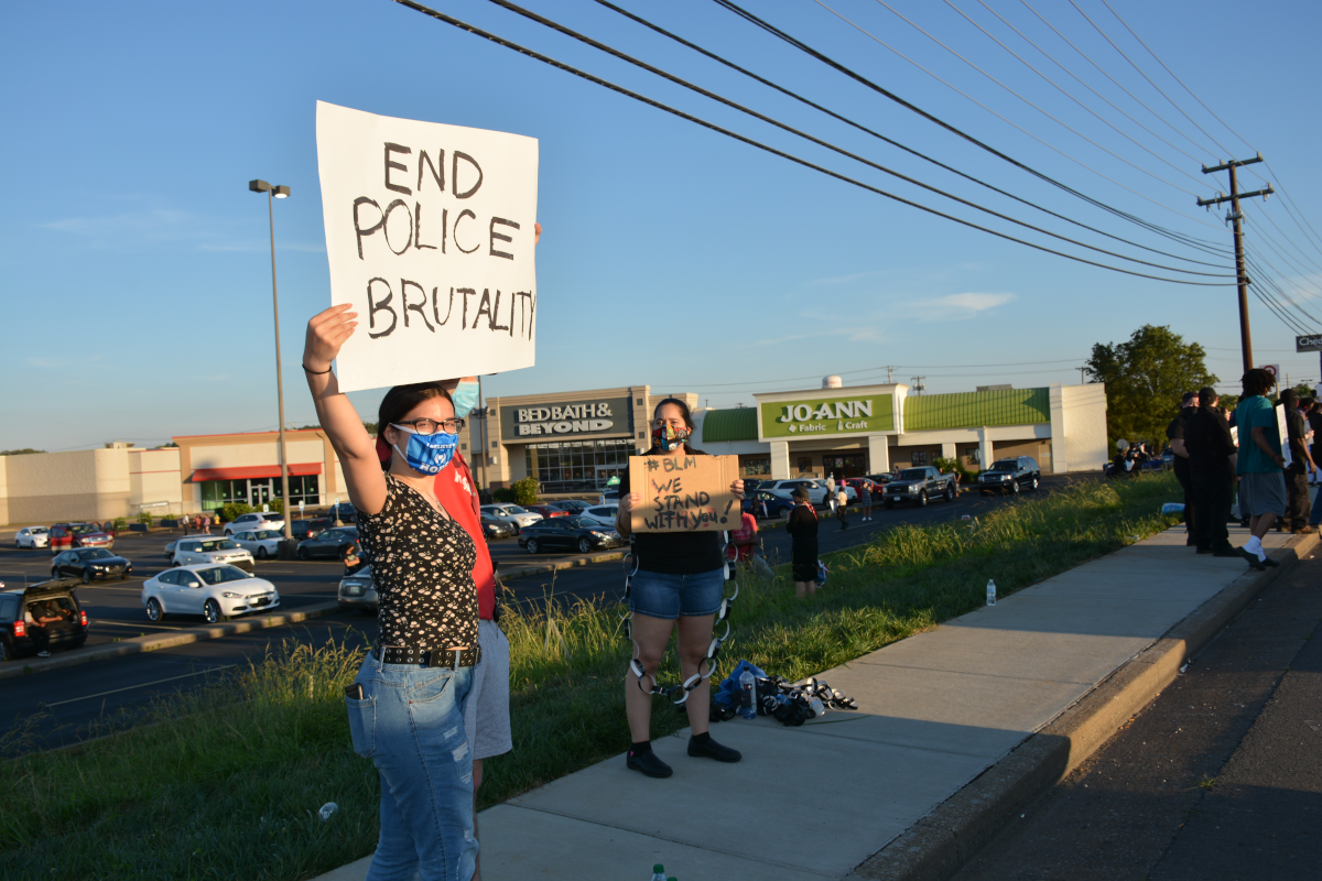 CLARKSVILLE, Tenn (CLARKSVILLENOW) – Protesters gathered on Wilma Rudolph Boulevard on Saturday, May 30, 2020, in front of Governor’s Square Mall as part of a national response to the death of George Floyd in Minneapolis, Minnesota, who died while in police custody.