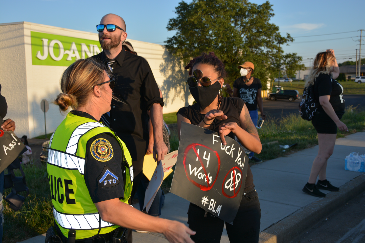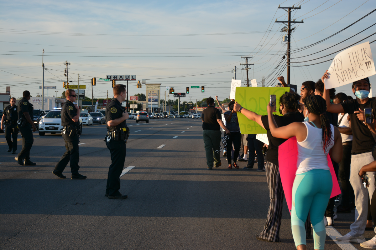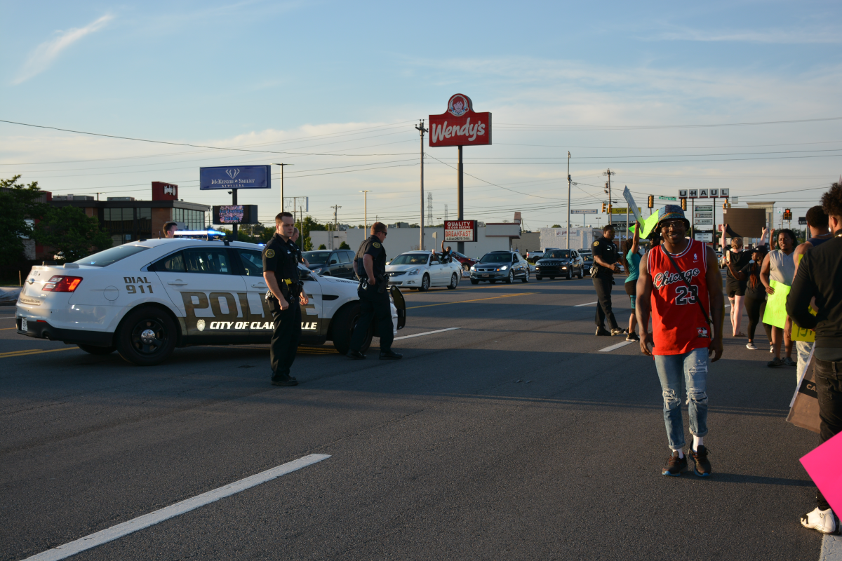 Clarksville Police officers arrived on the scene at approximately 7:10 p.m. to direct traffic and speak with demonstrators.