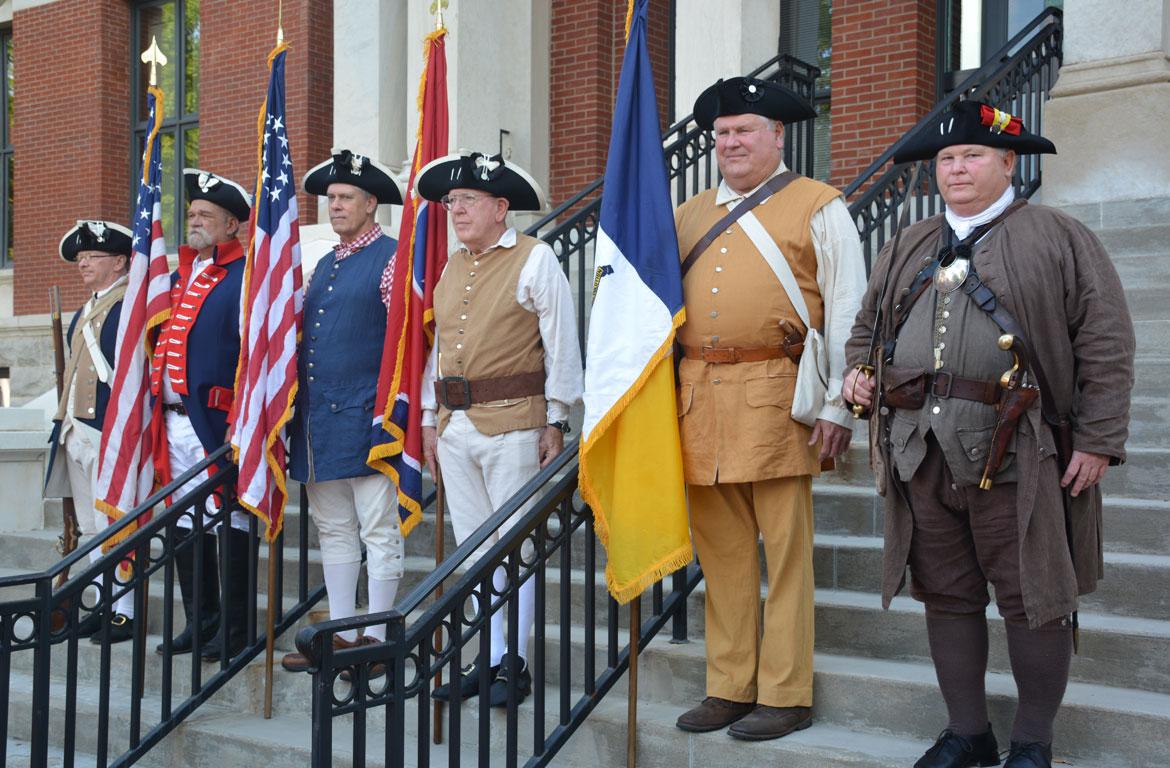 CLARKSVILLE, Tenn. – (CLARKSVILLENOW) Close to 200 people gathered at the steps of the historic Montgomery County Courthouse on the Fourth of July for the annual reading of the Declaration of Independence. Volunteers in Revolutionary War uniforms were on-hand to present the colors and they were joined by historians and others in period clothing and costumes.