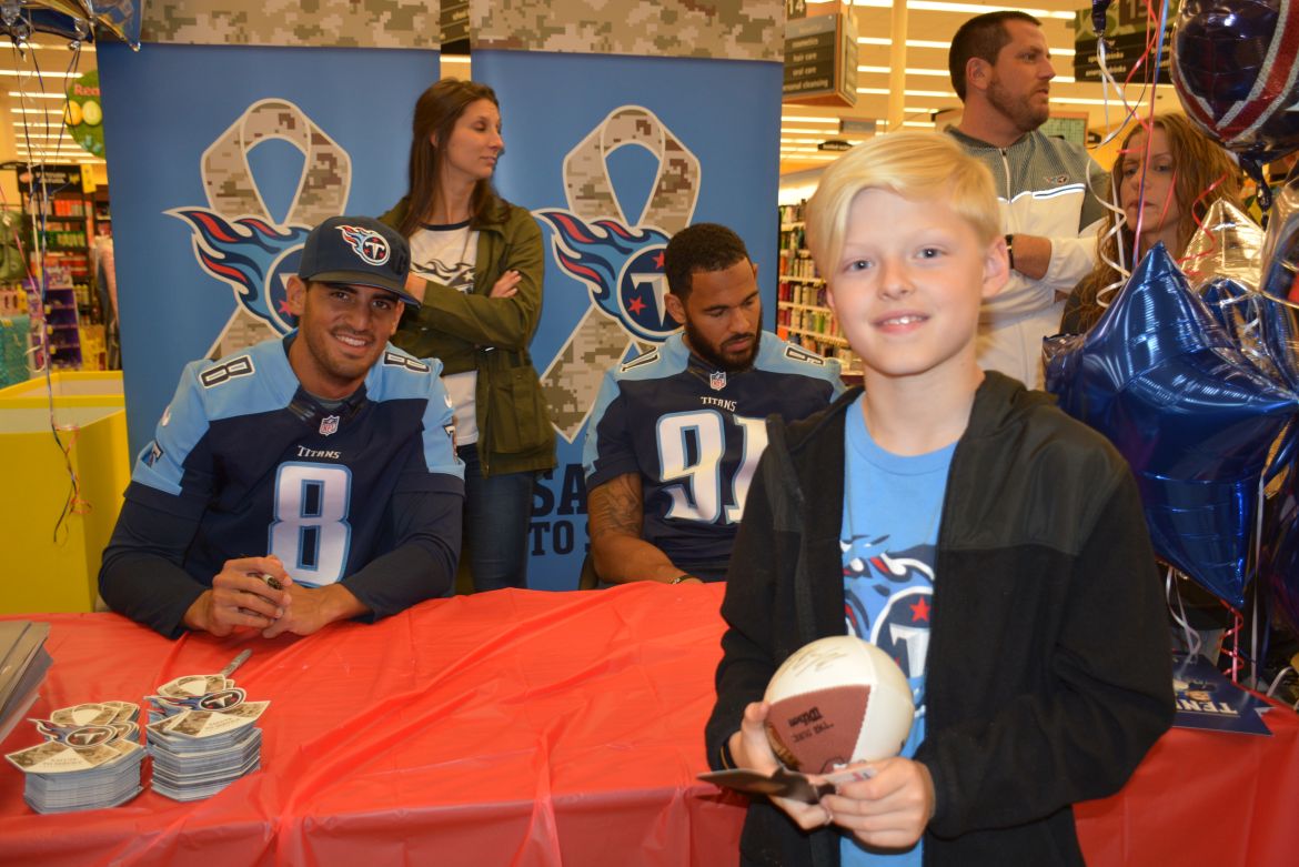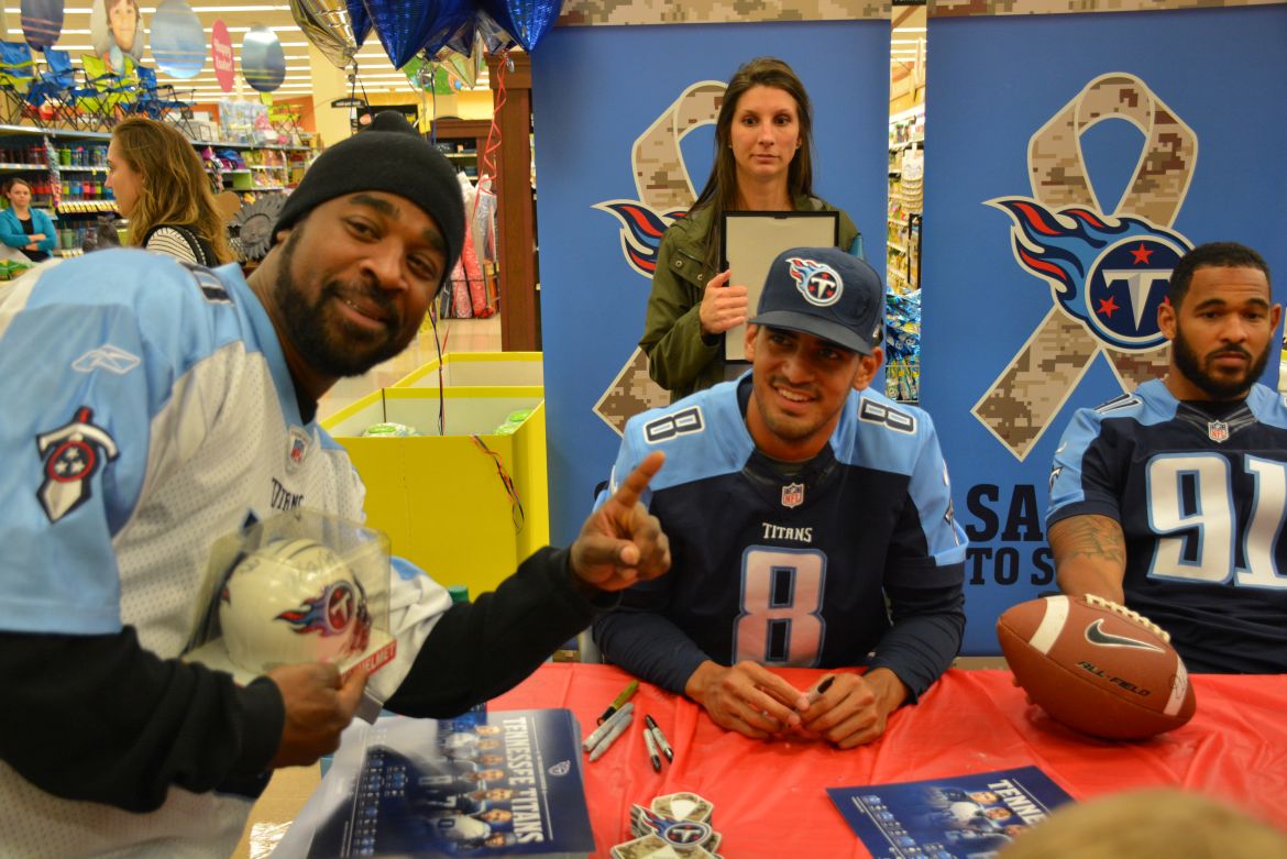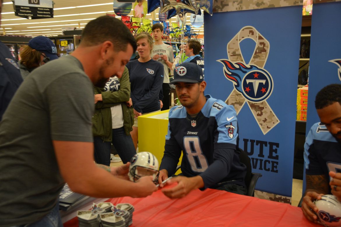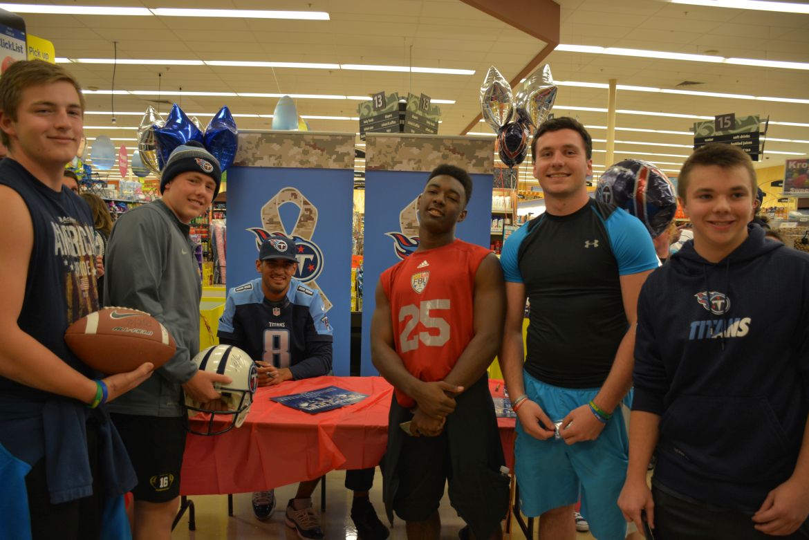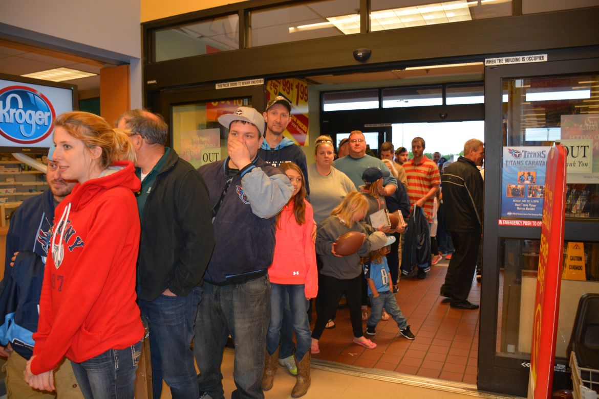 CLARKSVILLE, Tenn. (ESPN CLARKSVILLE) – Tennessee Titans fans met with players Marcus Mariota and Derrick Morgan at the Kroger on Lowe’s Drive on May 1,2017.