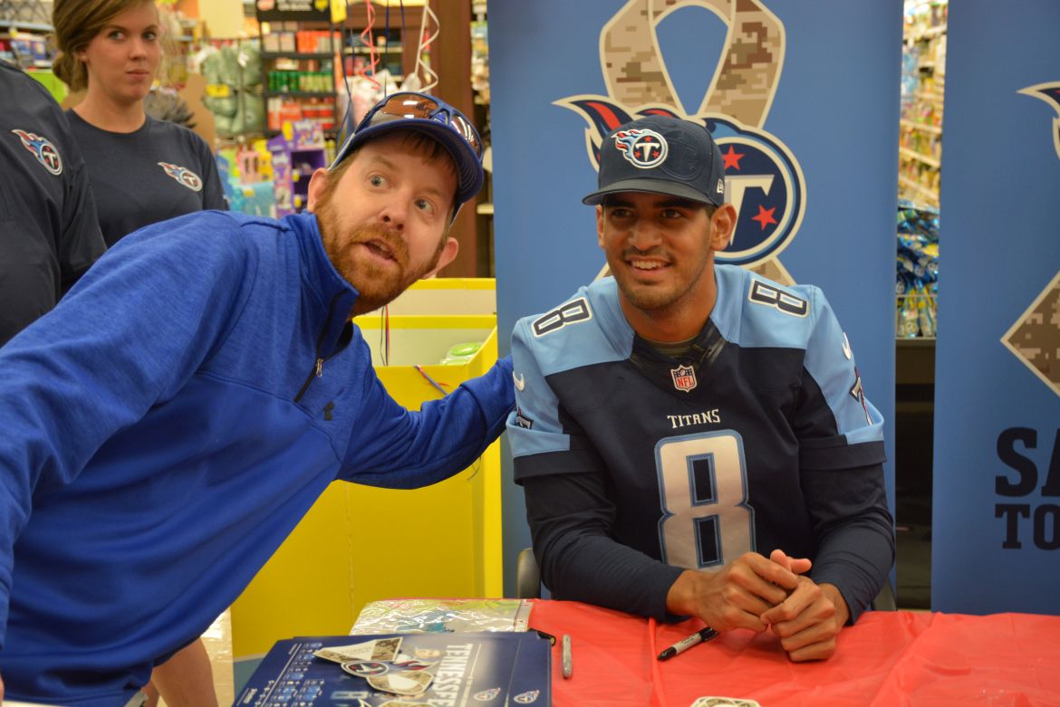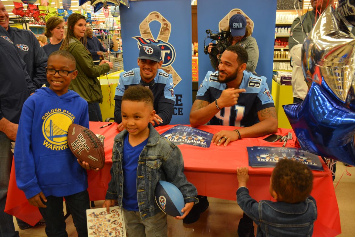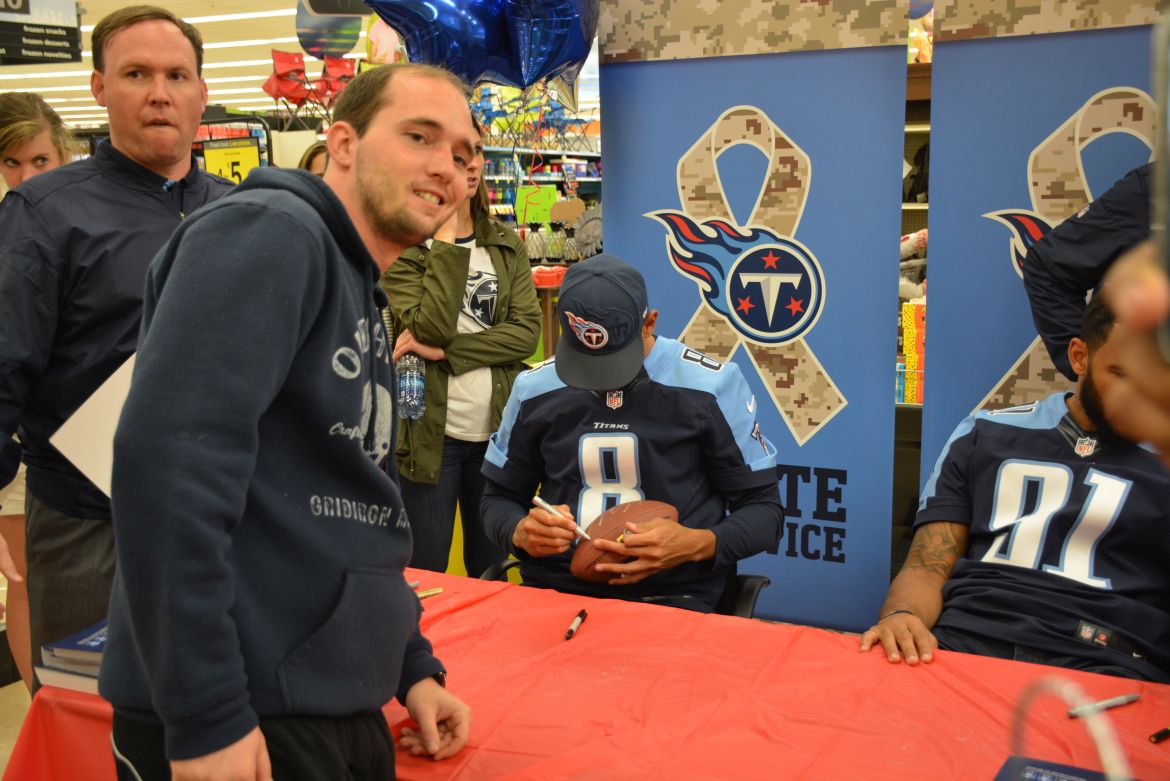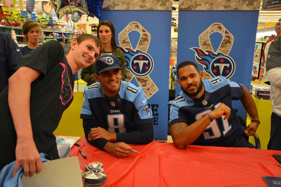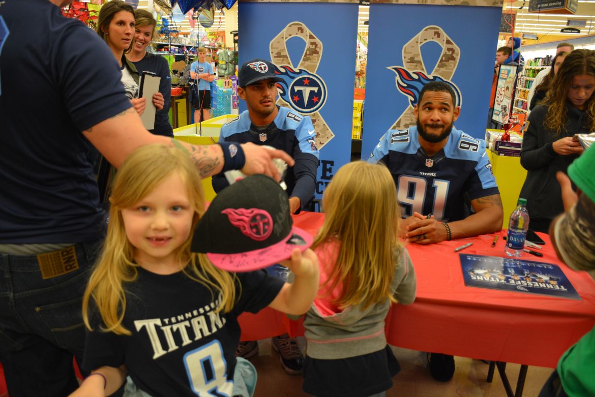 CLARKSVILLE, Tenn. (ESPN CLARKSVILLE) – Tennessee Titans fans met with players Marcus Mariota and Derrick Morgan at the Kroger on Lowe’s Drive on May 1,2017.