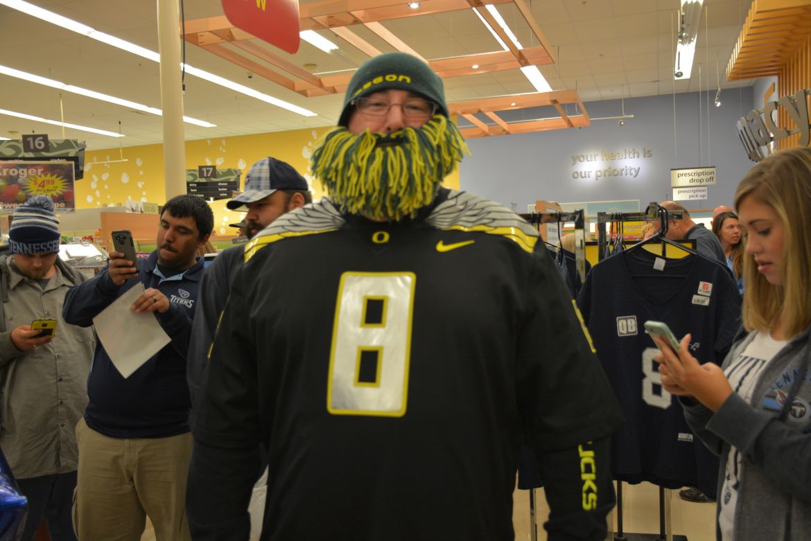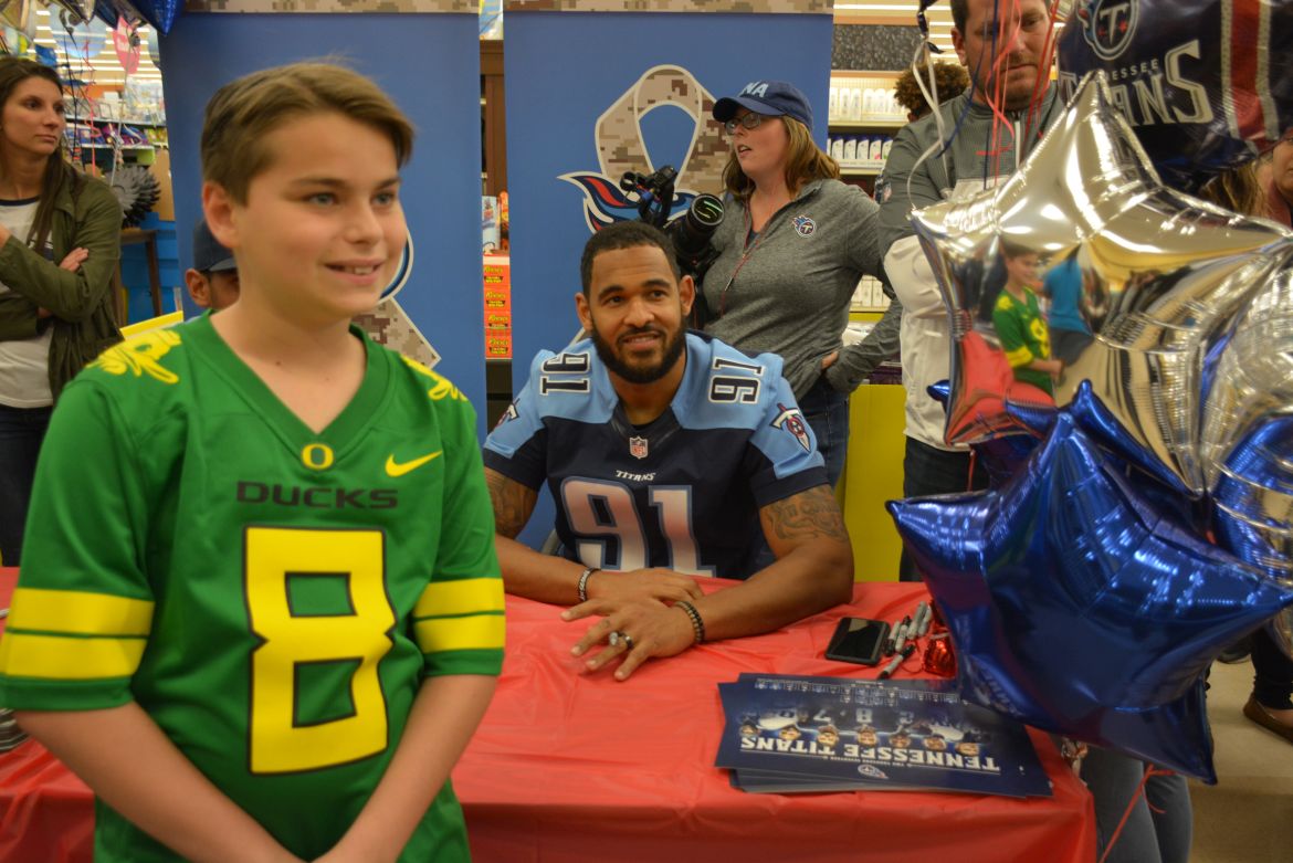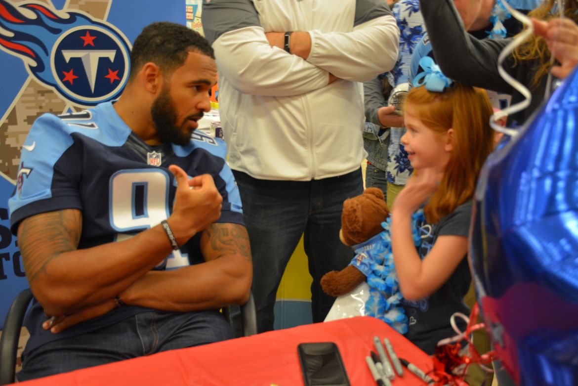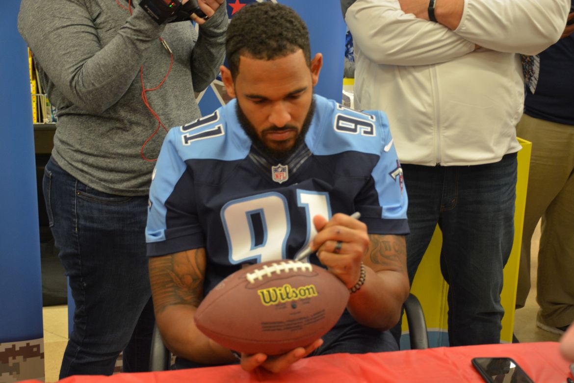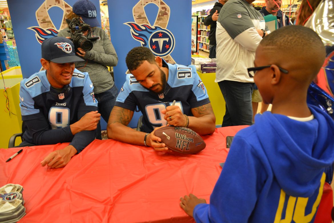 CLARKSVILLE, Tenn. (ESPN CLARKSVILLE) – Tennessee Titans fans met with players Marcus Mariota and Derrick Morgan at the Kroger on Lowe’s Drive on May 1,2017.