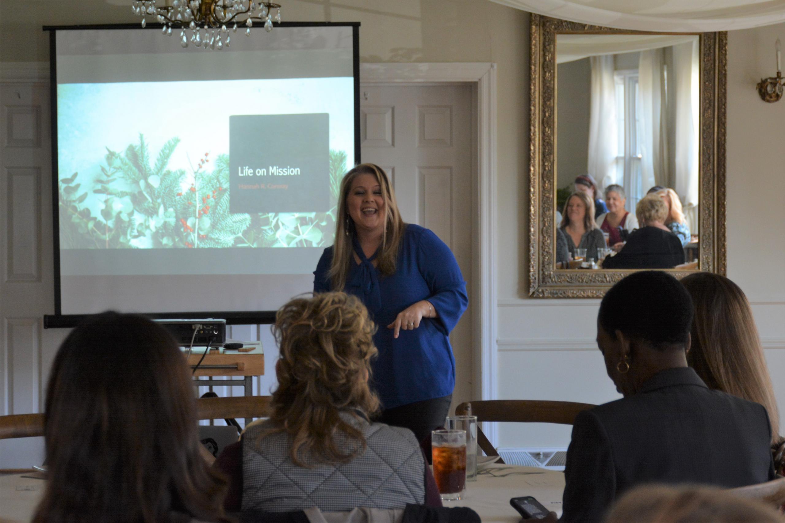 This most recent luncheon featured as a special guest Hannah R. Conway. A former teacher, Conway is now a published author, podcaster and speaker. Her work includes novels inspired by her own Christian faith and by her experiences as a military wife, mother and educator.
