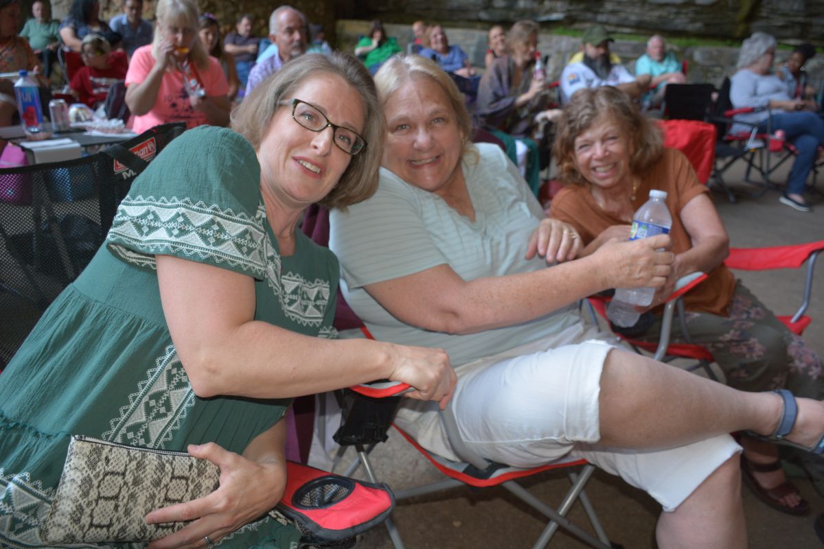 Carol Armistead, Leslie Lukasik, & Mary Darden at the Friends of Dunbar Cave, Cooling at the Cave concert featuring Red River Breeze on Jun. 3, 2023. (Lee Erwin)