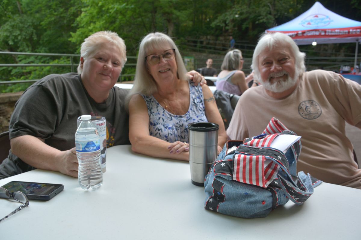Lori Williams, Bobbie Heinrich,& Kevin Heinrich at the Friends of Dunbar Cave, Cooling at the Cave concert featuring Red River Breeze on Jun. 3, 2023. (Lee Erwin)