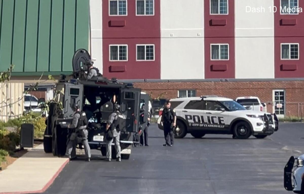 The incident began over four hours earlier, when Clarksville Police responded to an unwanted guest in one of the rooms. When officers approached, knocked on the door, and announced that police were present, Smith shot through the door with a firearm, Beaubien said. No one was injured. At 5:43 p.m., Smith surrendered to police.