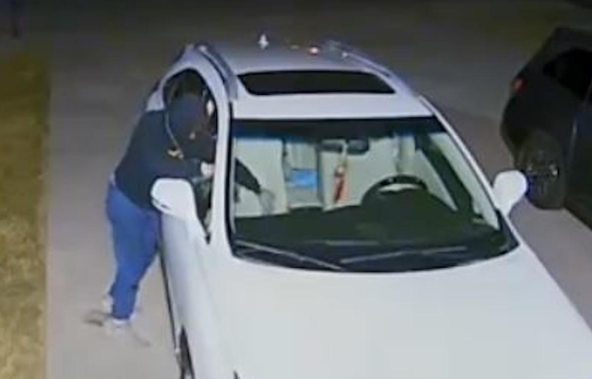 Video shows the suspect checking out cars earlier and returning to break the window to steal the purse.